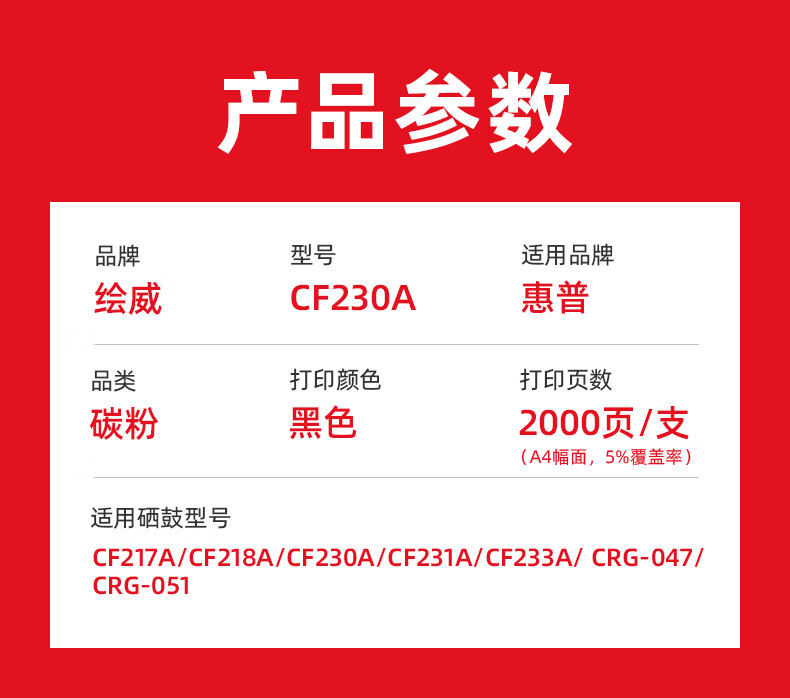 绘威臻享版 CF230A碳粉 黑色 适用惠普HP M203d M203dw M203dn M227d M227fdw M227sdn M227fdn 1支装