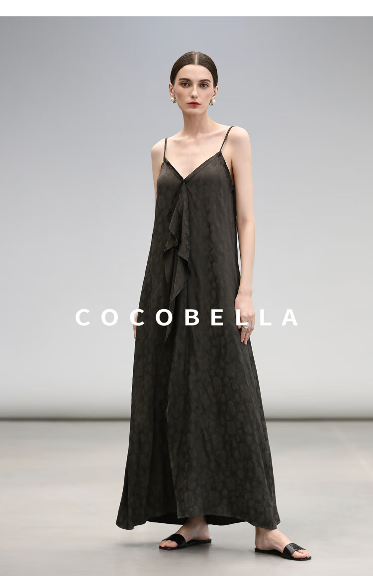 COCOBELLA[100%人丝]新国风提花吊带裙女新中式连衣裙FR3055