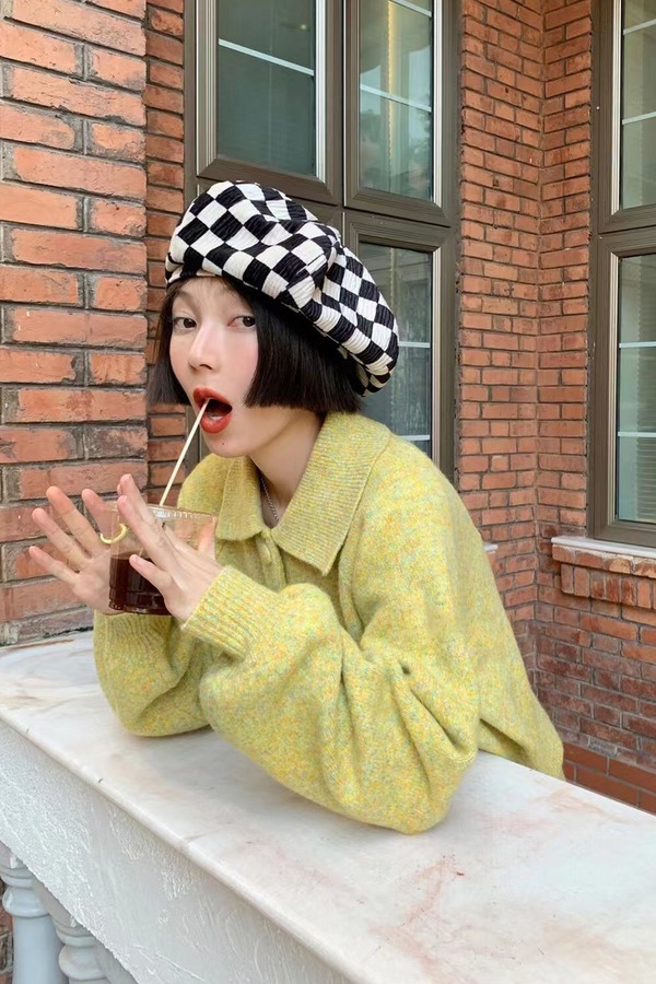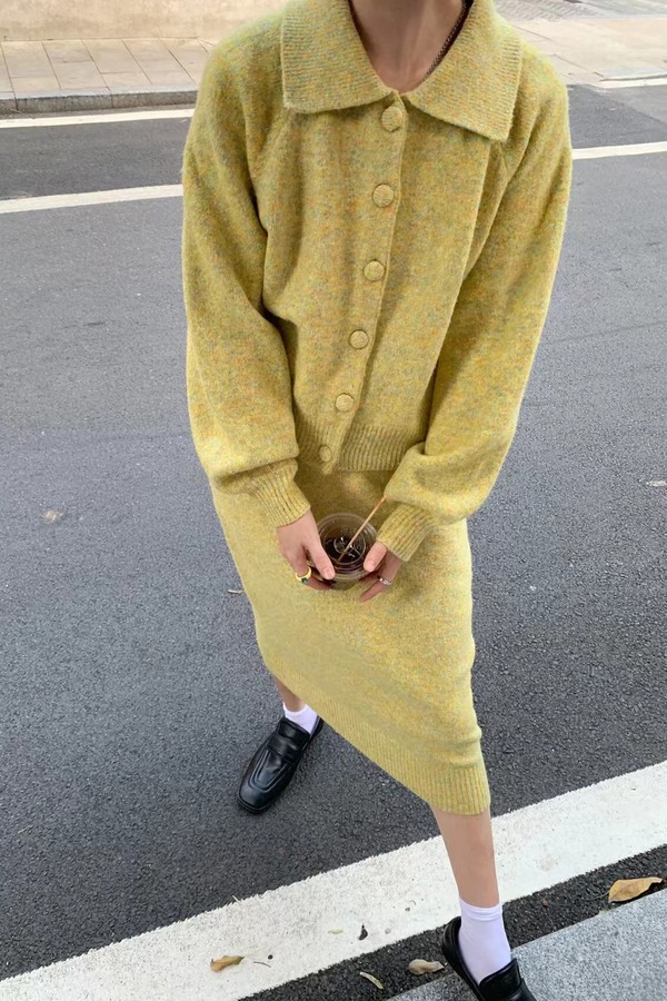 ANSUABEL 柠檬黄针织开衫半裙套装 14485
