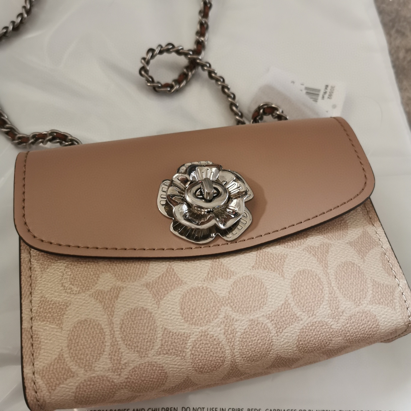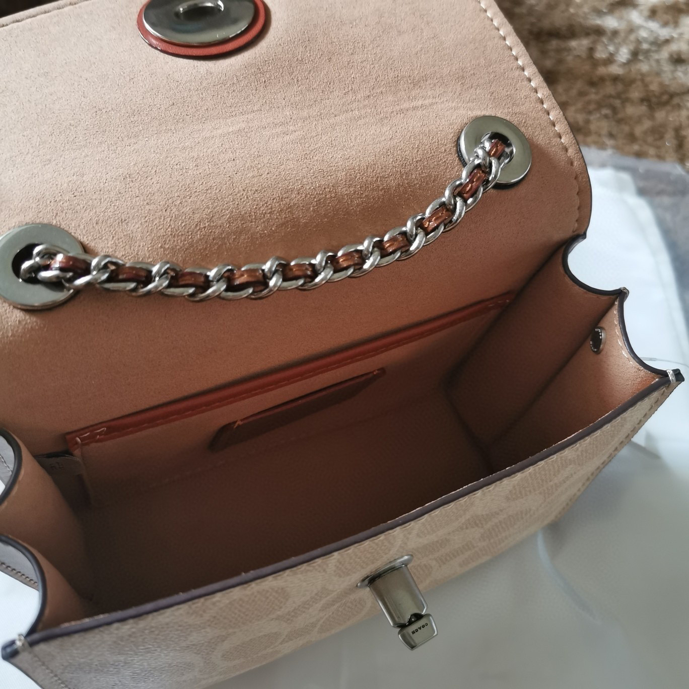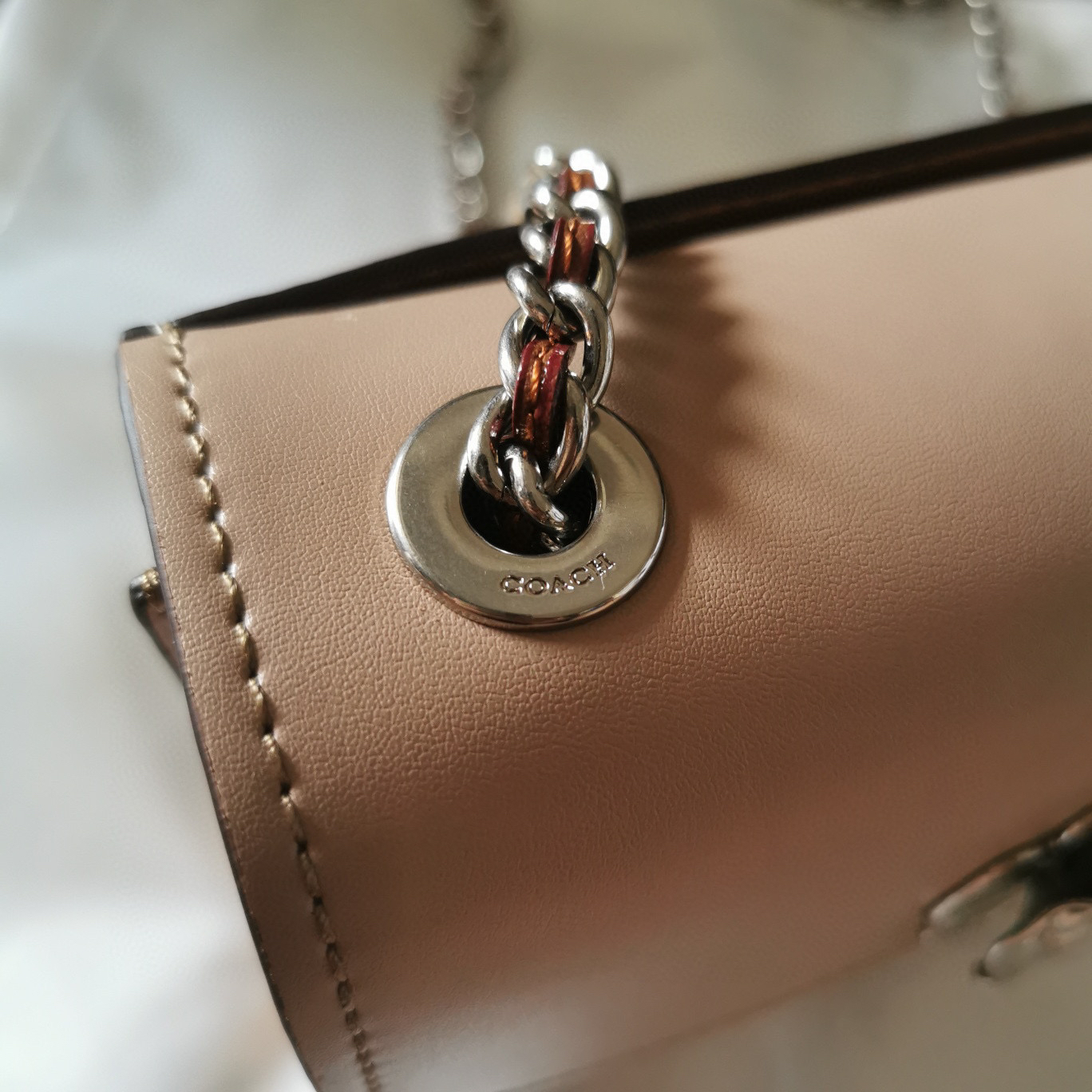 蔻驰的山茶花列系一直么这火😍肩带是皮链拼条的加更洋气时髦 手可提以变长成肩带 外部开口放袋 平喜时欢斜挎 单肩背的候时把肩带上收去就以可了~