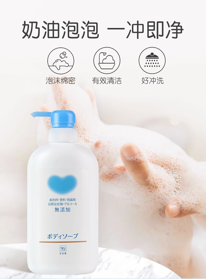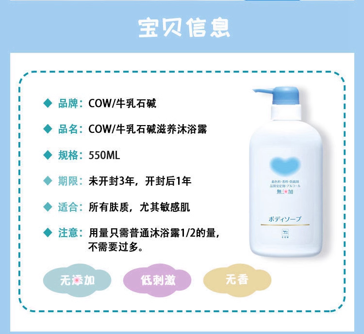【品名】日本COW牛乳石碱成人儿童沐浴露无香550ml 老款