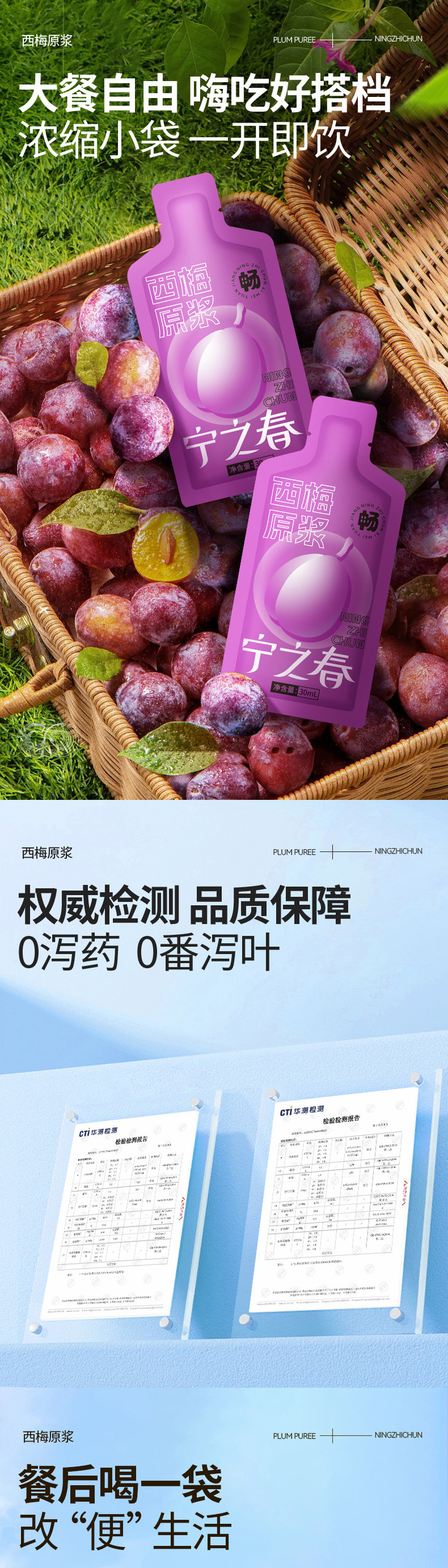 热卖!大餐救星!“支持免费试喝6袋”【超值90袋】宁之春西梅原浆 鲜果鲜榨 温和无依赖 30ml/袋*90袋