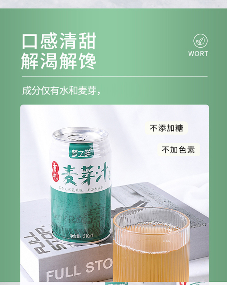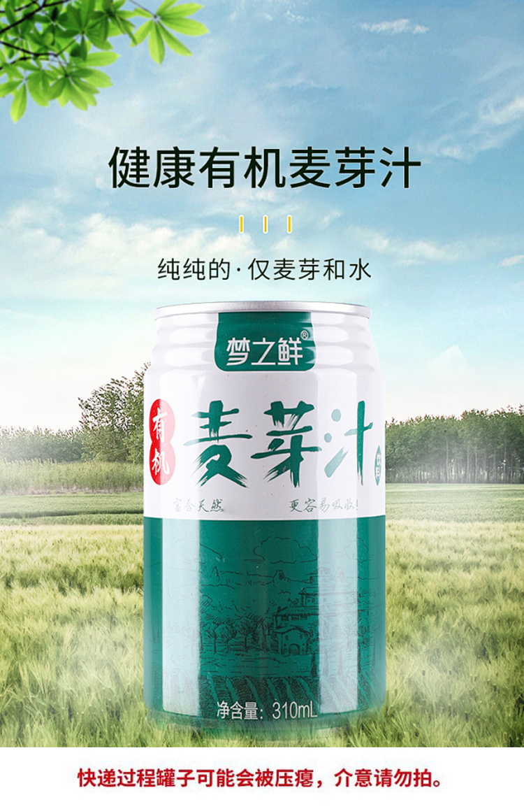 梦之鲜有机麦芽汁有机玉米汁 健康发酵麦草饮料 310ml*12瓶/箱 【京东快递送货上门】