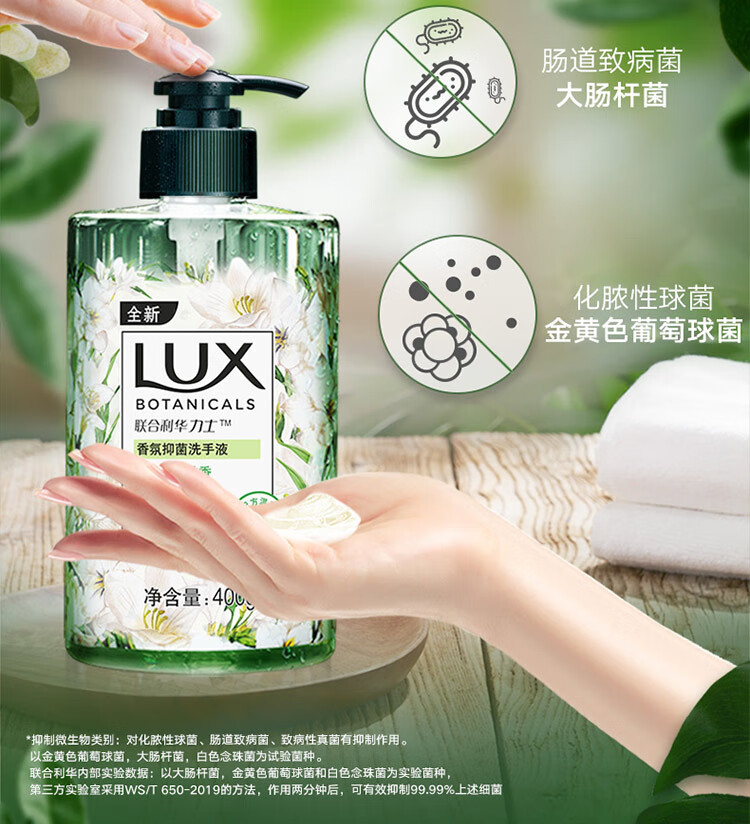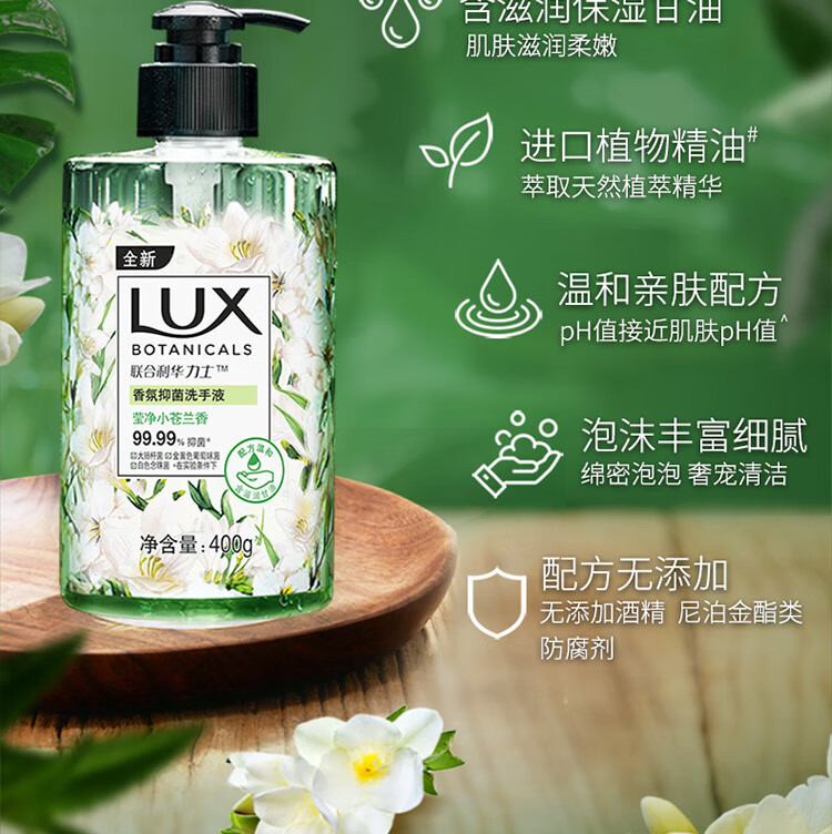 力士(LUX)香氛抑菌洗手液 莹净小苍兰香400G 1瓶 洁净保湿 沙龙香氛 100011190745