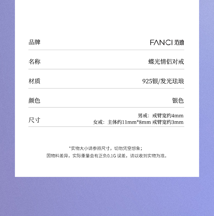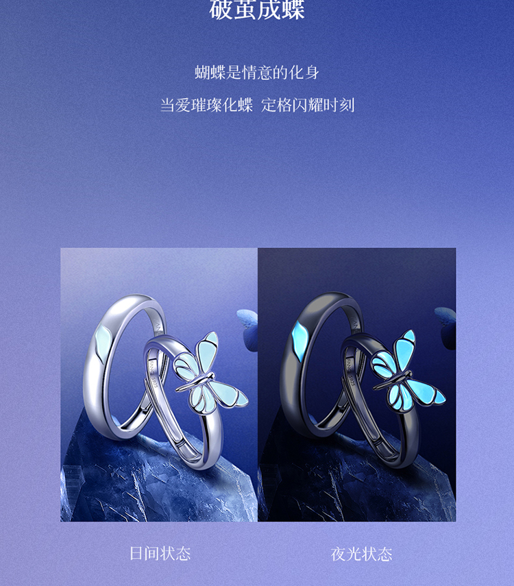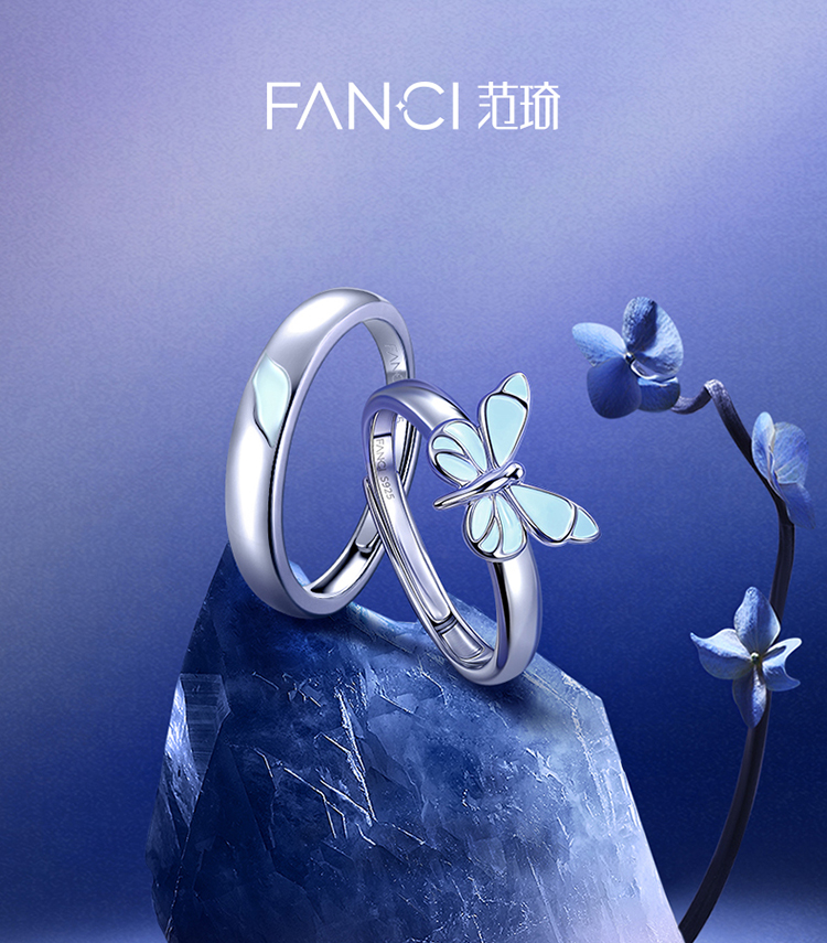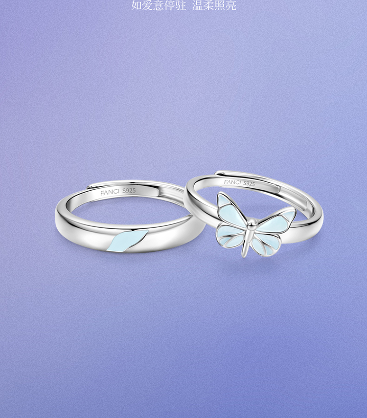 Fanci范琦蝶光情侣对戒S925银戒指ins风蝴蝶小众轻奢送女友礼物