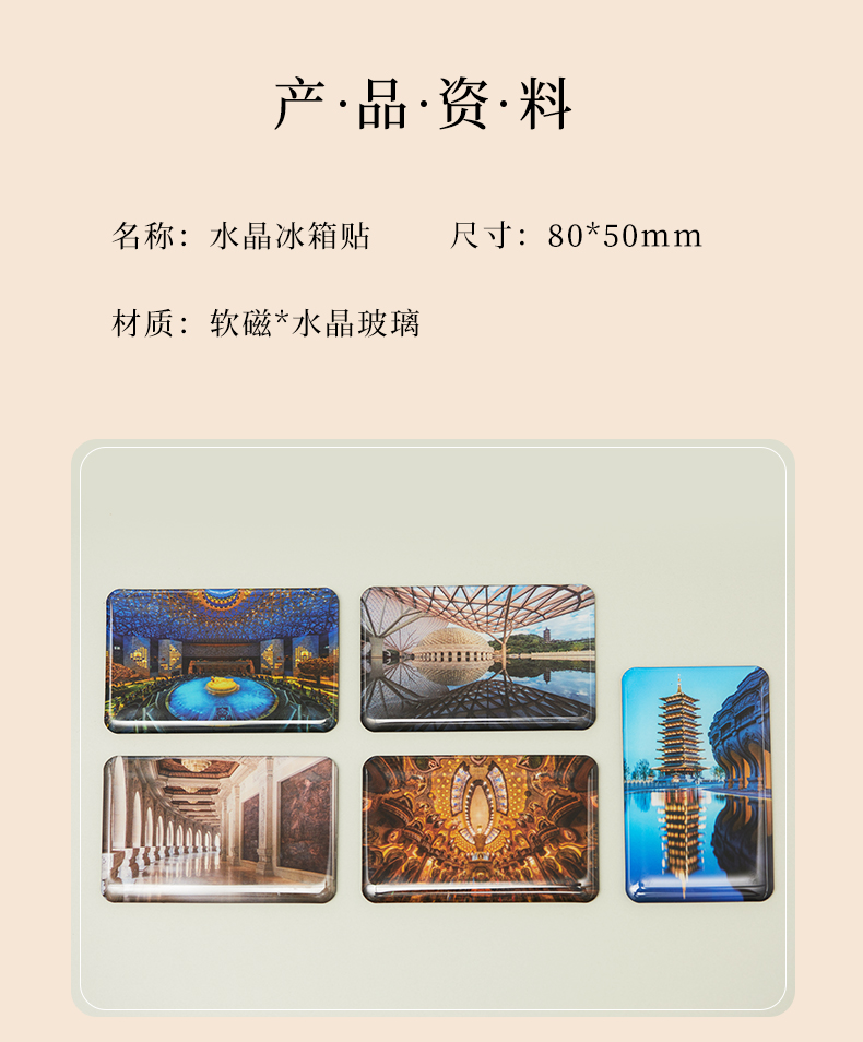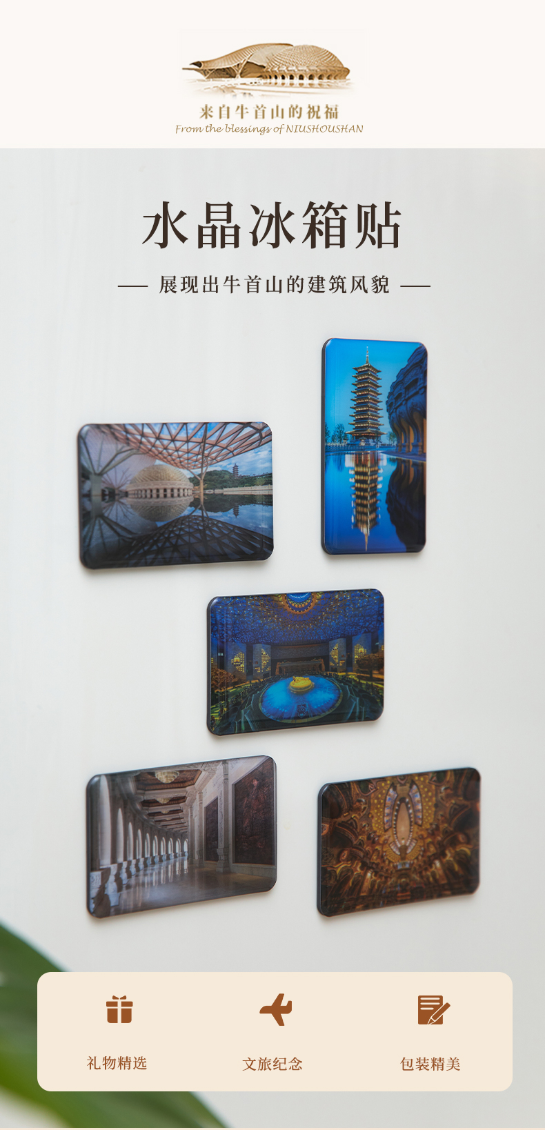 牛首山文创建筑风貌水晶冰箱贴国潮创意男女礼物装饰品冰箱磁贴饰