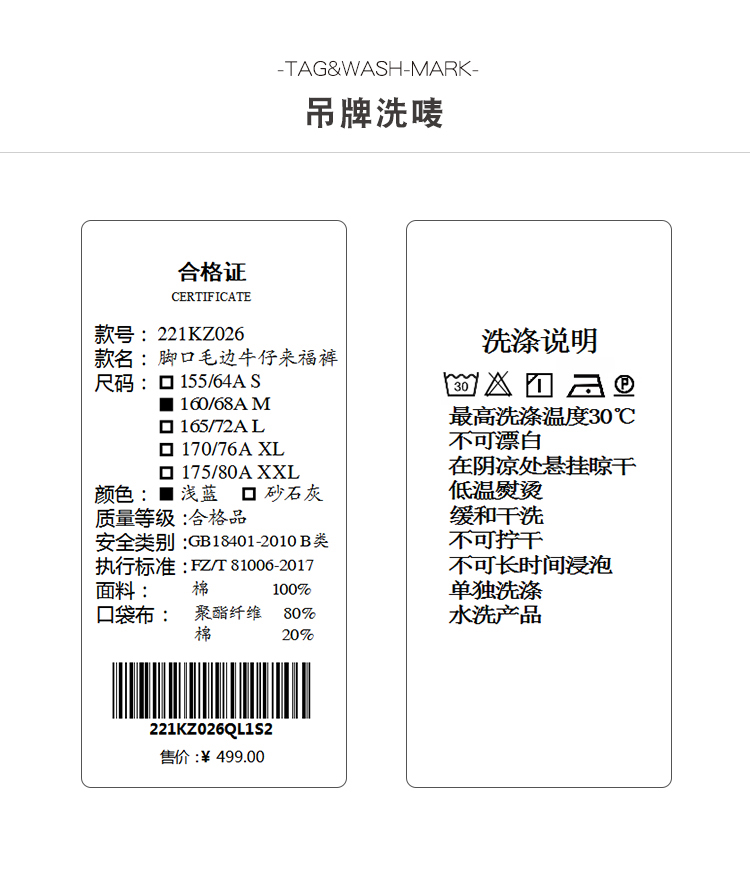 脚口毛边牛仔来福裤221KZ026