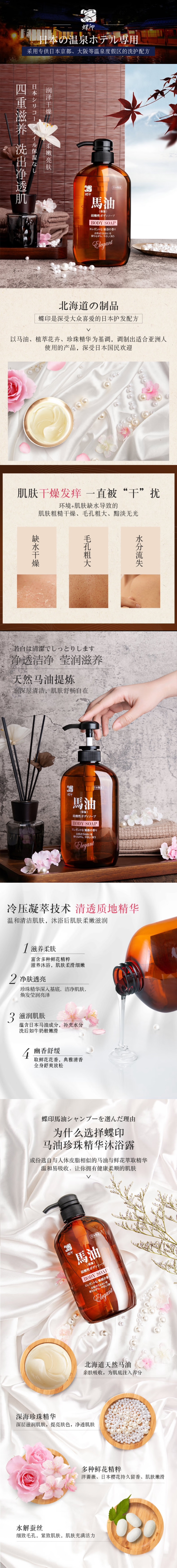 蝶印 日本原装进口 北海道马油 珍珠精华沐浴露 600ml