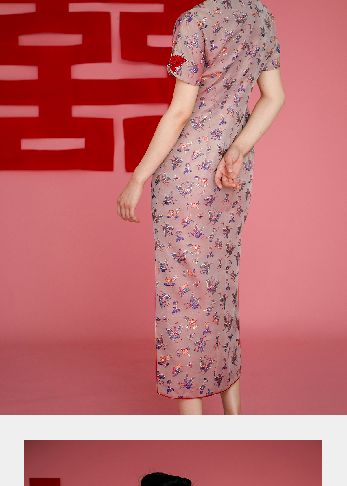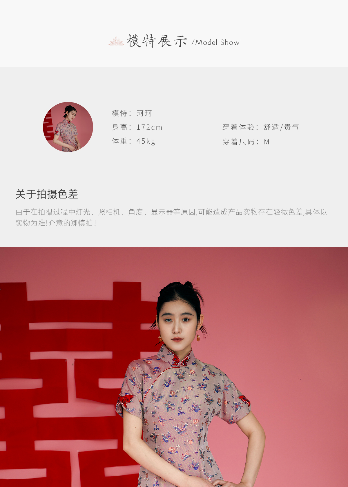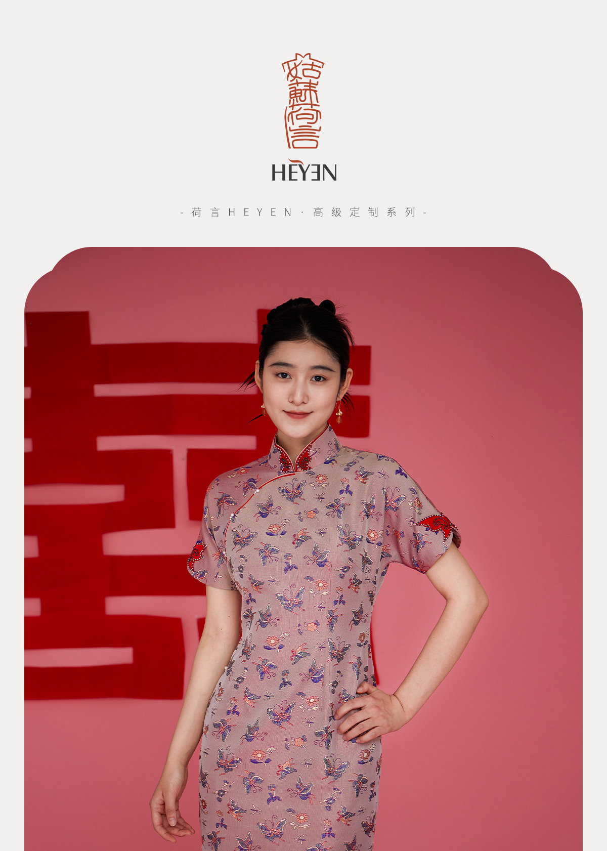 荷言HEYEN 听岚 非遗并蒂喜字纹双面异色罗真丝新娘旗袍喜服婚婚庆系列高级定制