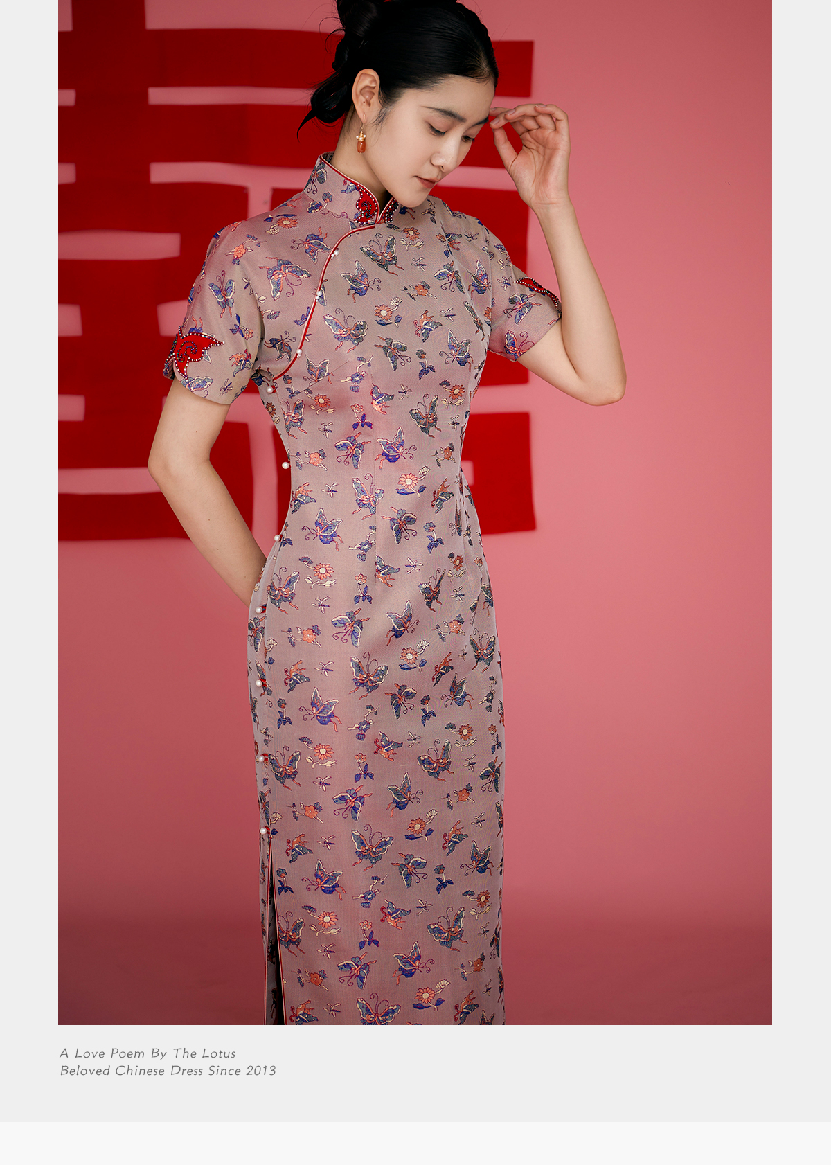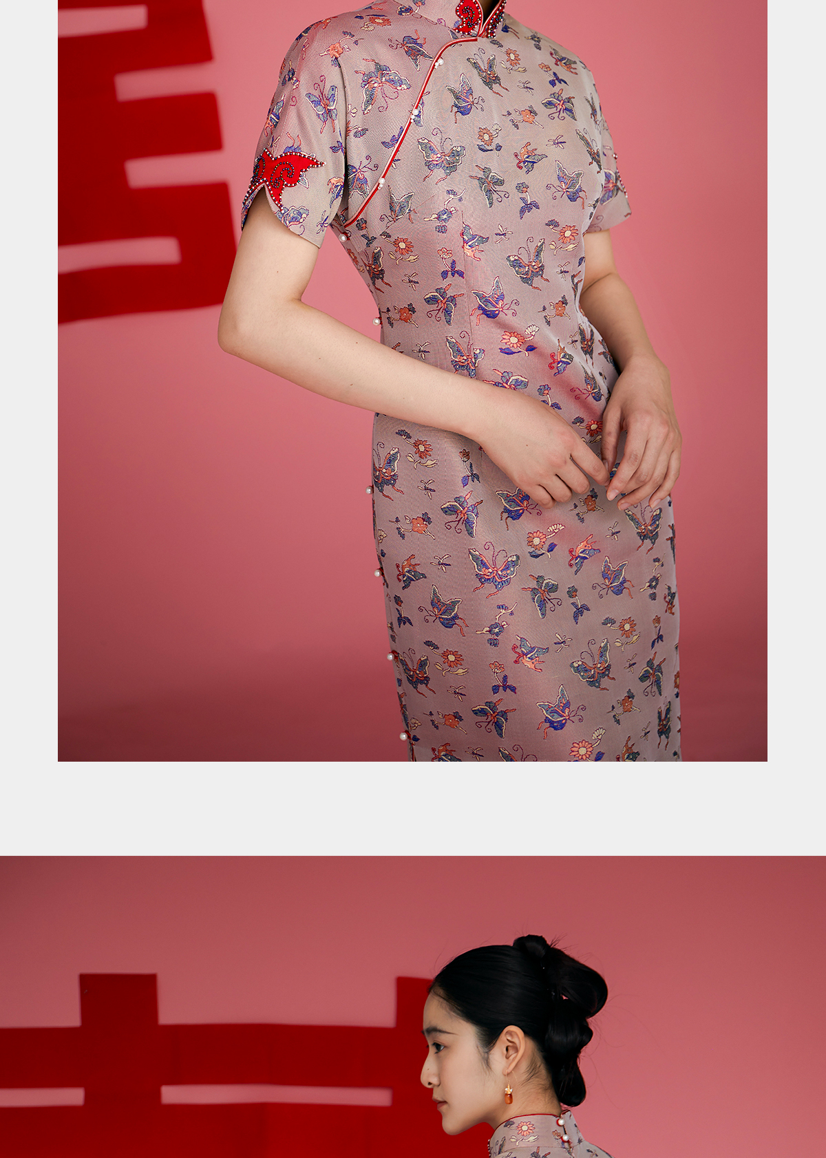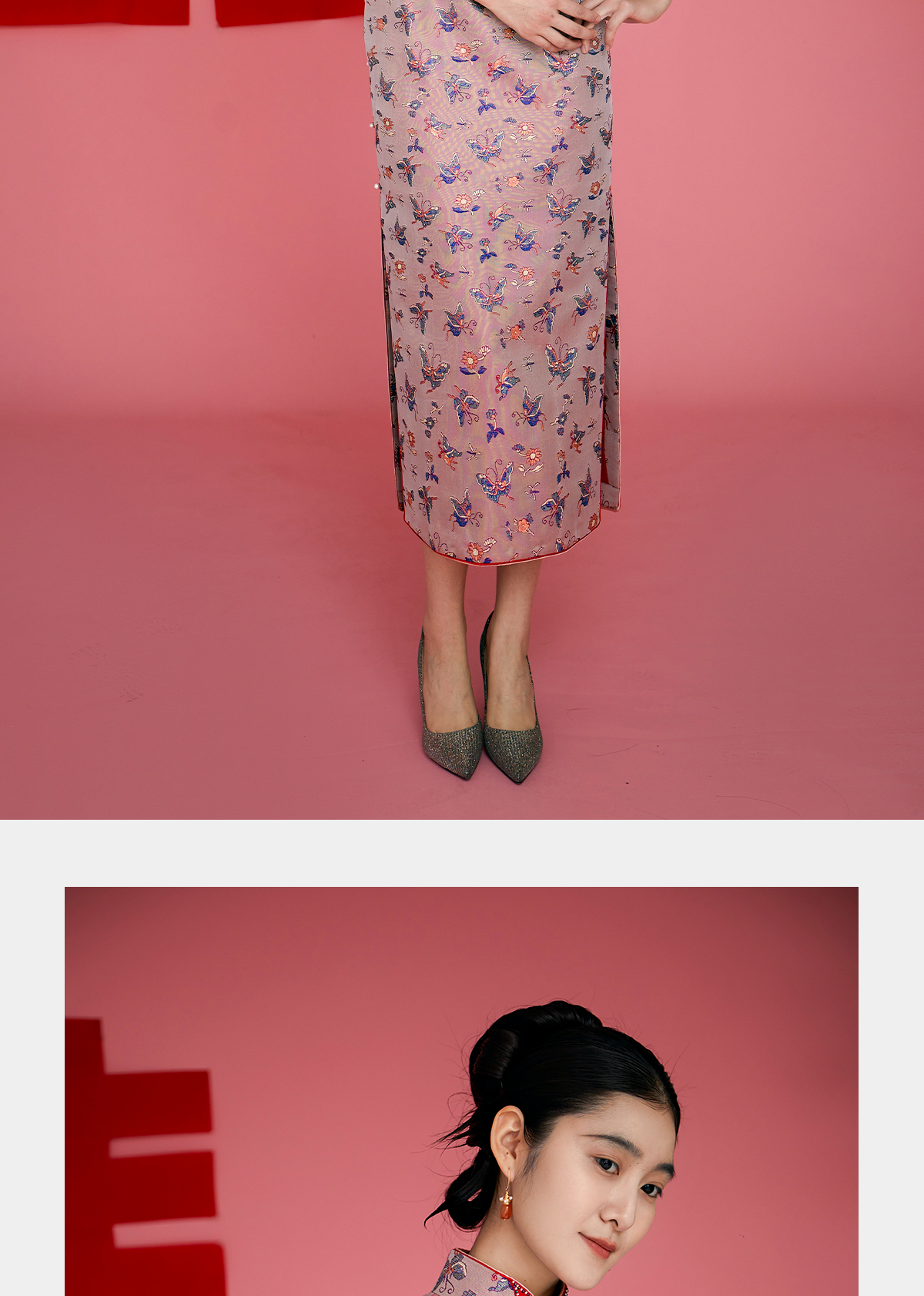 荷言HEYEN 听岚 非遗并蒂喜字纹双面异色罗真丝新娘旗袍喜服婚婚庆系列高级定制