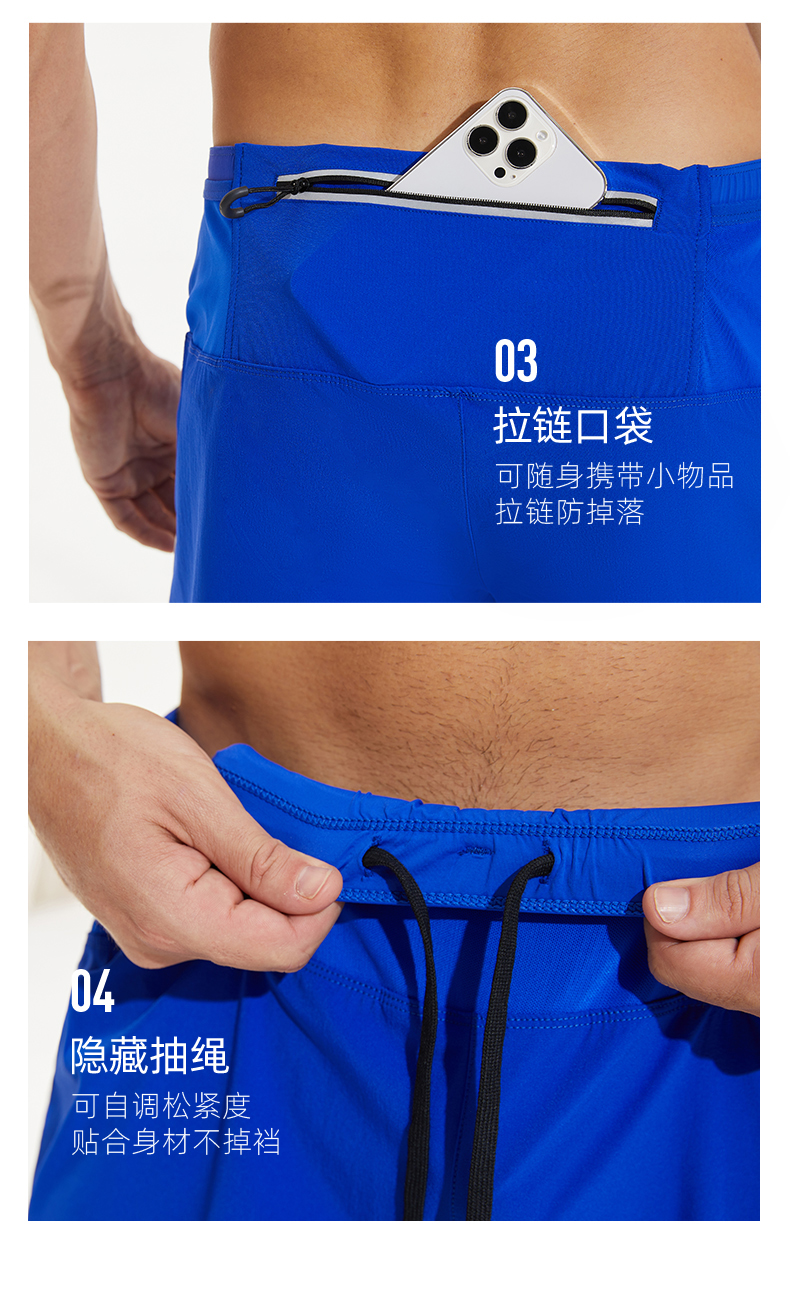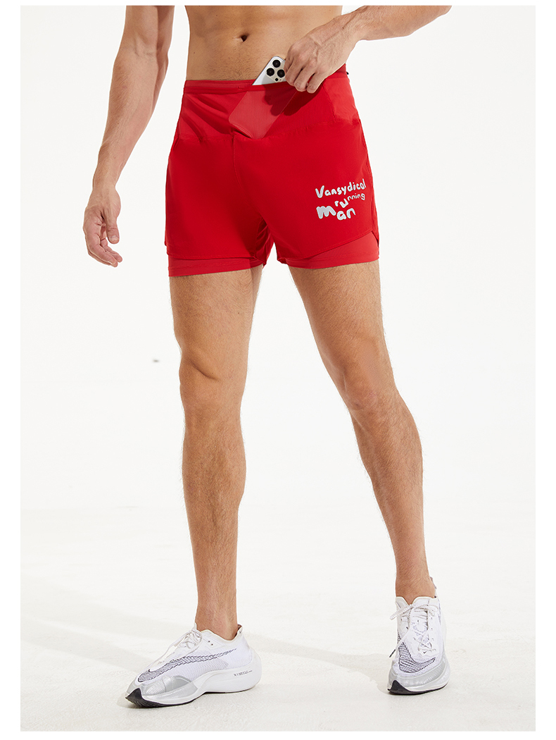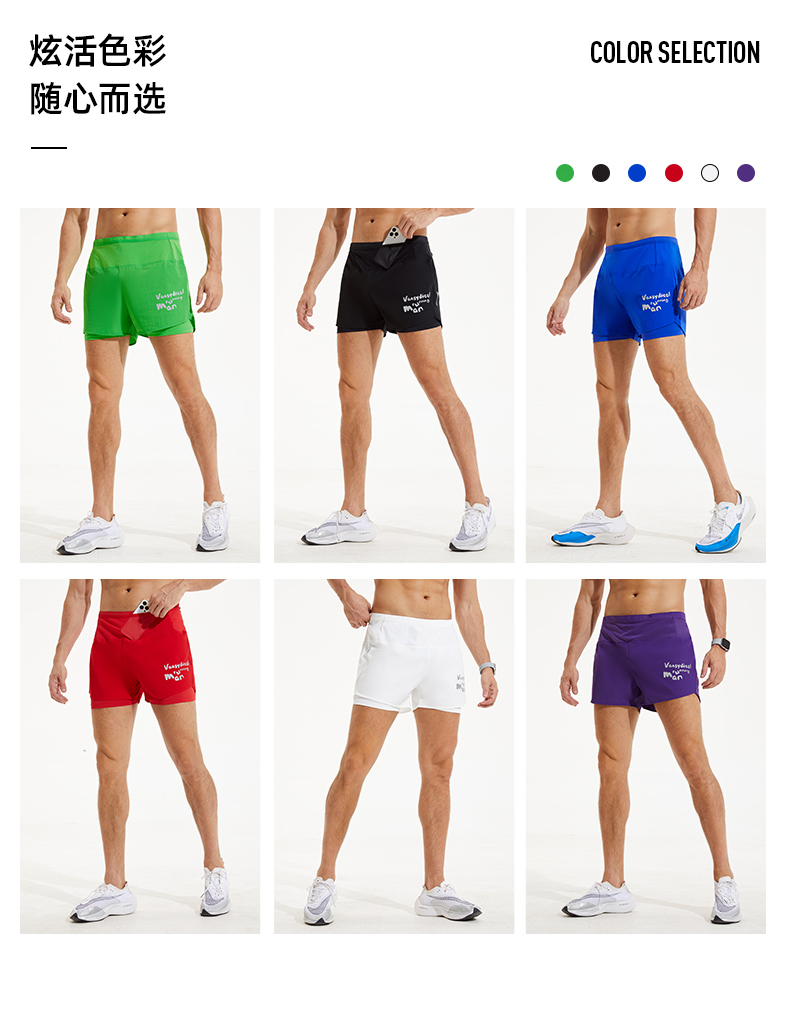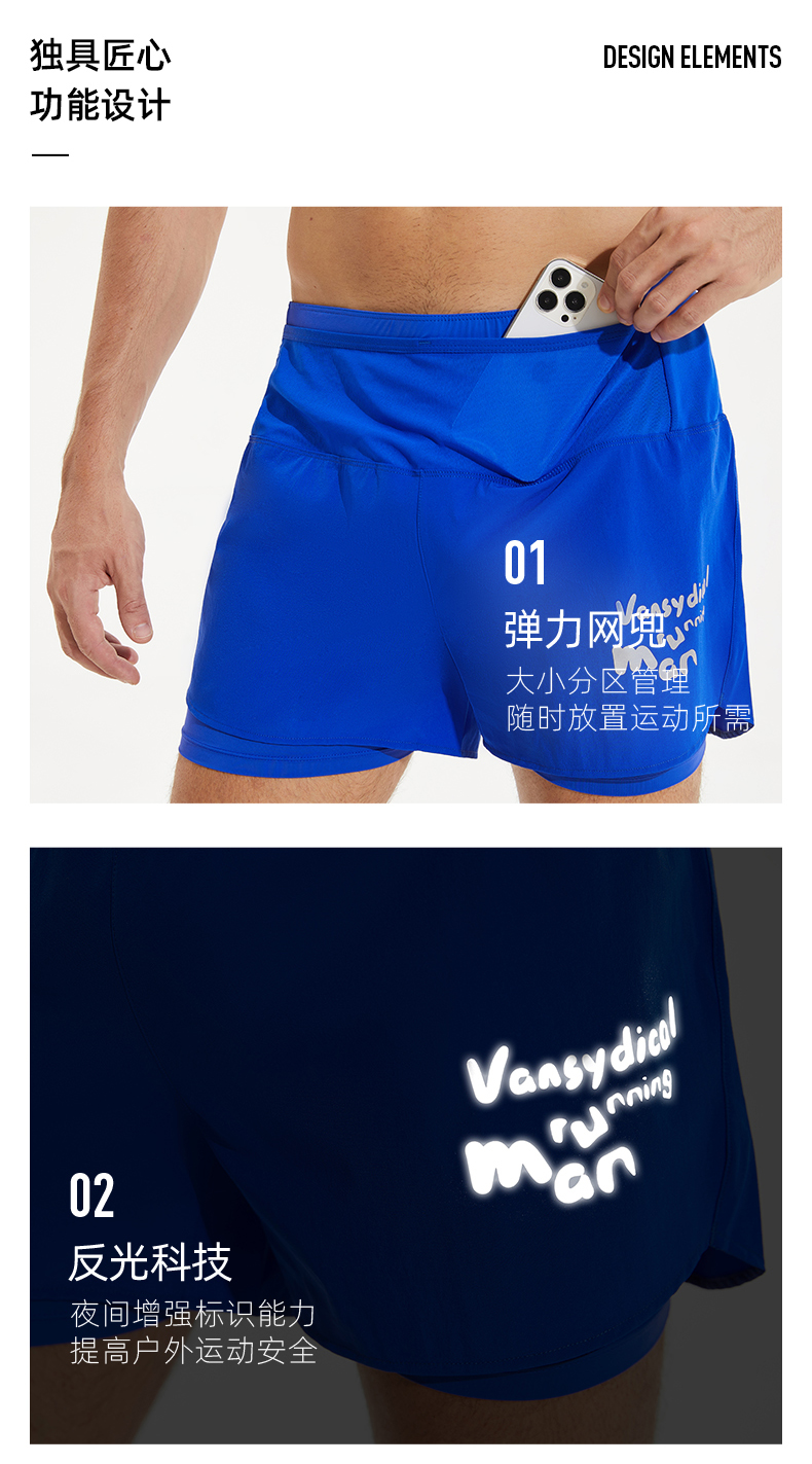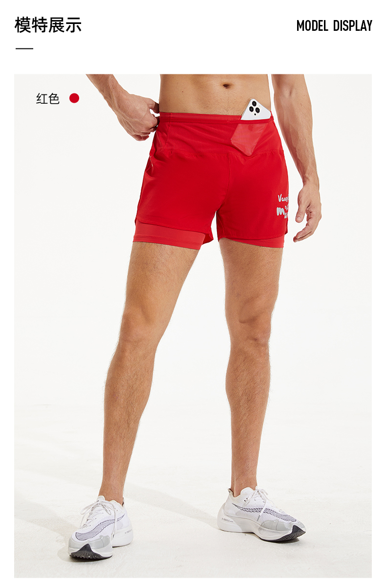 科里芙 男子夏季户外运动健身跑步裤弹力三分假两件运动短裤速干运动裤