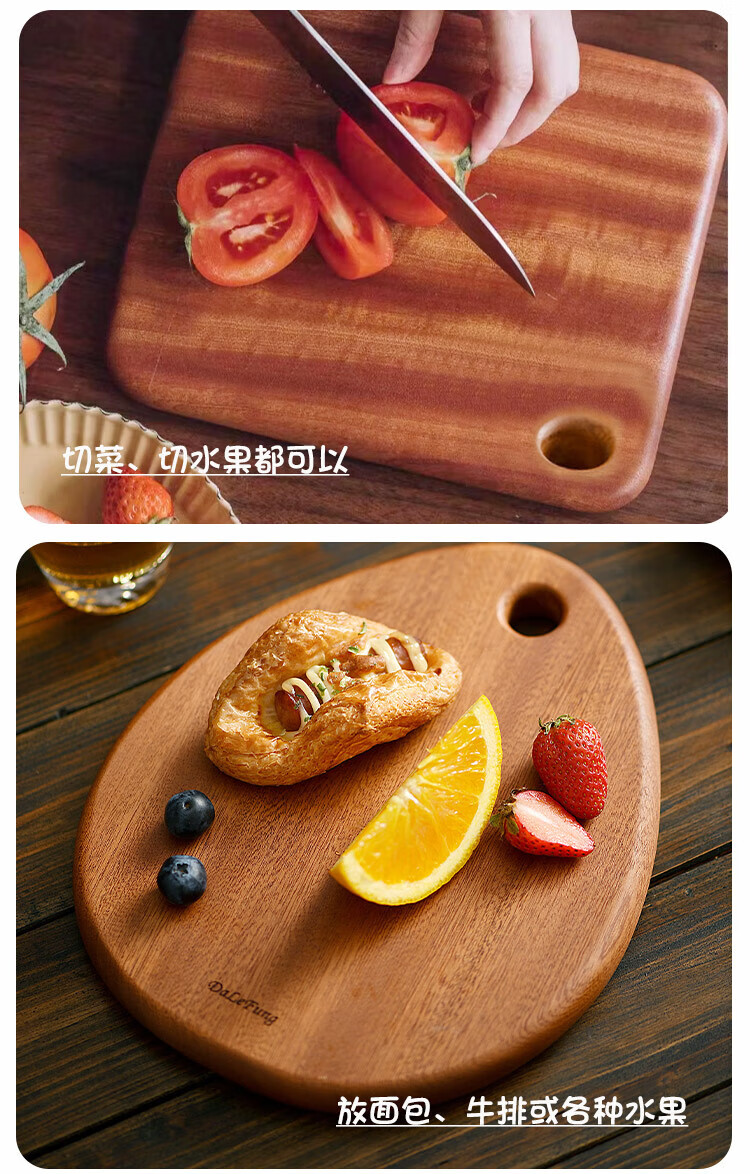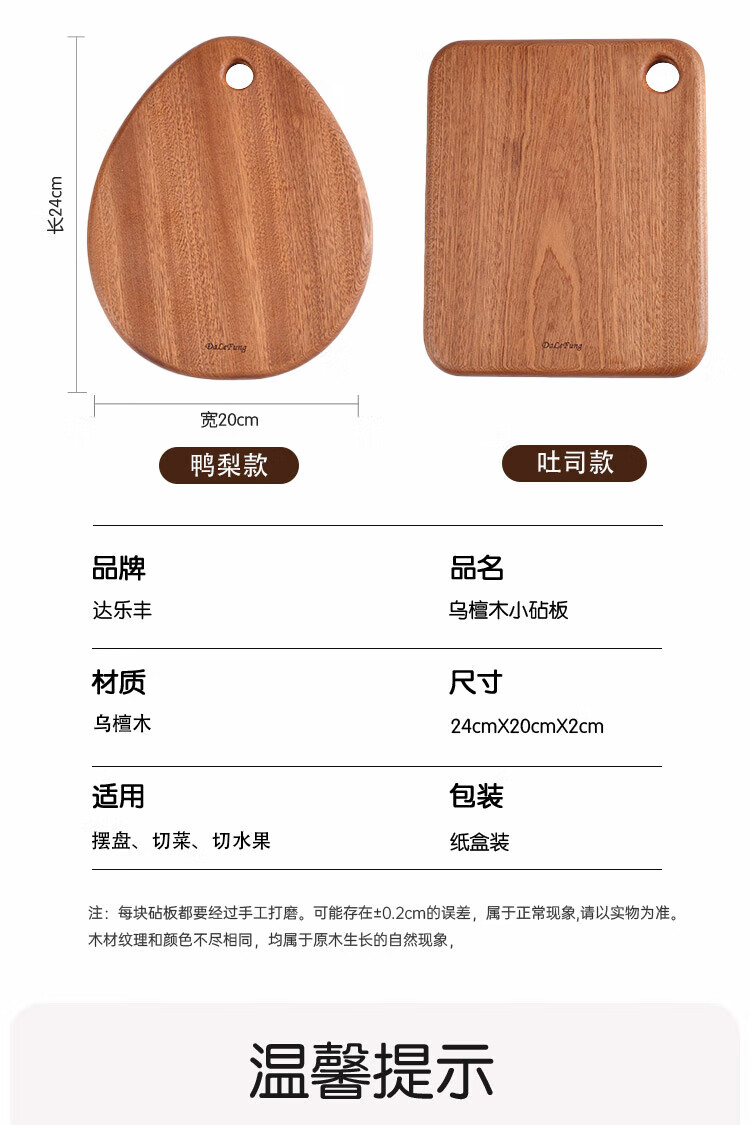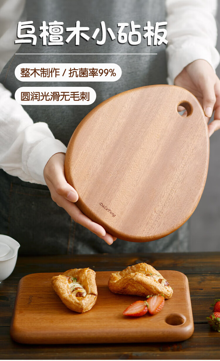 【特价6折清货,最后2块无货退款】达乐丰实木抗菌乌檀整木多功能板水滴形菜板水果板砧板24*20*2cm