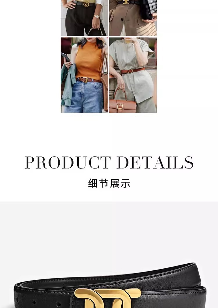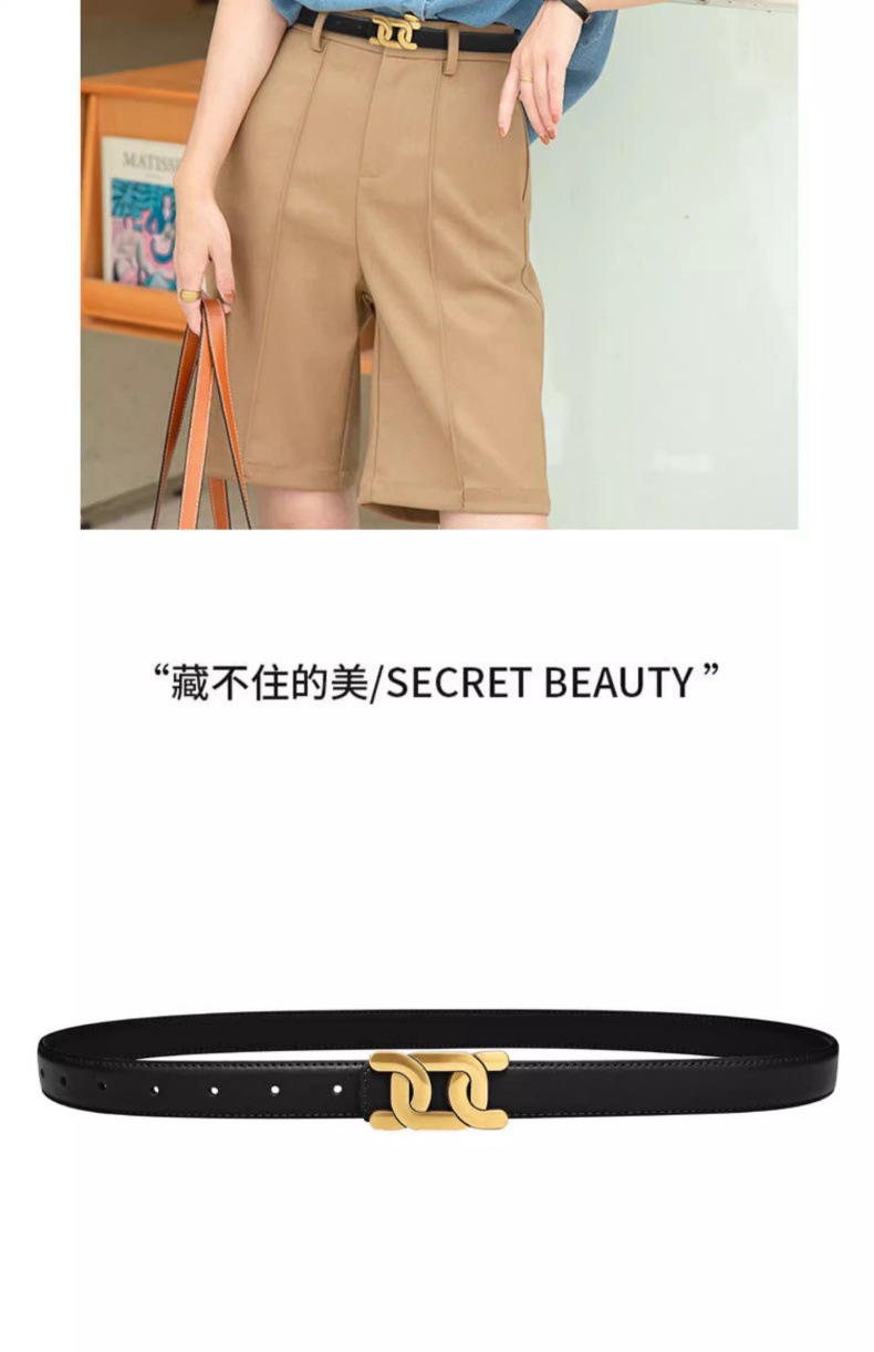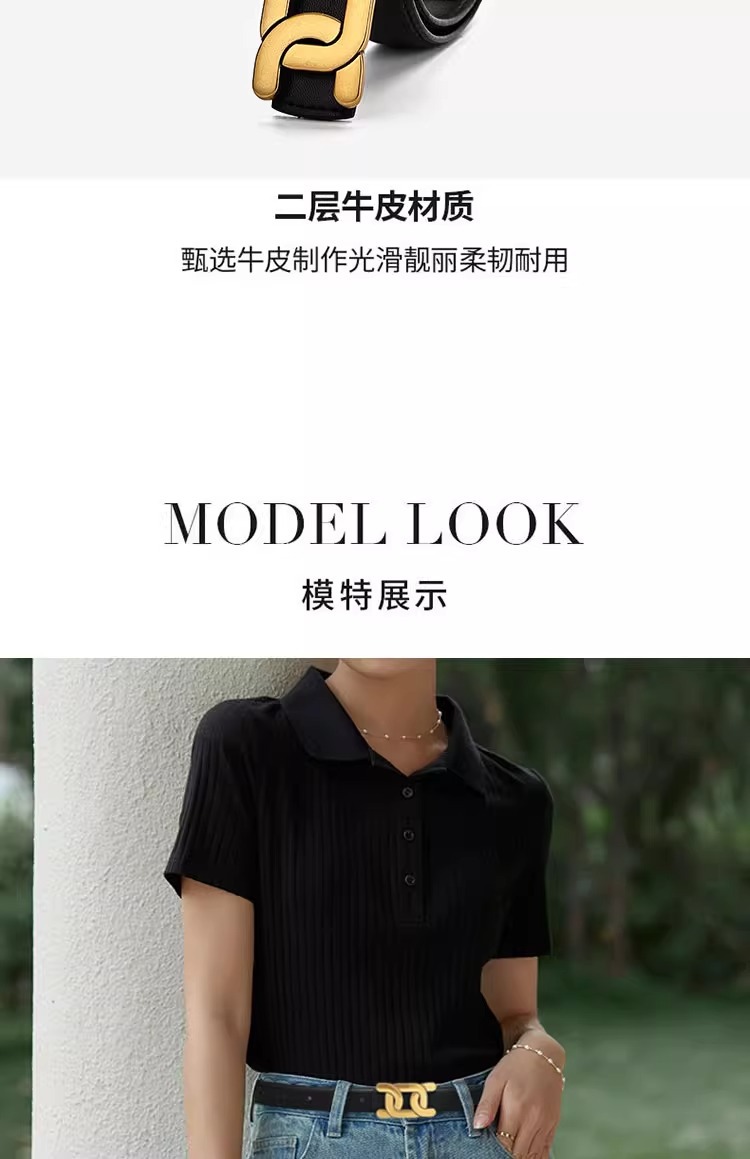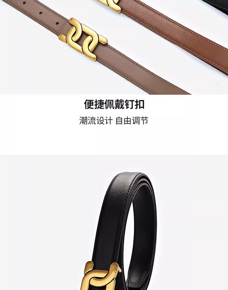 「真皮材质!好搭新款」2024新款真皮腰带女士皮带 收腰装饰配西装黑色复古牛仔裤带潮配饰