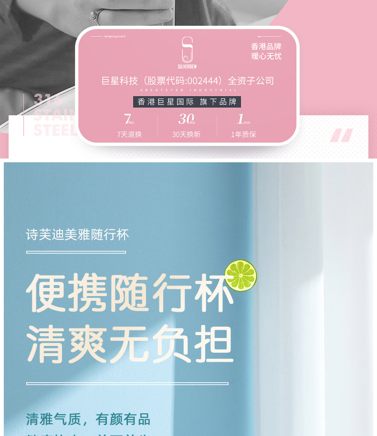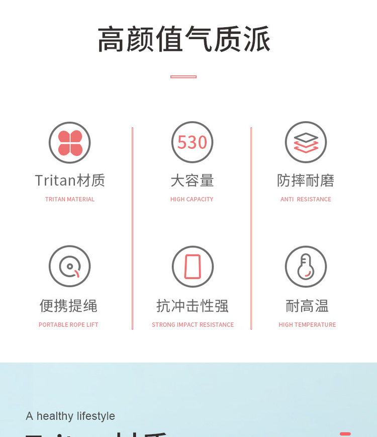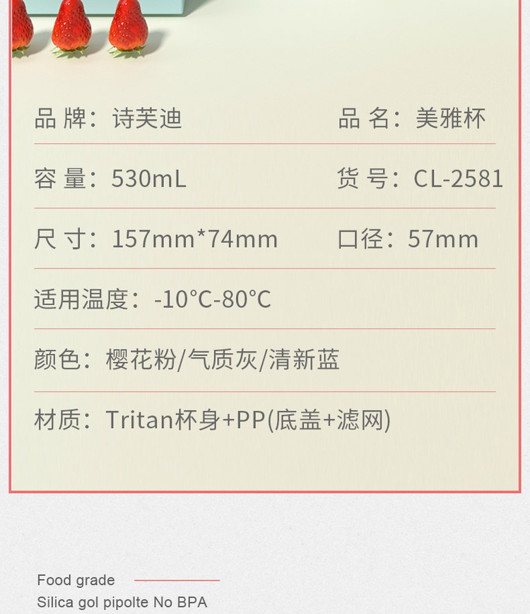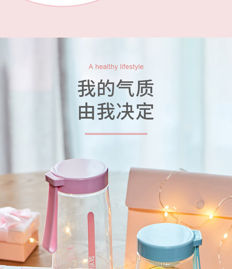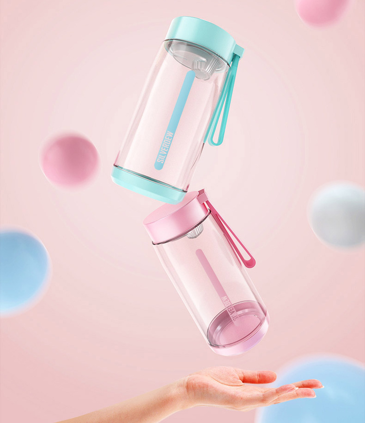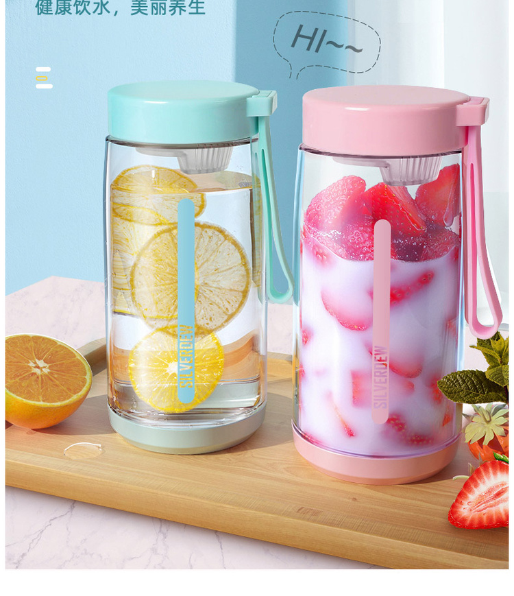 诗芙迪(SILVERDEW)塑料水杯女tritan夏季便携可爱家用防摔杯子大容量530ml