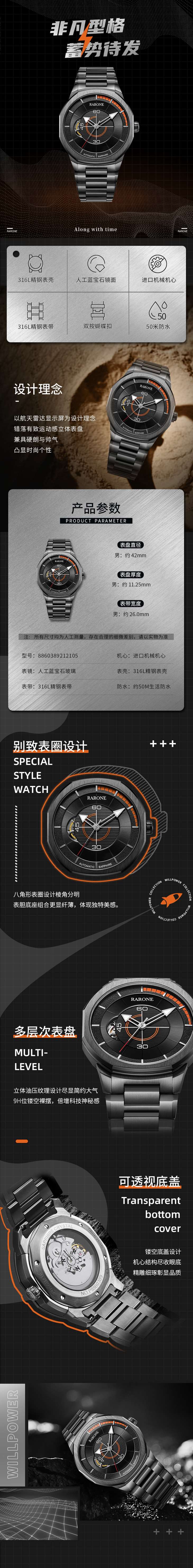 RARONE雷诺表漫游者系列男士机械腕表886038