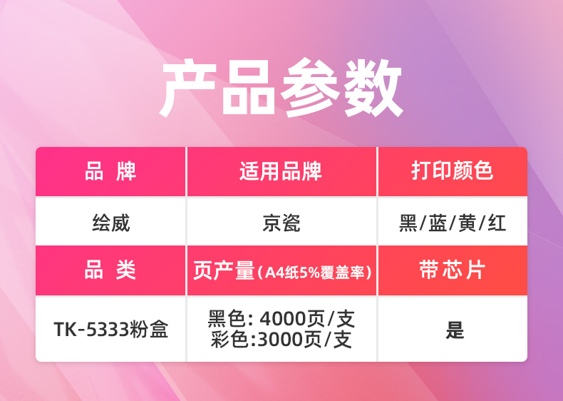 绘威TK-5333粉盒、TK-5433粉盒、TK-5463粉盒 单色&四色套装