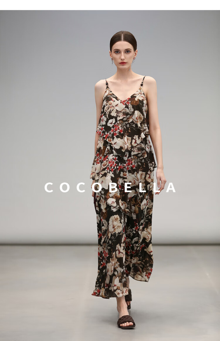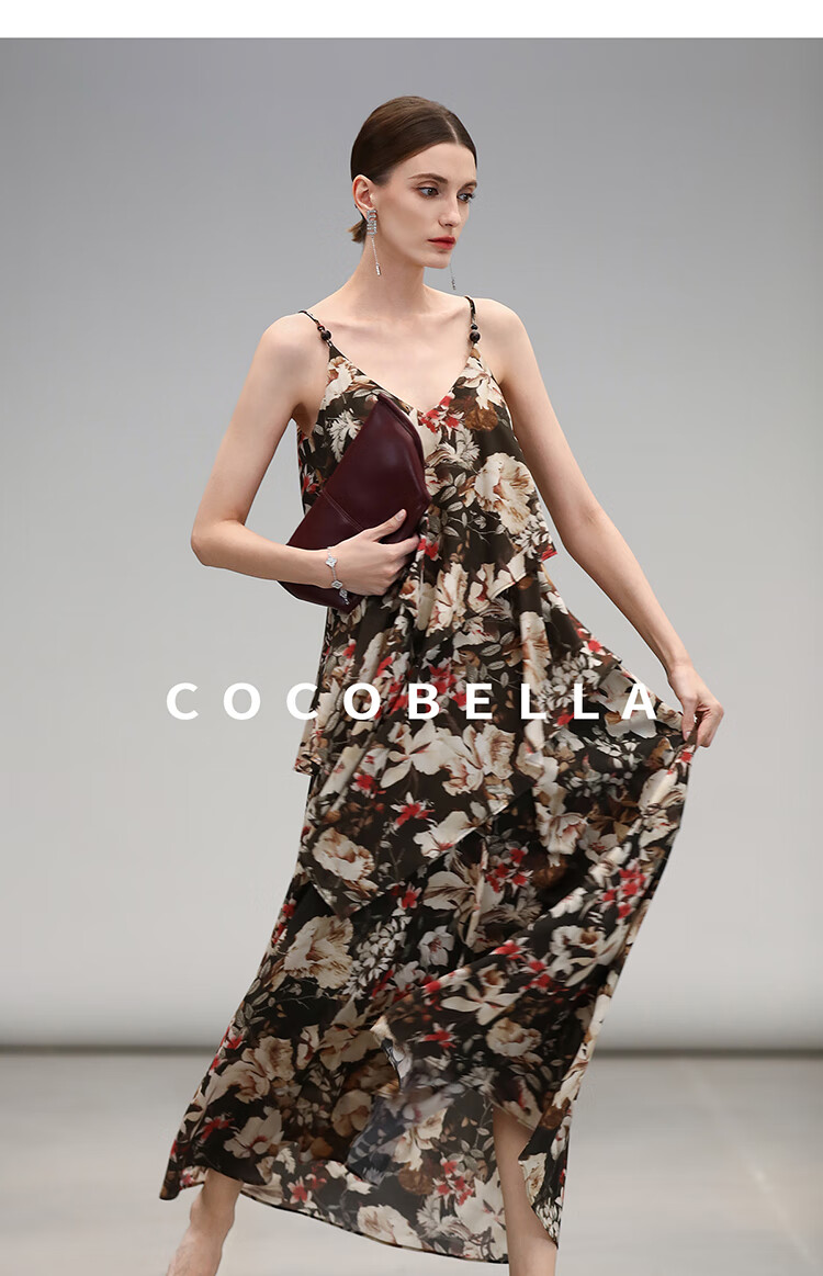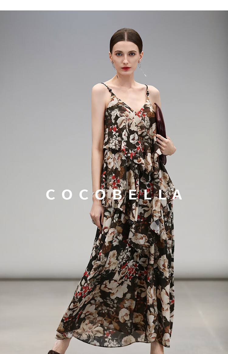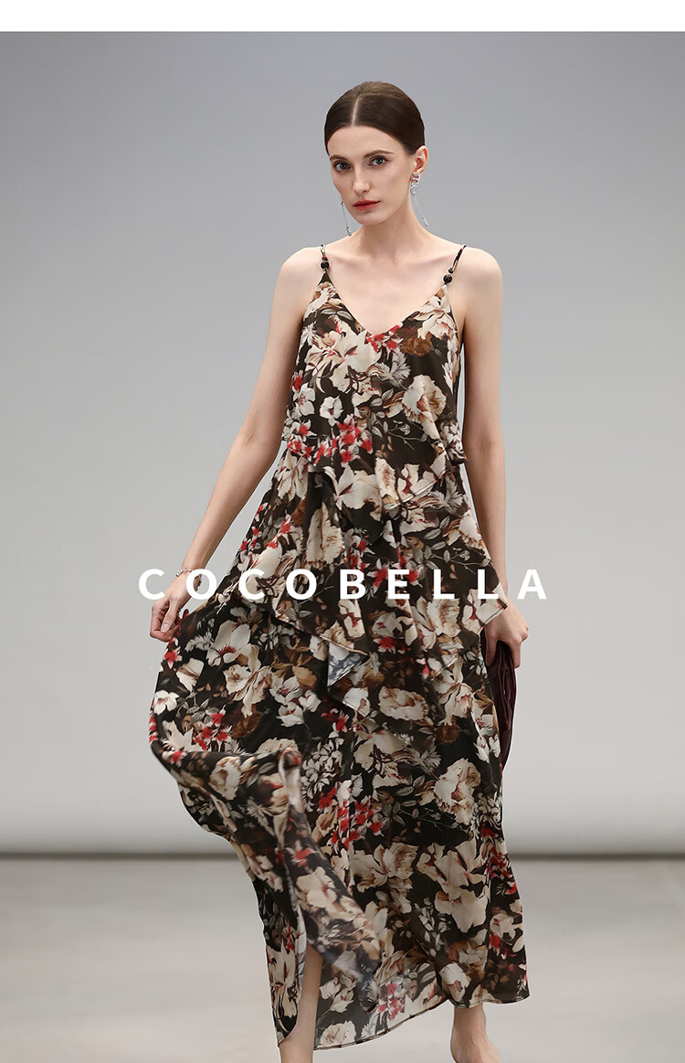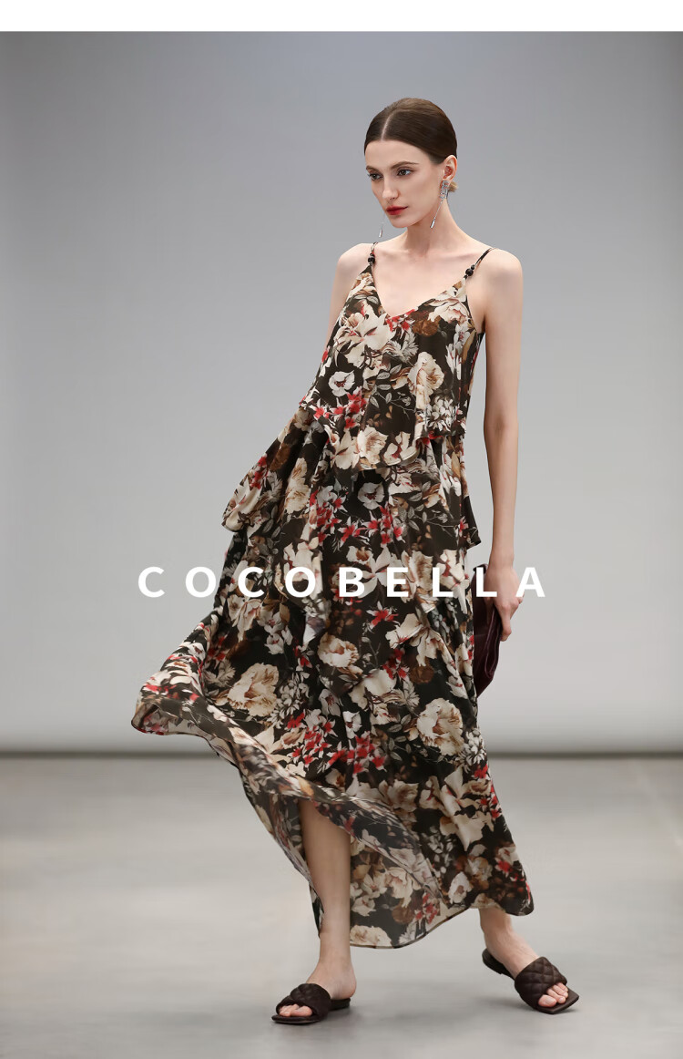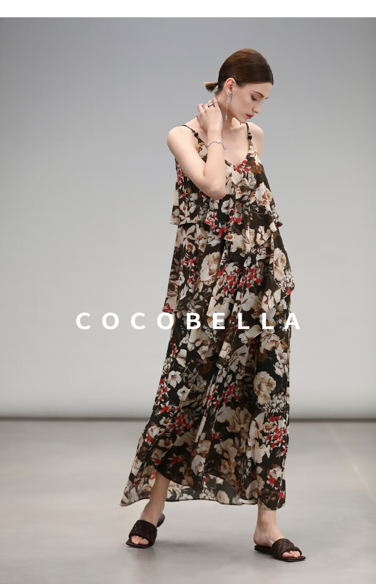 【限时秒杀】COCOBELLA优雅层叠荷叶摆吊带裙早秋繁花度假风连衣裙FR7063