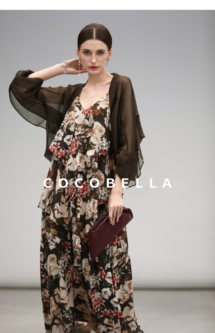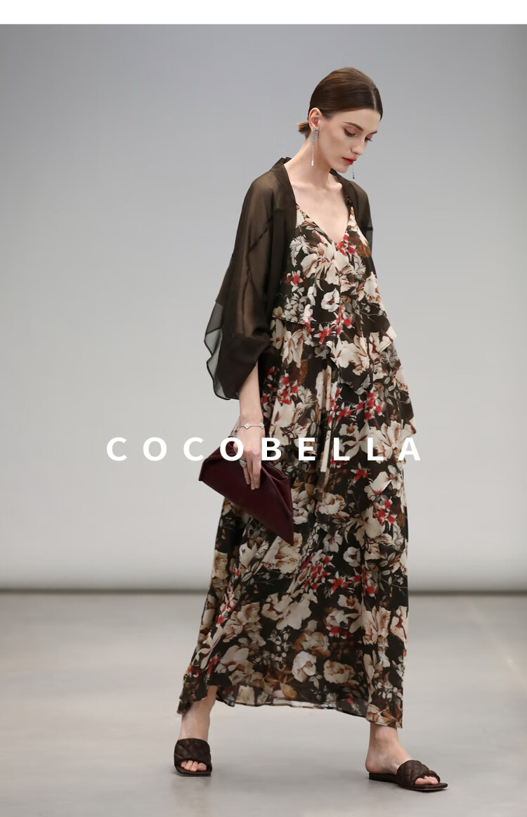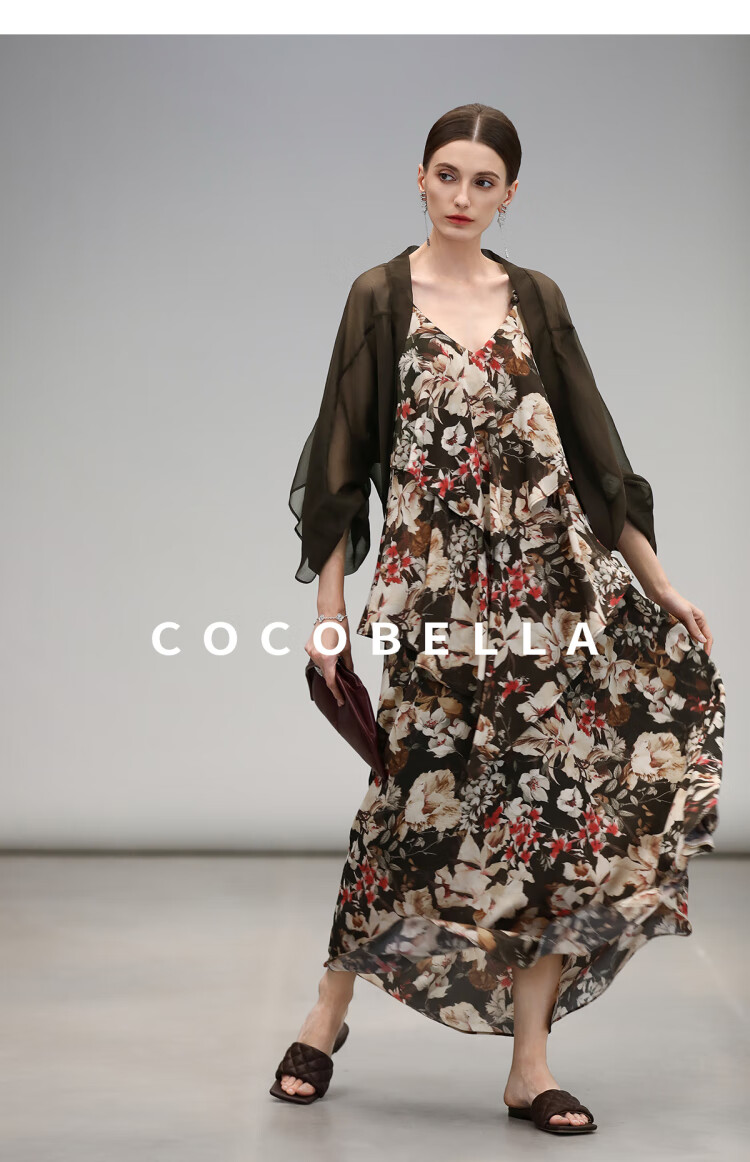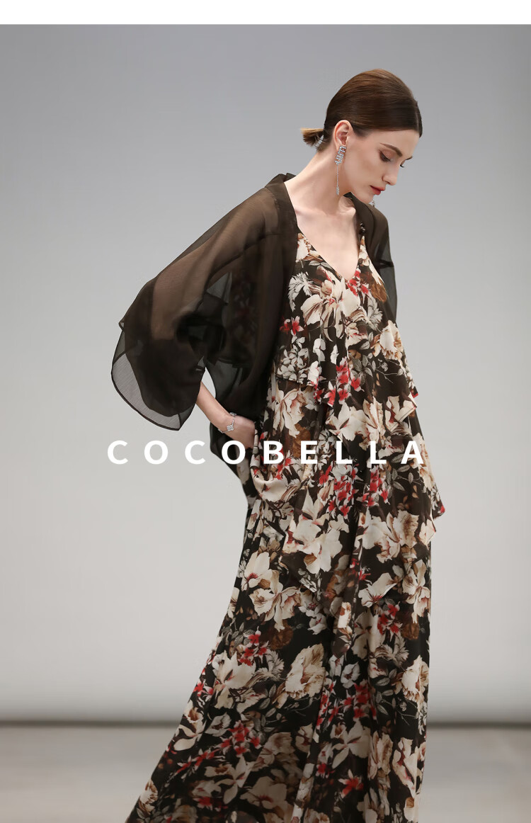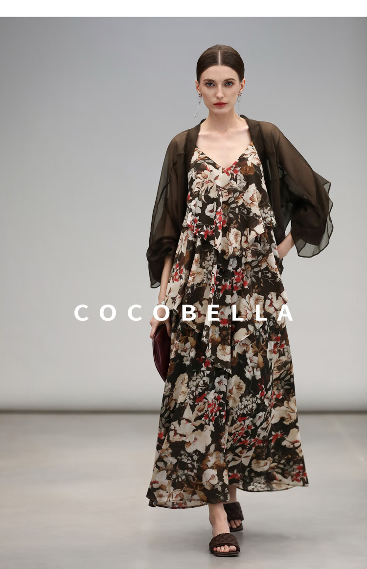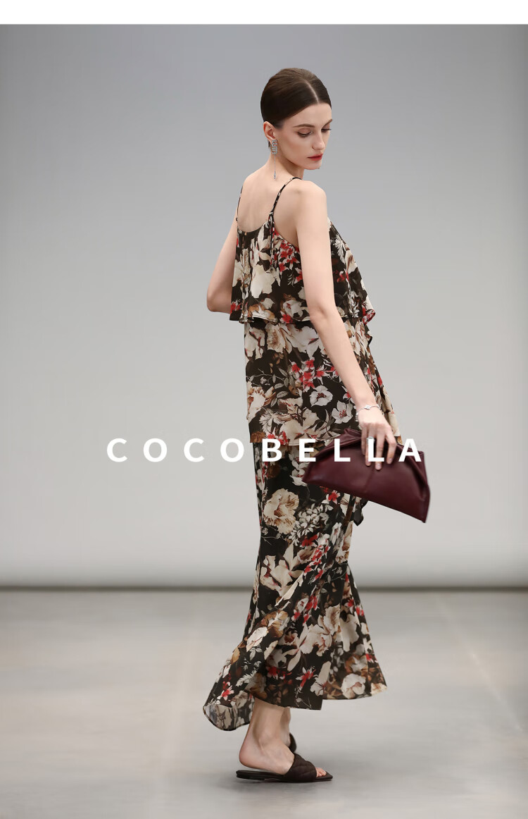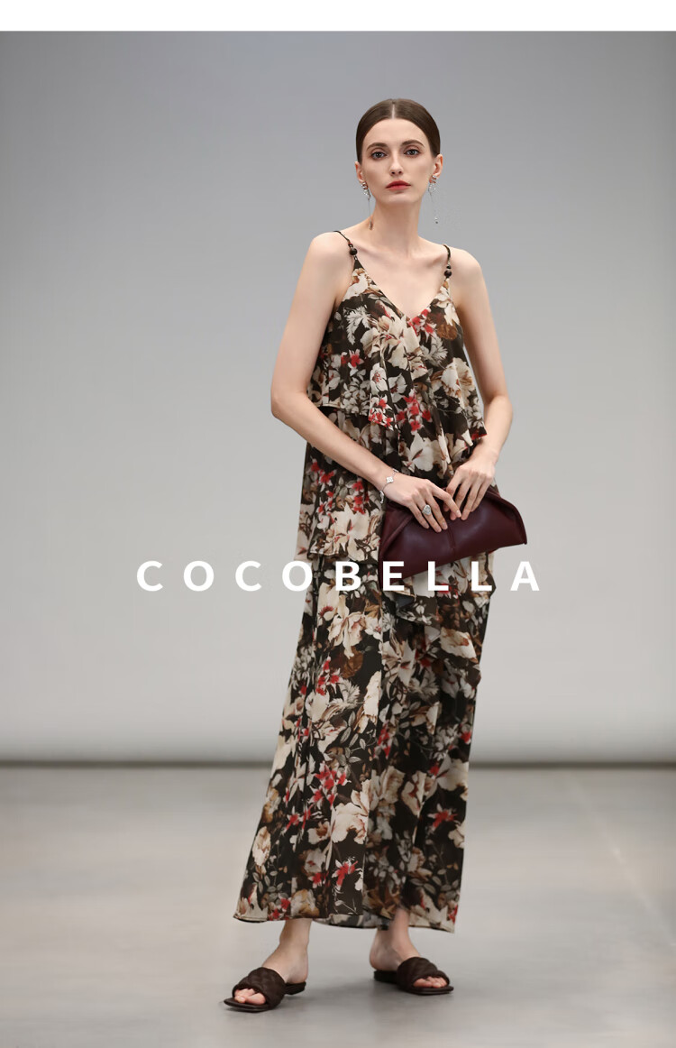 【限时秒杀】COCOBELLA优雅层叠荷叶摆吊带裙早秋繁花度假风连衣裙FR7063