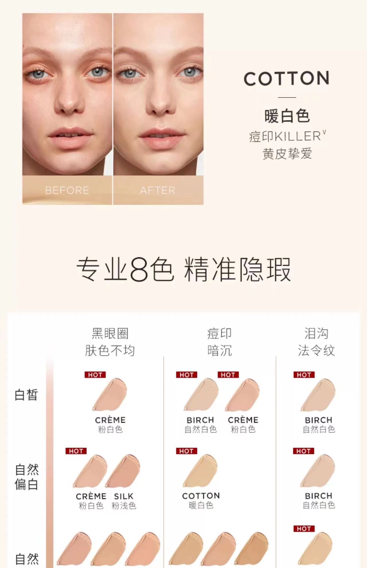 Hourglass遮瑕毫无痕遮瑕液遮盖黑眼圈CREME/BIRCH痘印