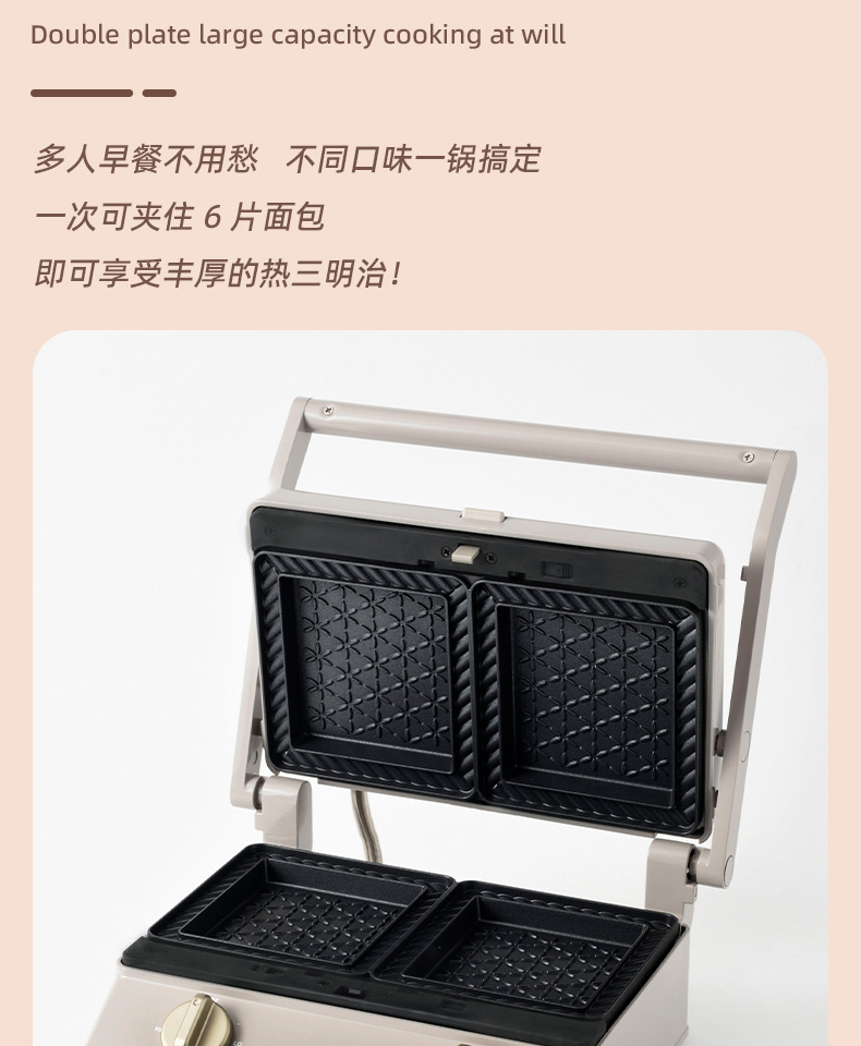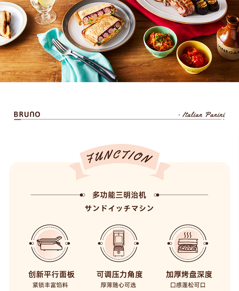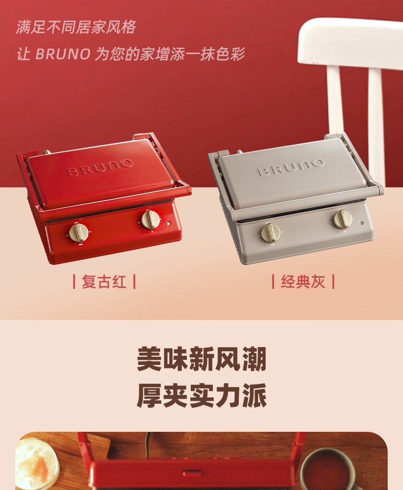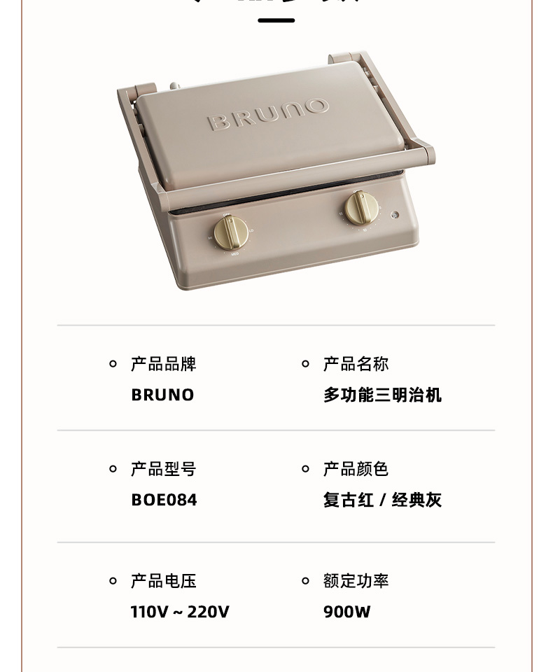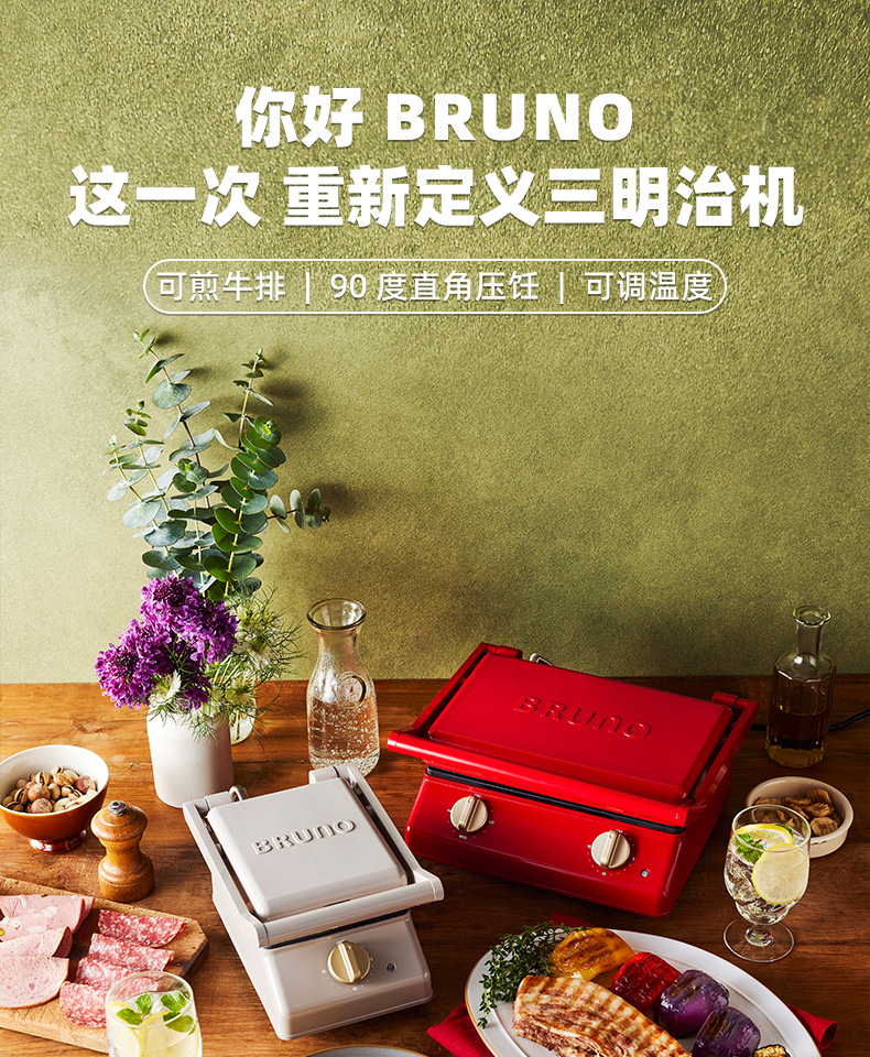 BRUNO进口大型三明治机早餐机家用烤面包吐司机多功能煎肉一体机