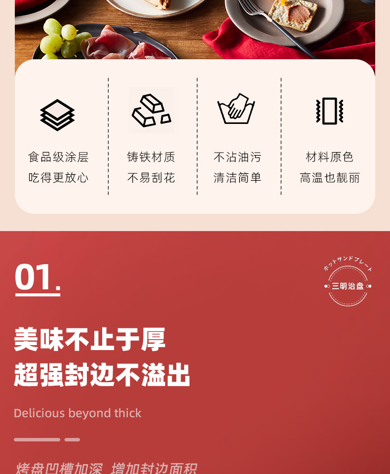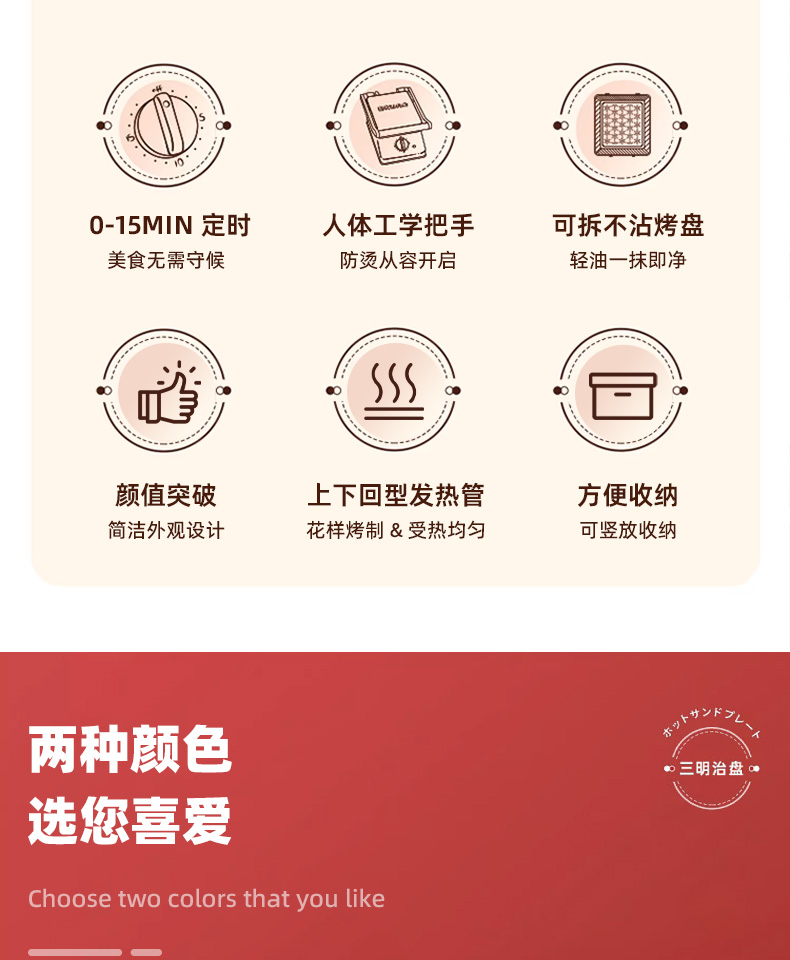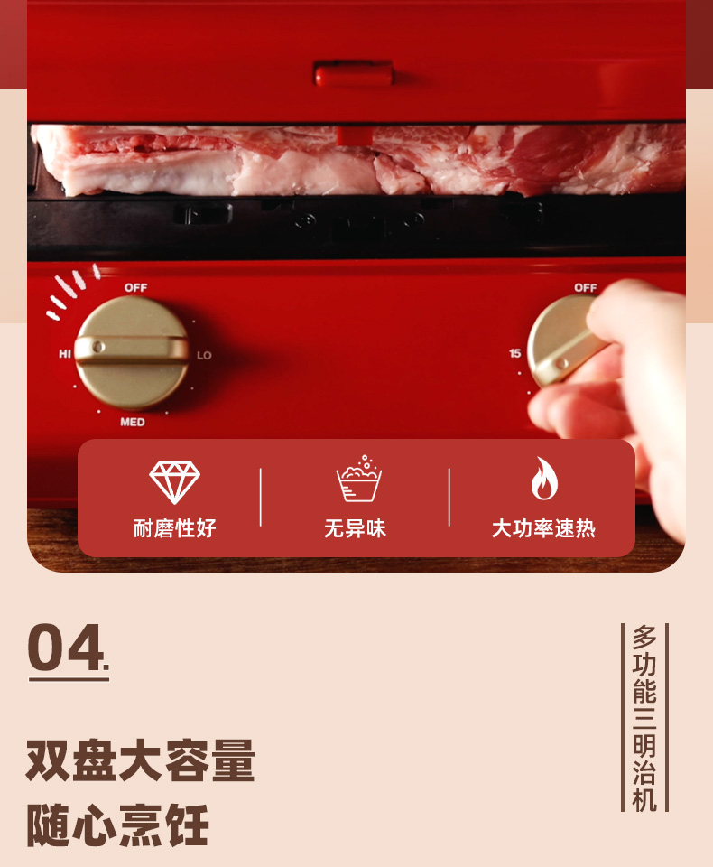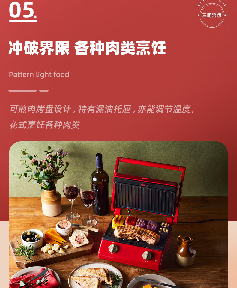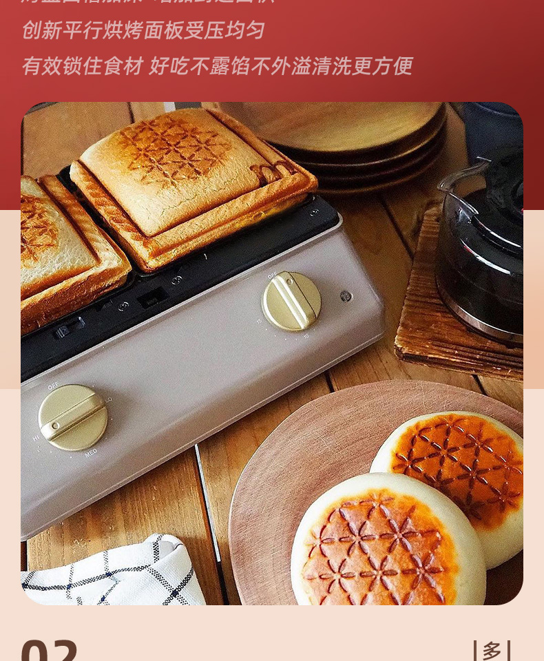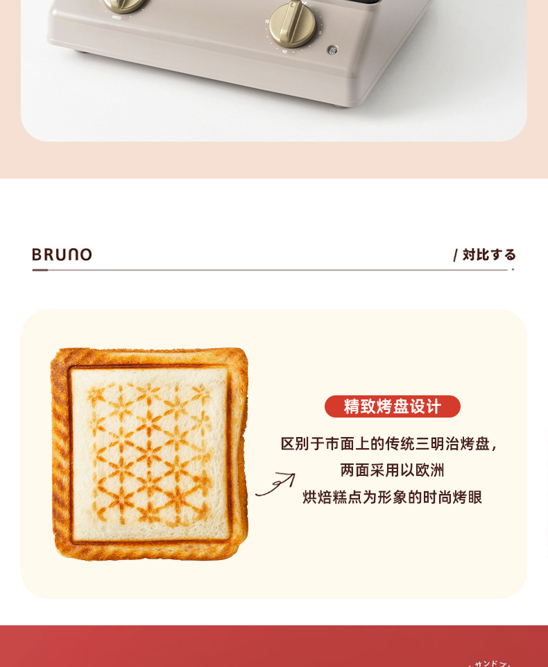 BRUNO进口大型三明治机早餐机家用烤面包吐司机多功能煎肉一体机