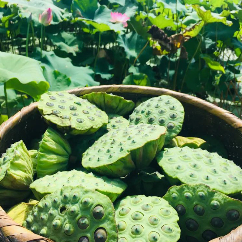 采莲蓬,剥莲蓬,去外皮,手工通心,一道道工序