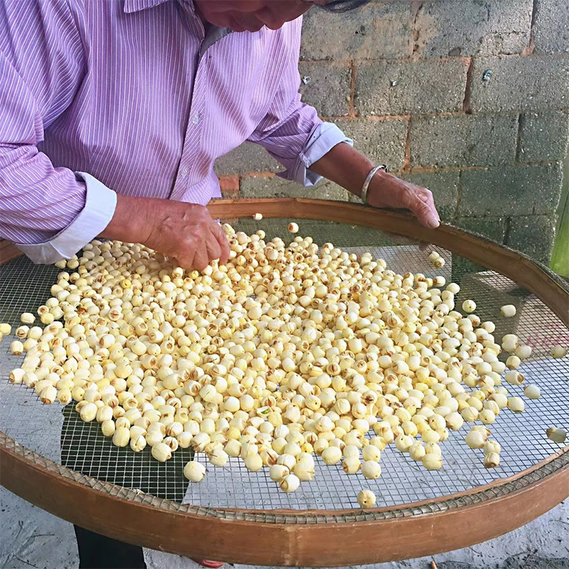 由于每一颗莲子,都是由纯手工剥的,因而完
