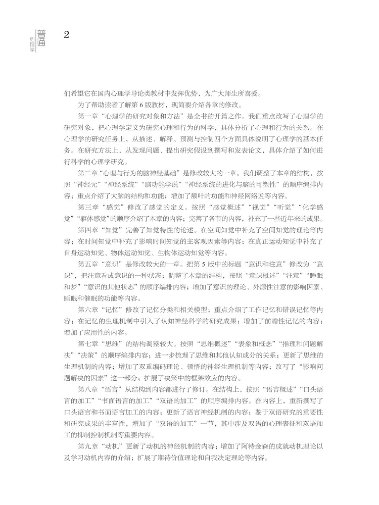 《普通心理学》是心理学基础课最基本的教材,也是教育部推荐的高等学校面向21世纪课程教材,北京市高等教育精品教材,首届全国优秀教材。本教材从1988年首次出版至今已经30余年,历经多次修订,成为心理学专业最经典的教材之一。本次修订以《普通高等学校本科心理学专业教学质量国家标准》的最新要求为标准,内容涵盖心理学基本原理和个体心理发生发展的基本规律,以五编十四章全面论述了心理学研究的对象和方法,心理的神经生理机制,人的信息加工系统(感觉、知觉、意识和注意、记忆、思维、语言),行为控制和调节系统(动机和情绪、情感),人的心理特征系统(能力和人格),学习和人的全程发展等基本内容。本书不仅可作为心理专业本科生的基础课教材,还可作为报考硕士、博士研究生的重要参考资料。