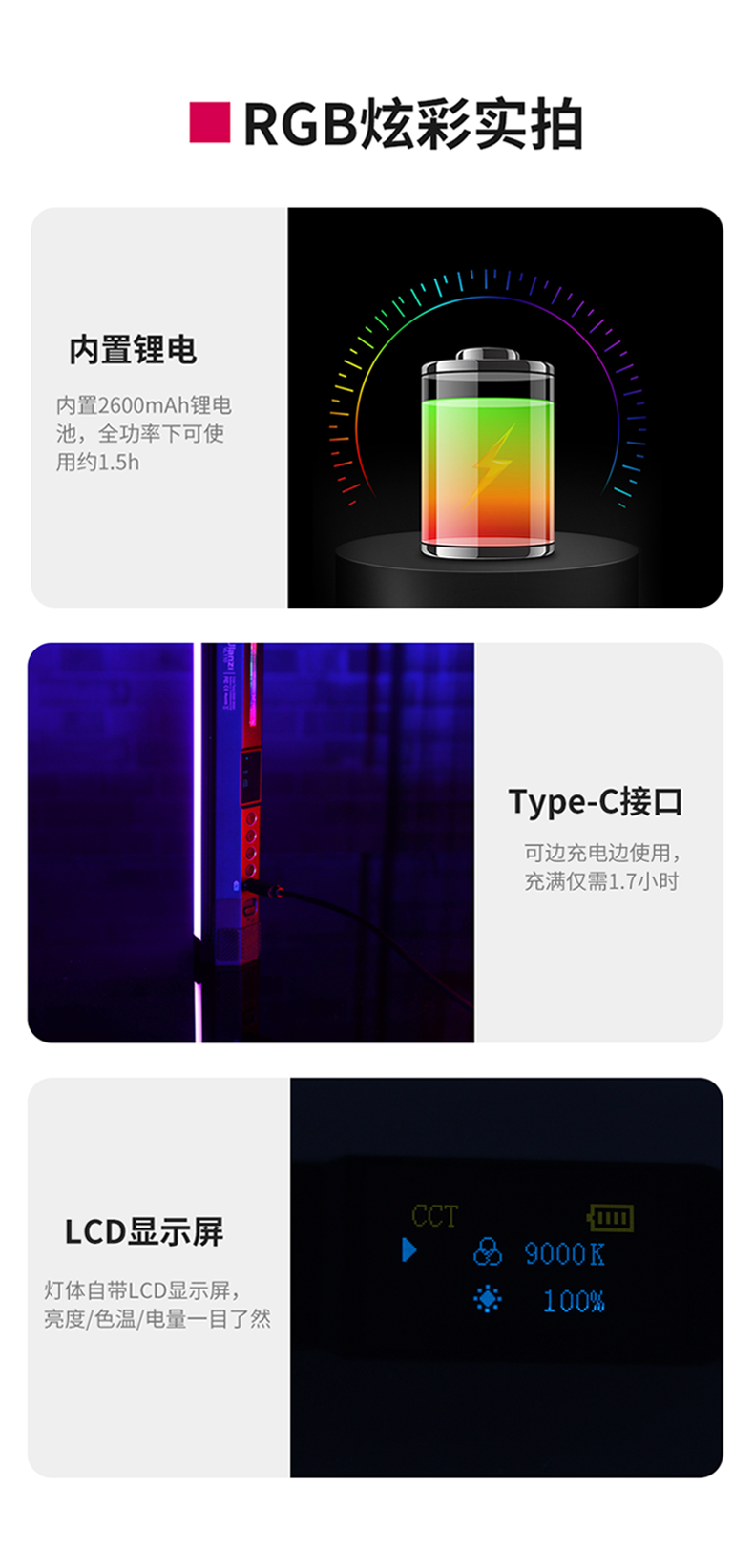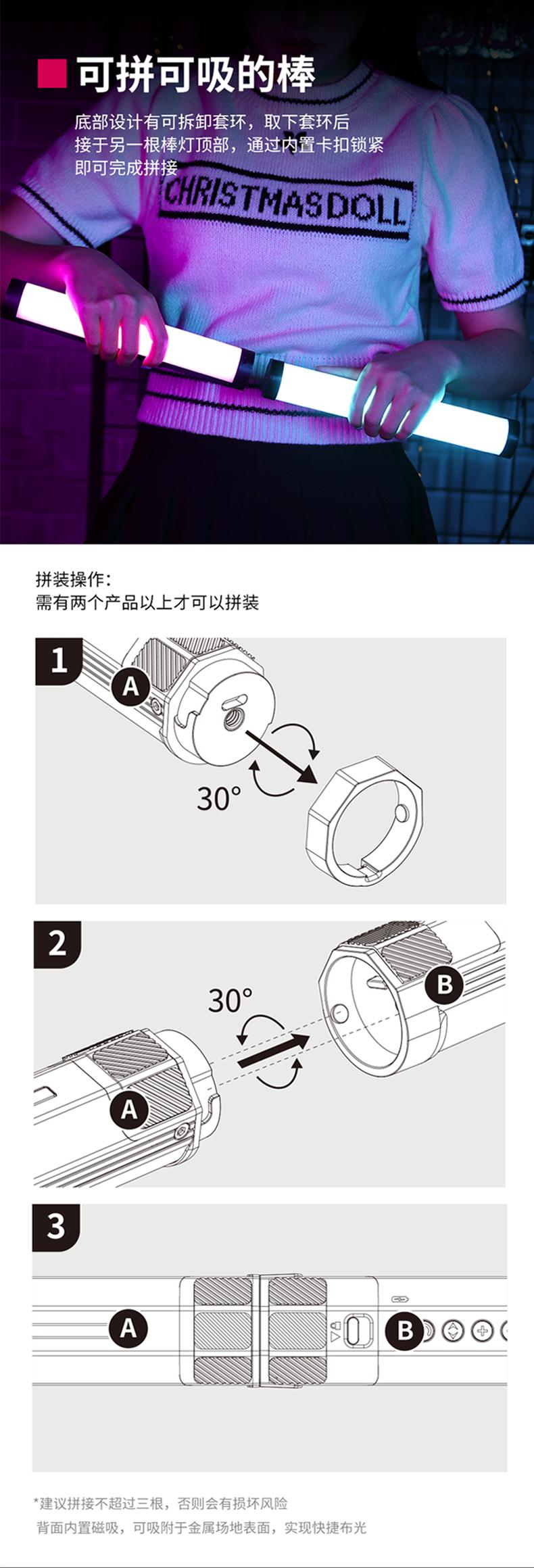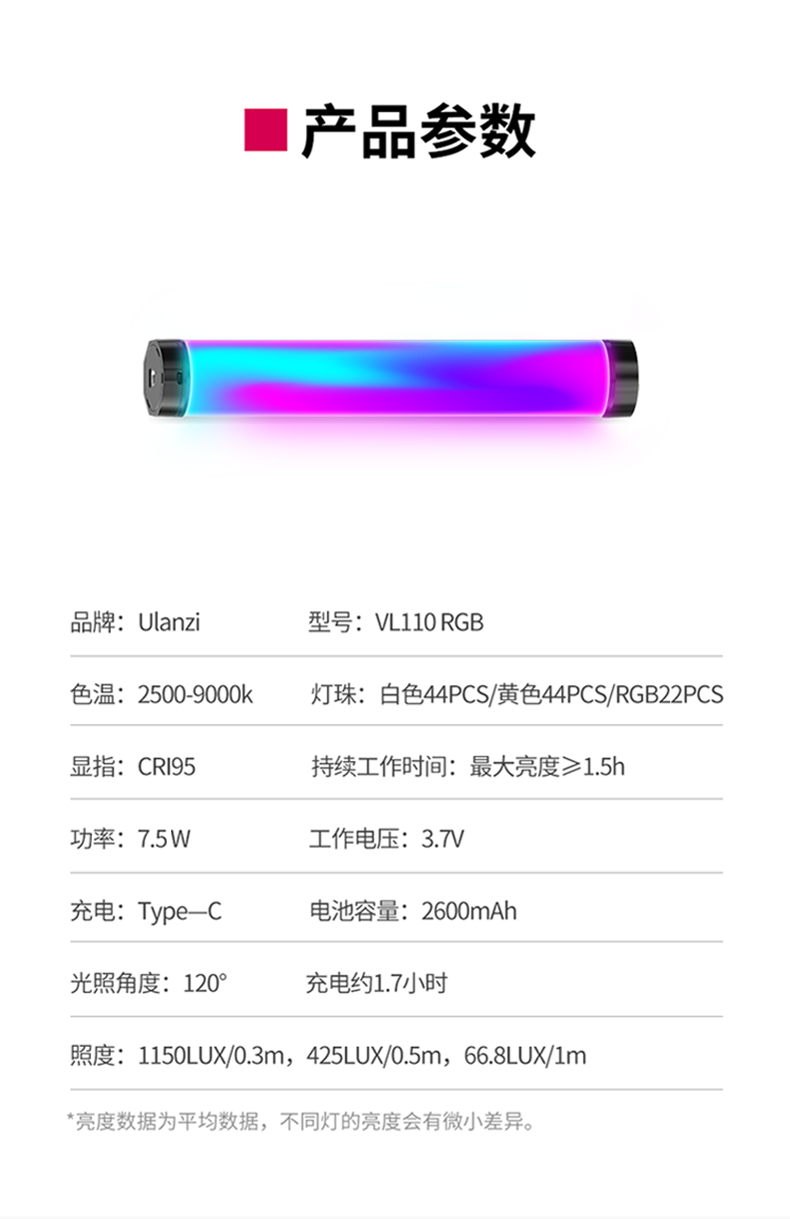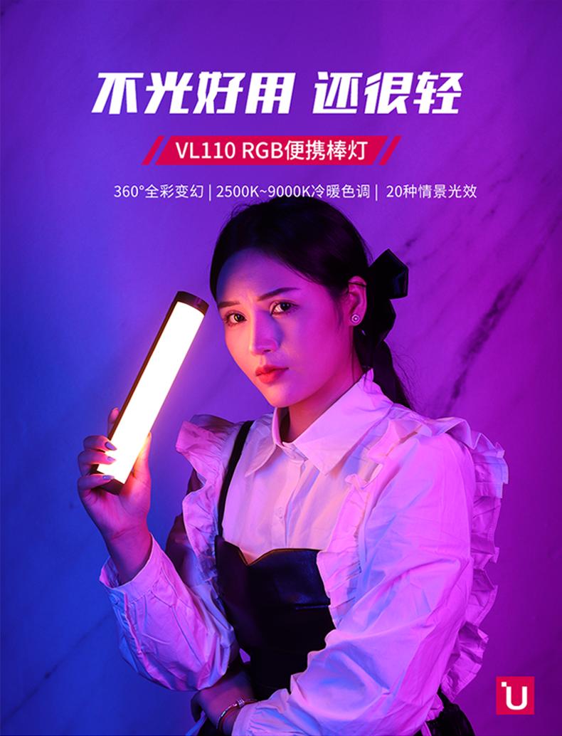 Ulanzi优篮子 VL110磁吸RGB全彩棒灯便携手持补光灯棒双色温拼接LED摄影灯微单相机室内直播特效 RGB棒灯24cm
