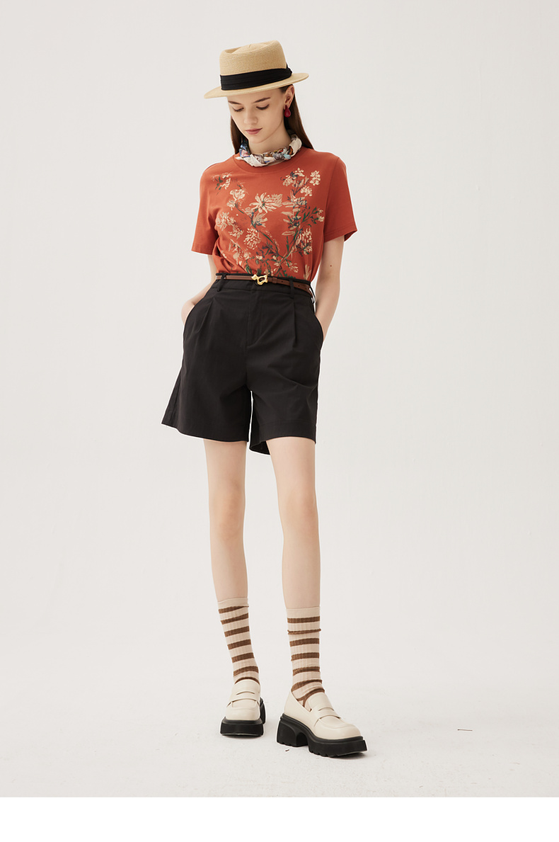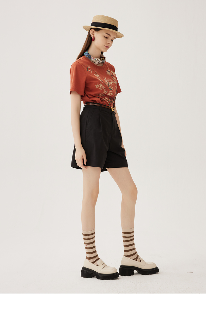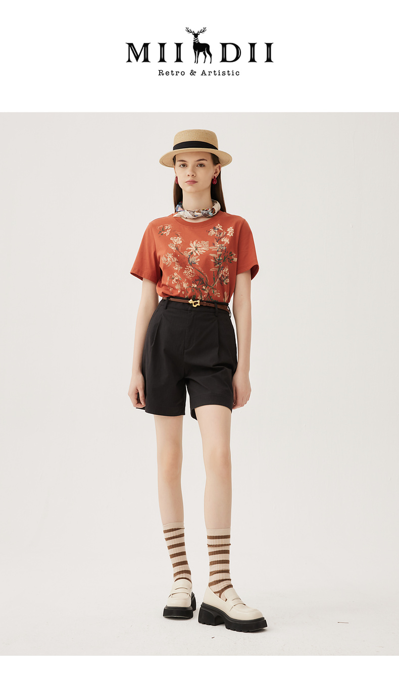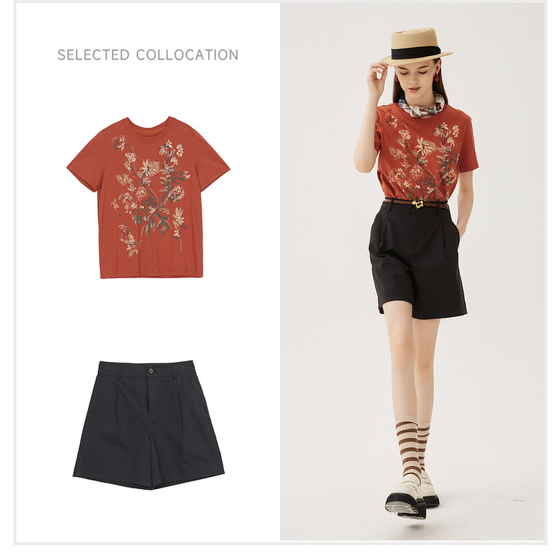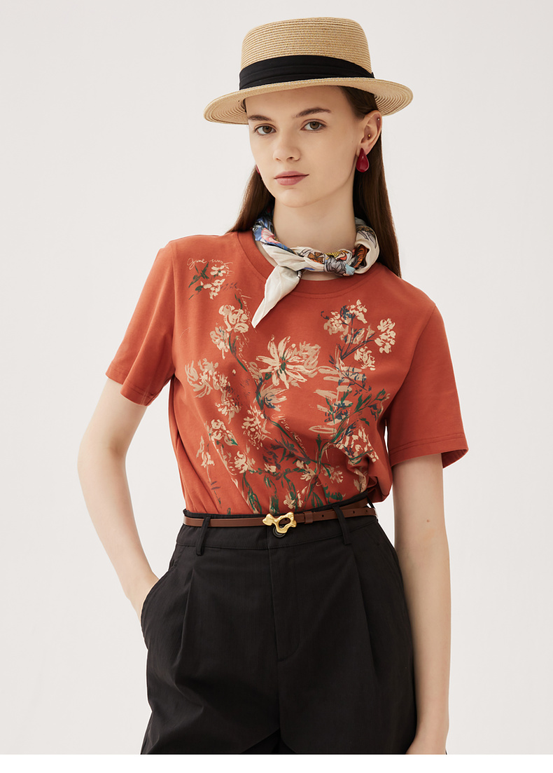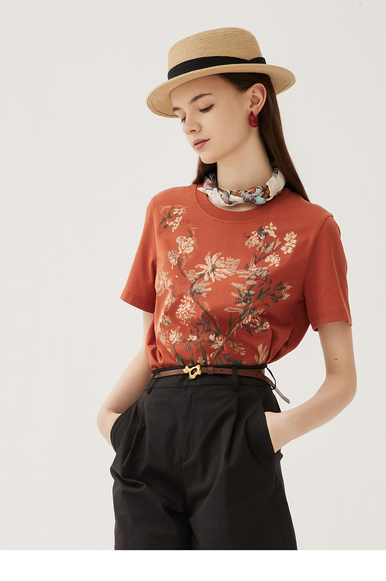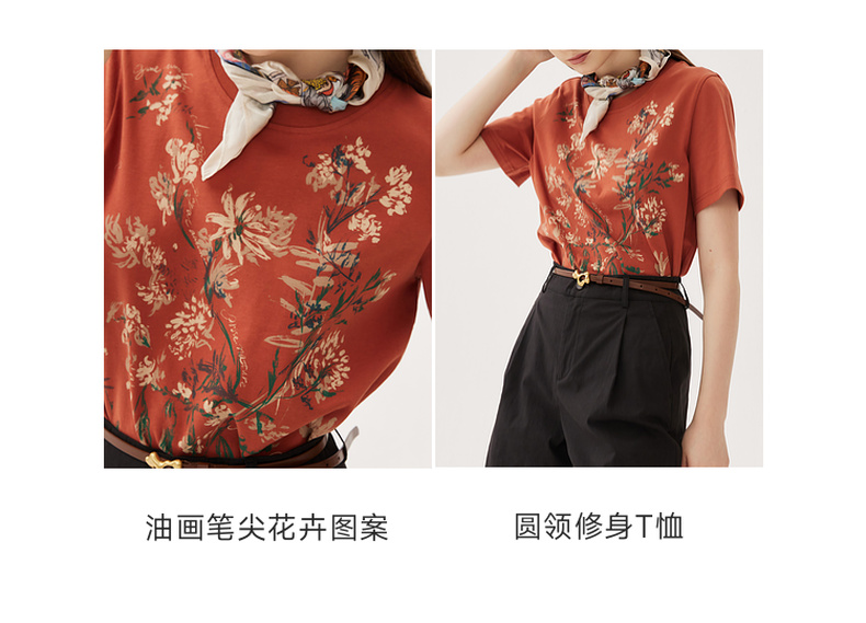 谜底印花T恤短袖女士2024秋季新品休闲百搭合体圆领上衣243MT0992