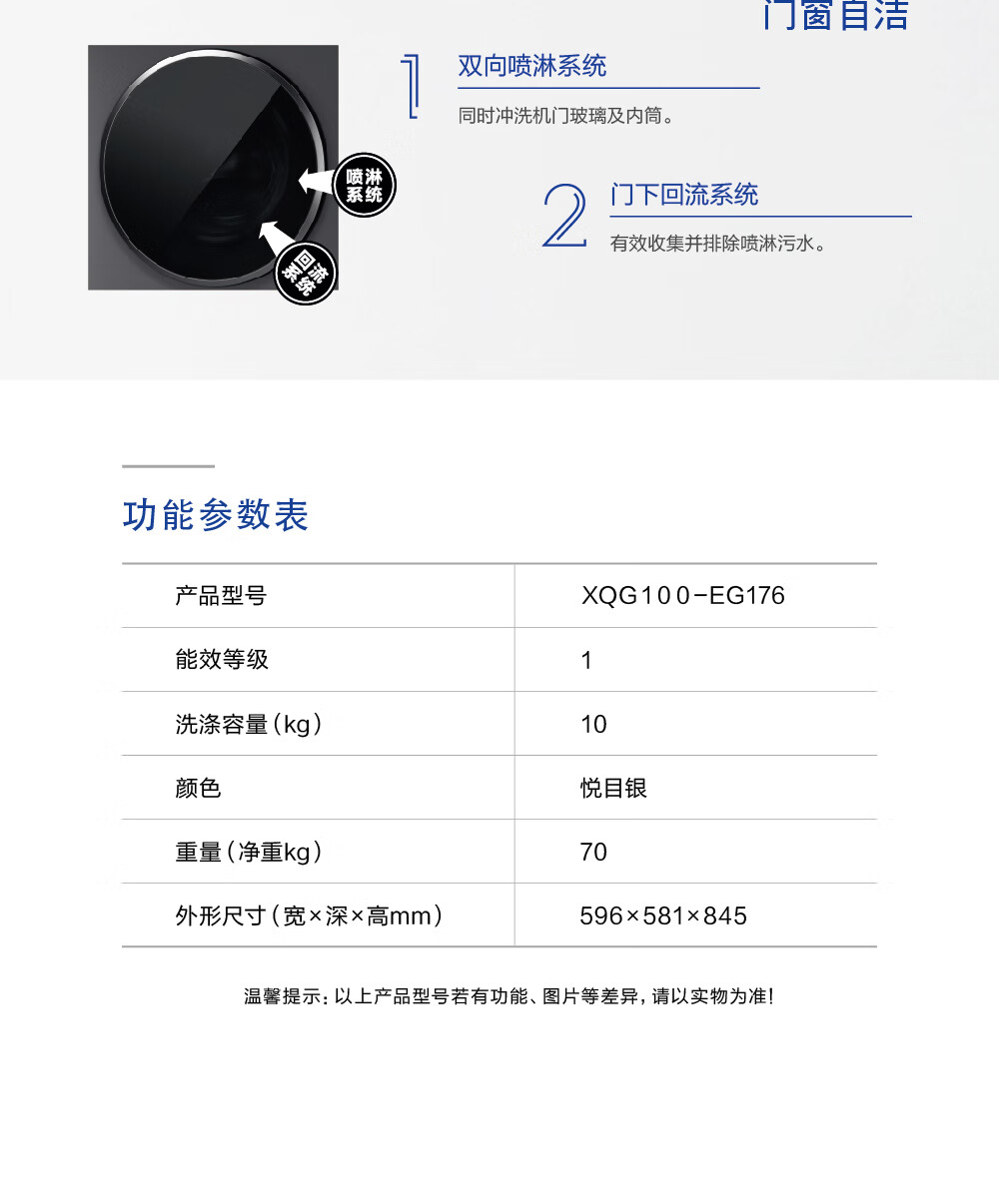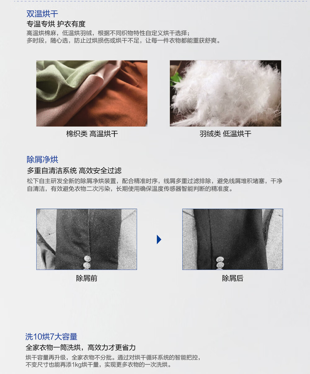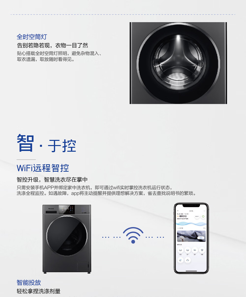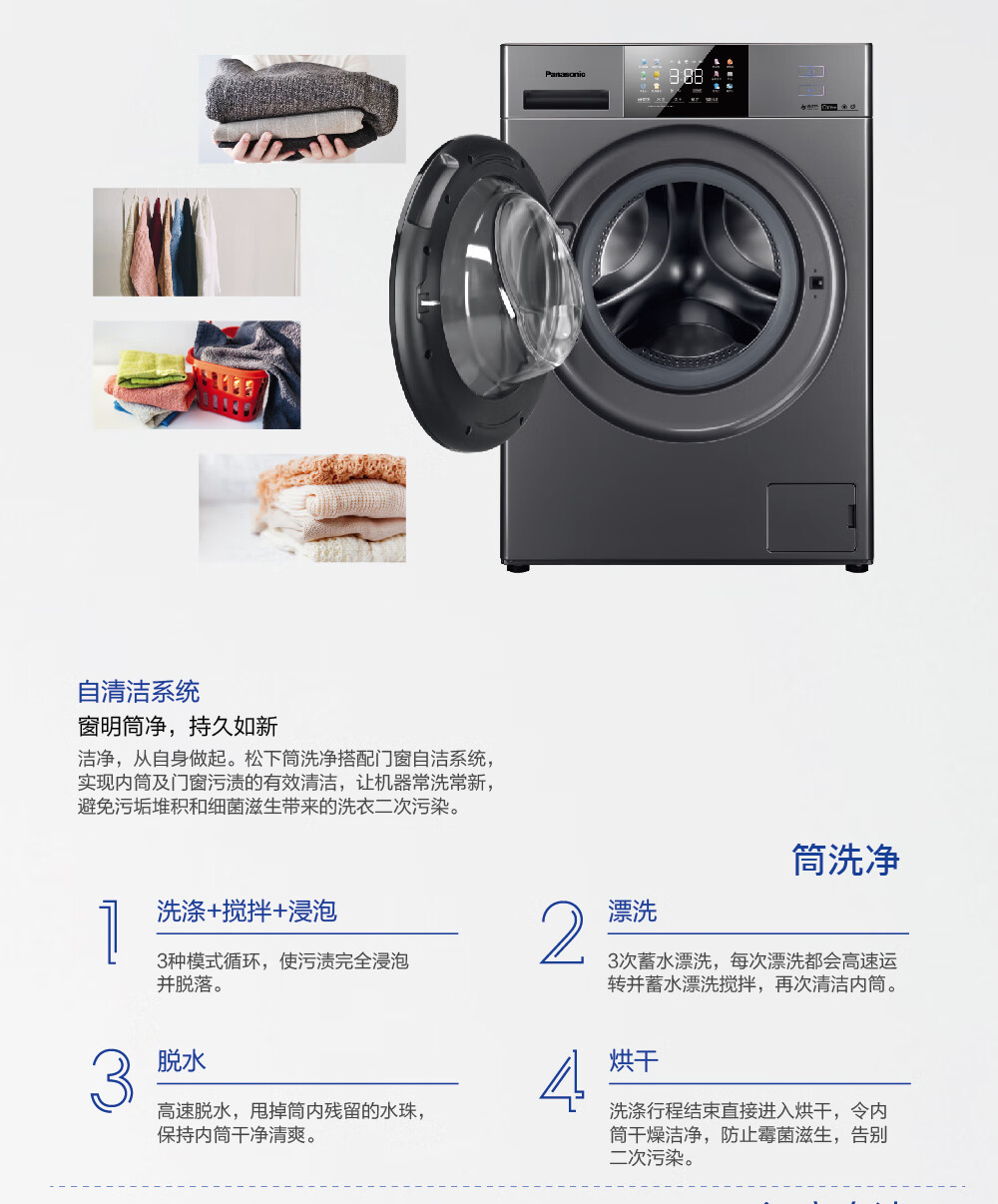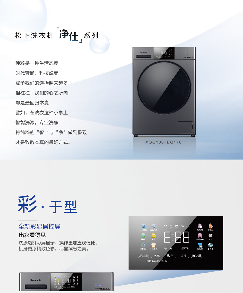 松下(Panasonic)XQG100-EG176 10公斤 洗烘一体机 LED彩屏/触摸按键//智能投放/彩屏