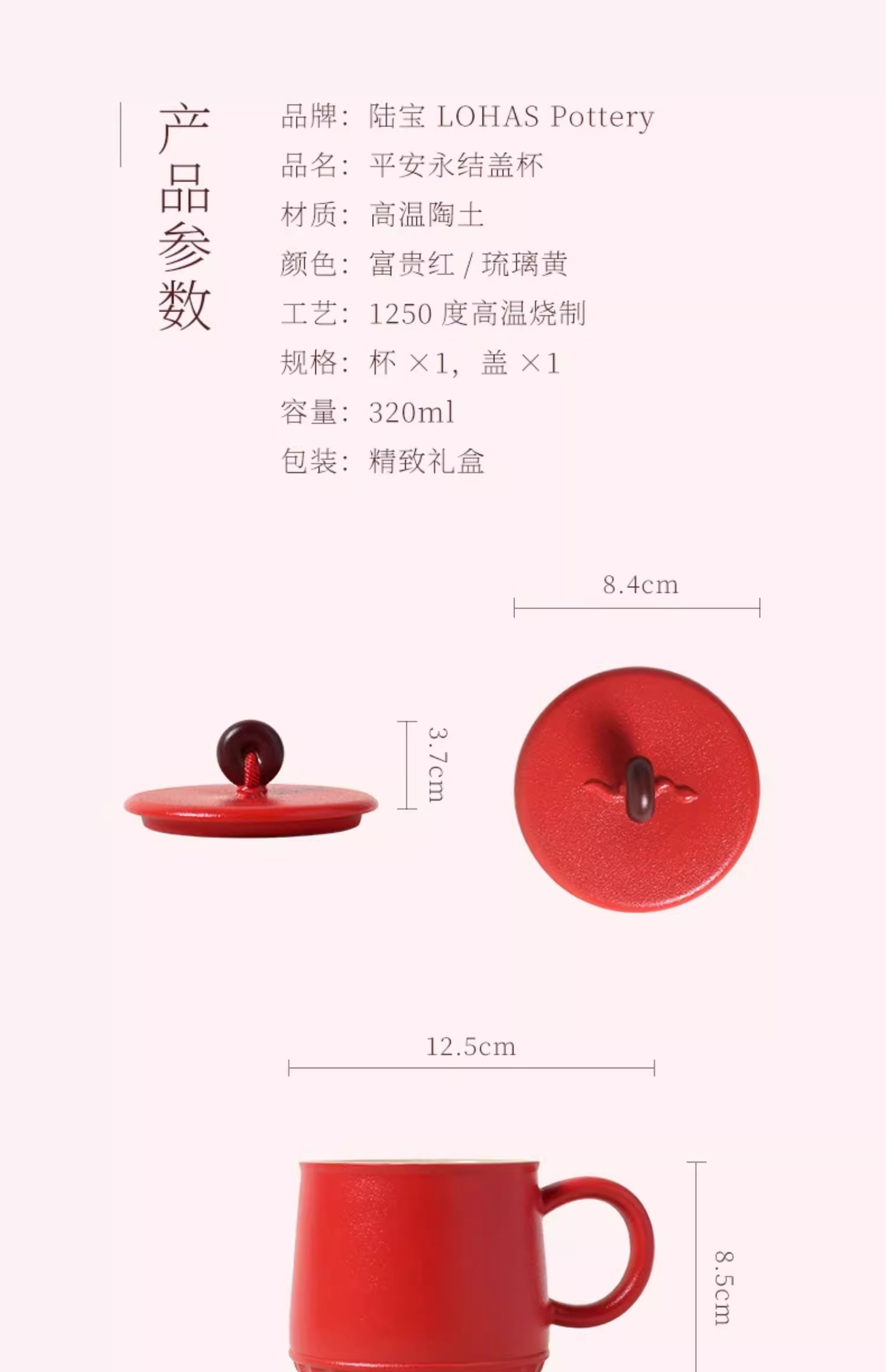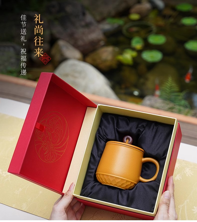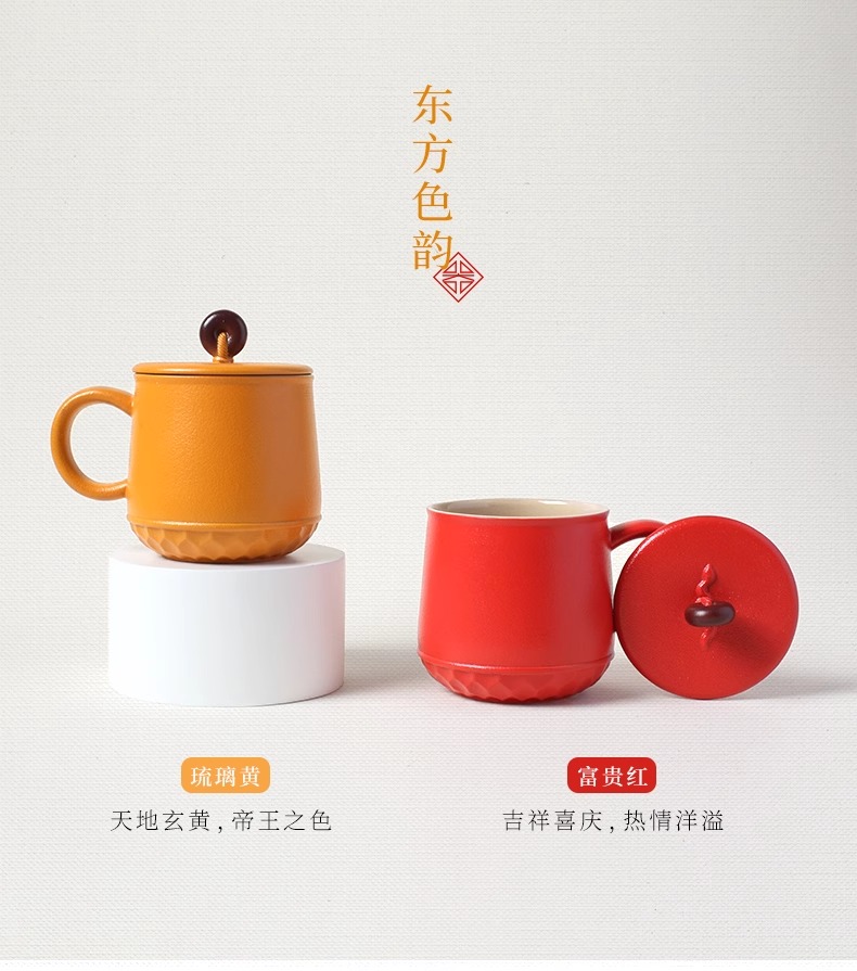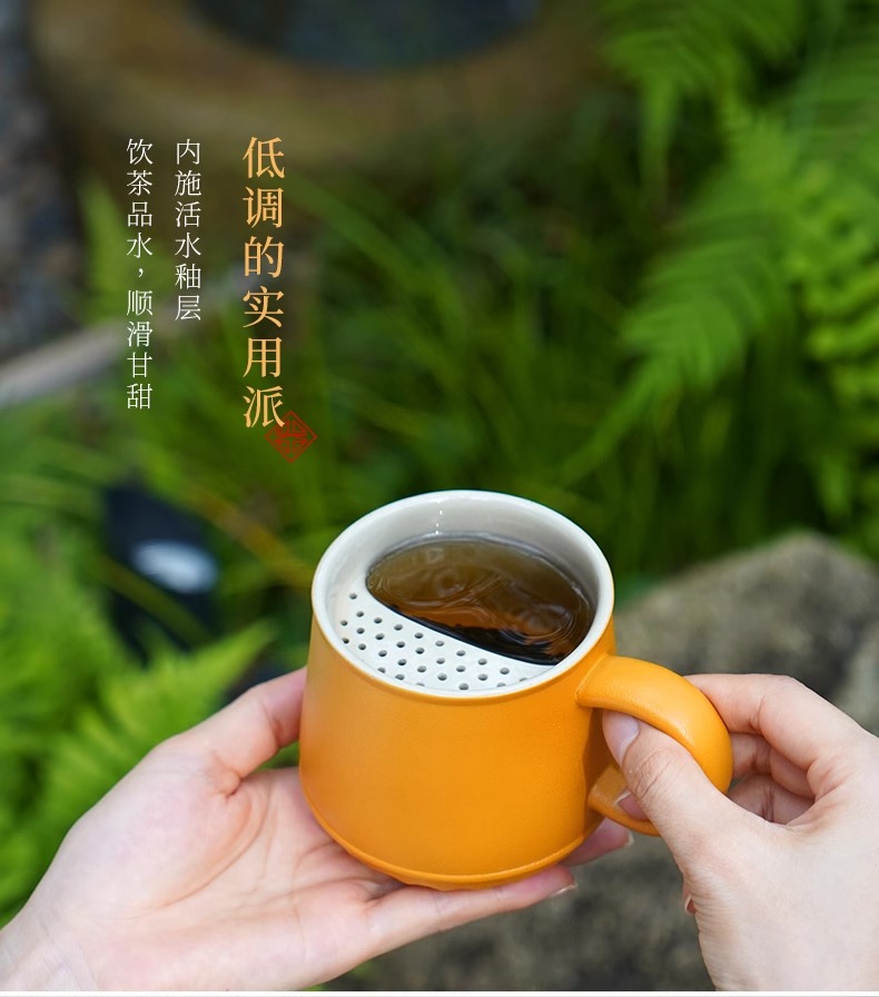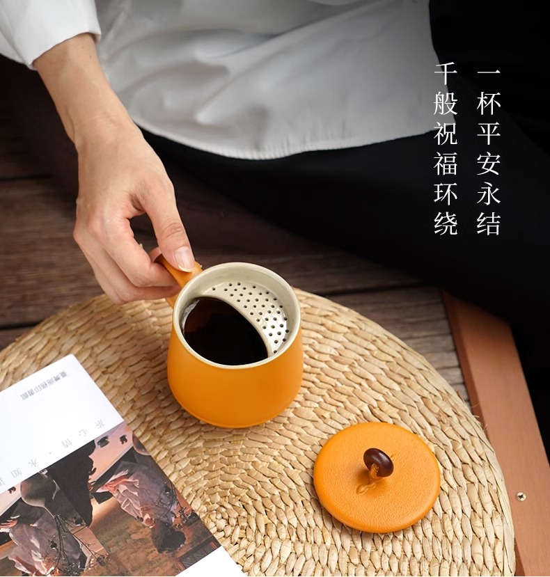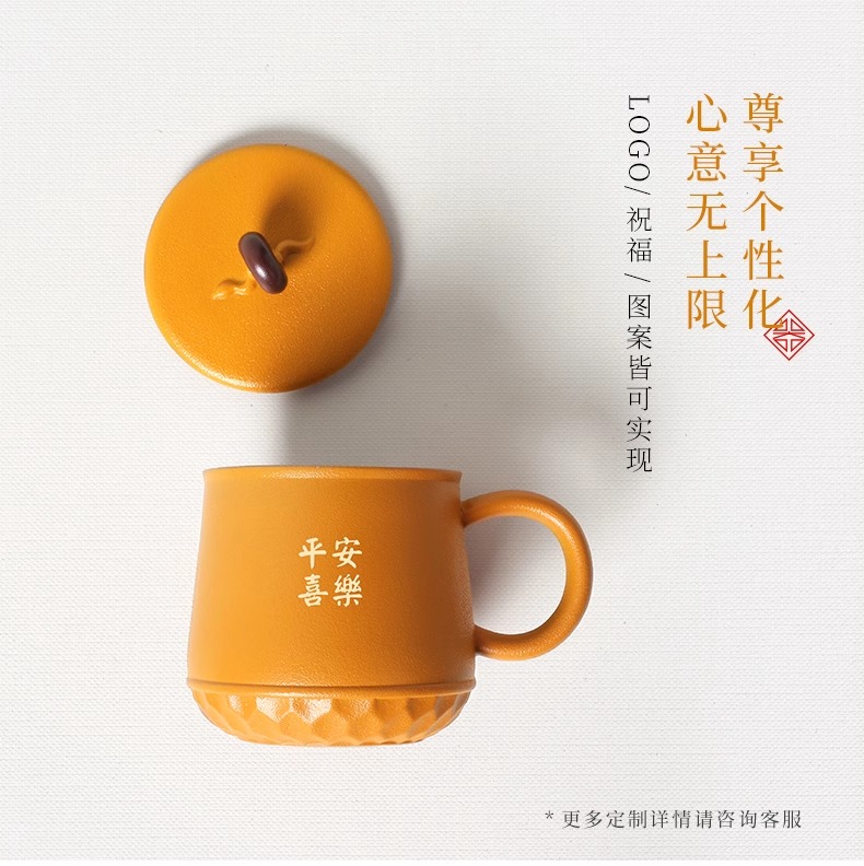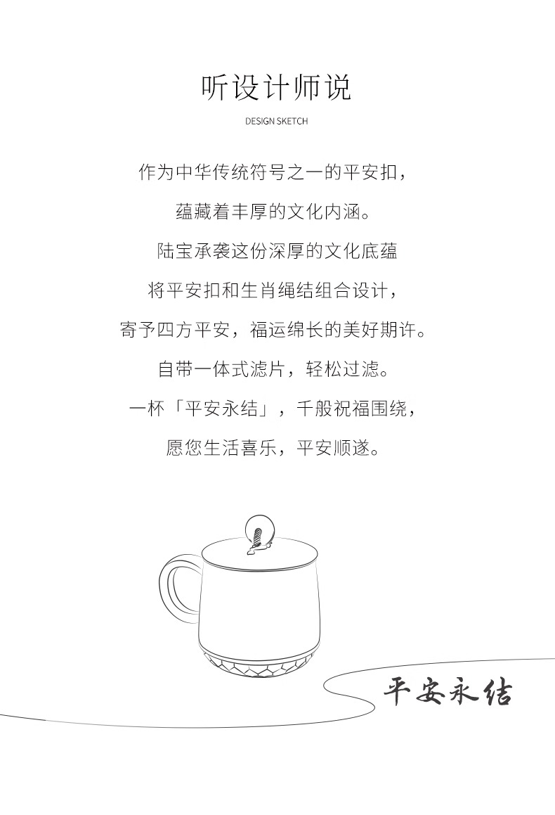 台湾陆宝平安永结盖杯蛇年生肖款喝茶泡茶杯带盖过滤马克杯平安永结盖杯(琉璃黄)