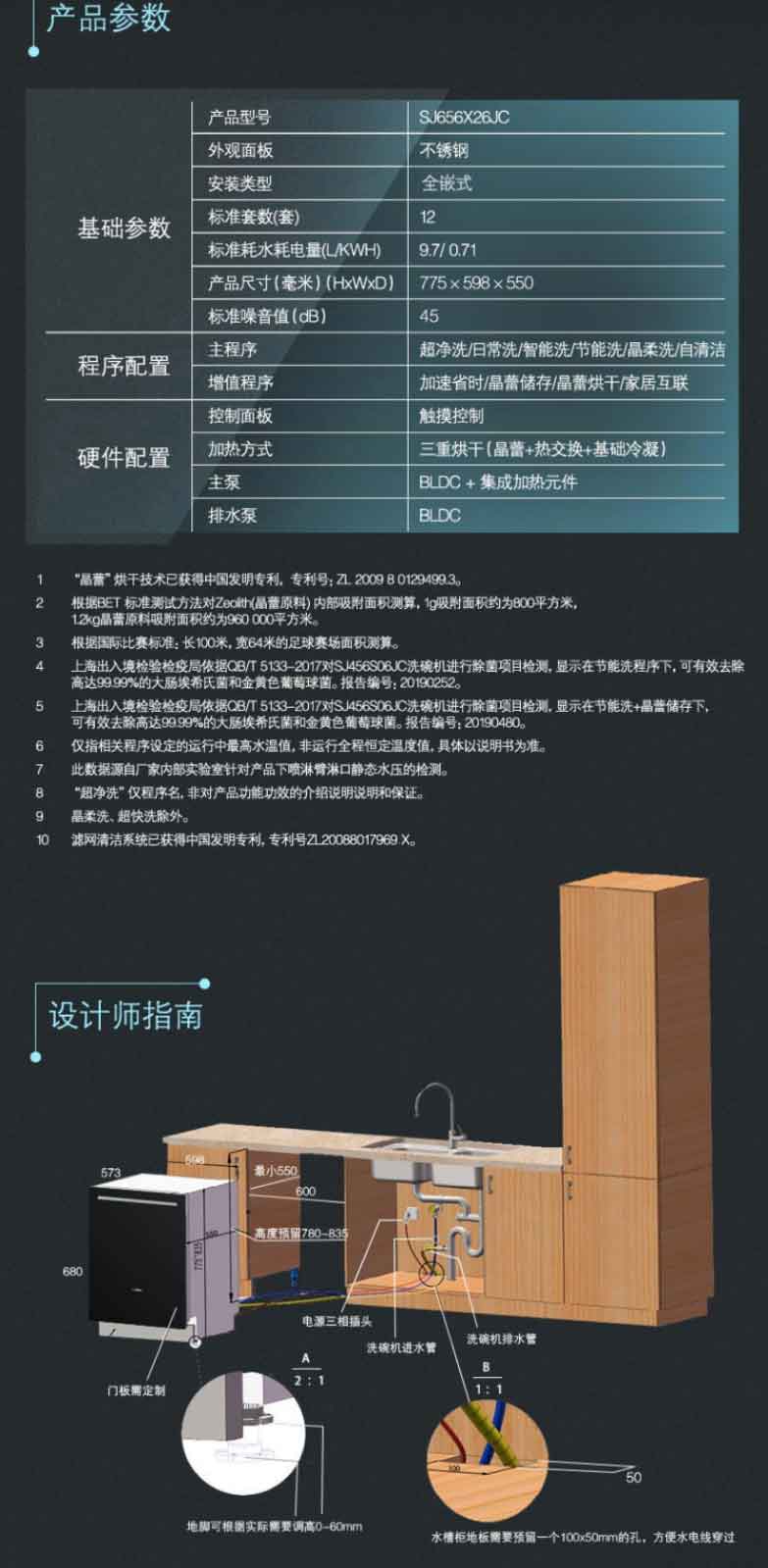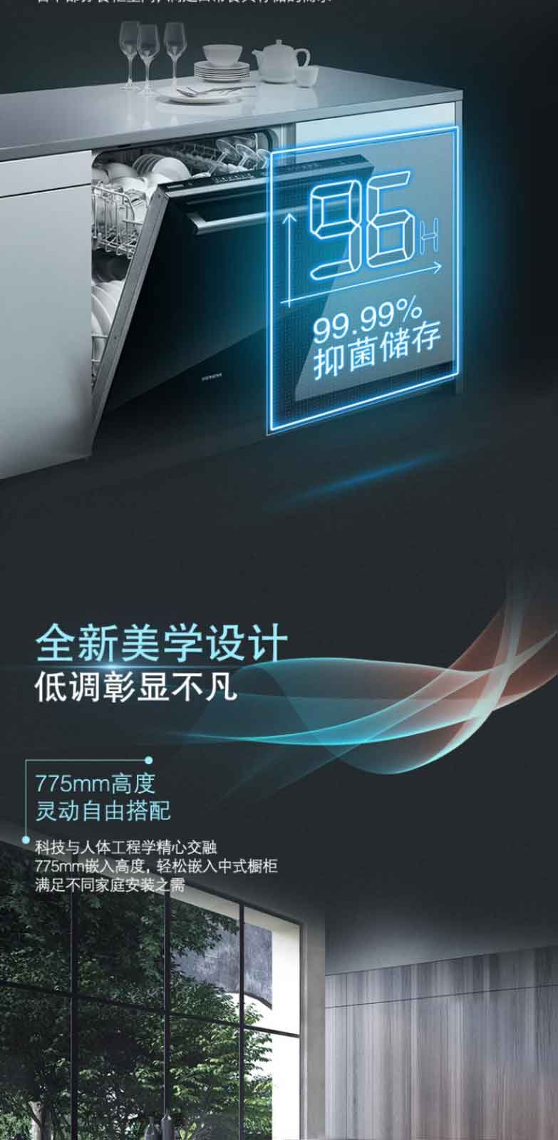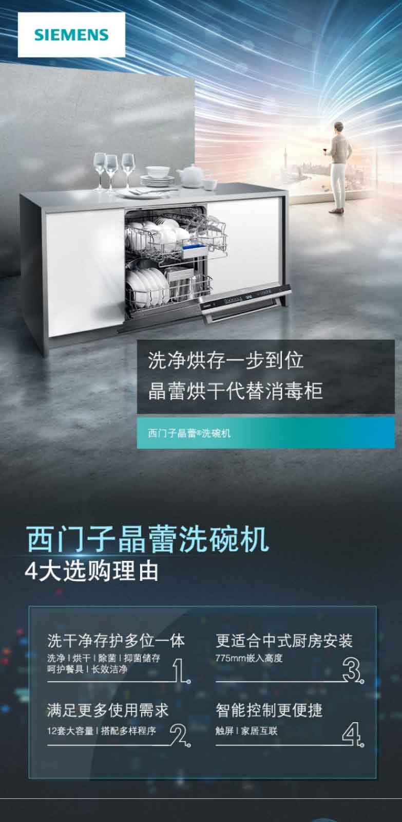 西门子洗碗机 嵌入式智能互联 晶蕾烘干储存 高温除菌SJ656X26JC