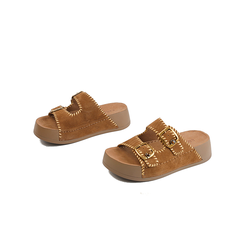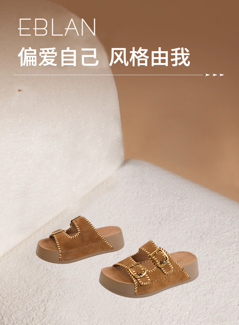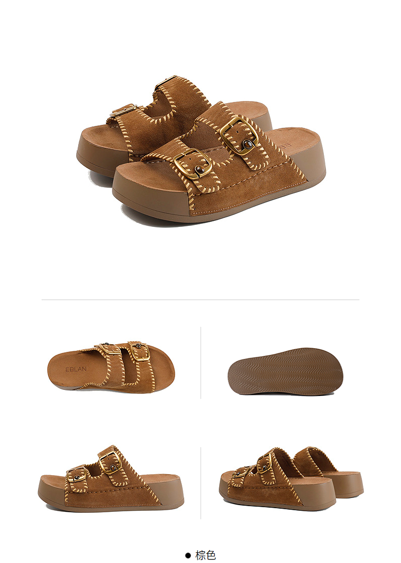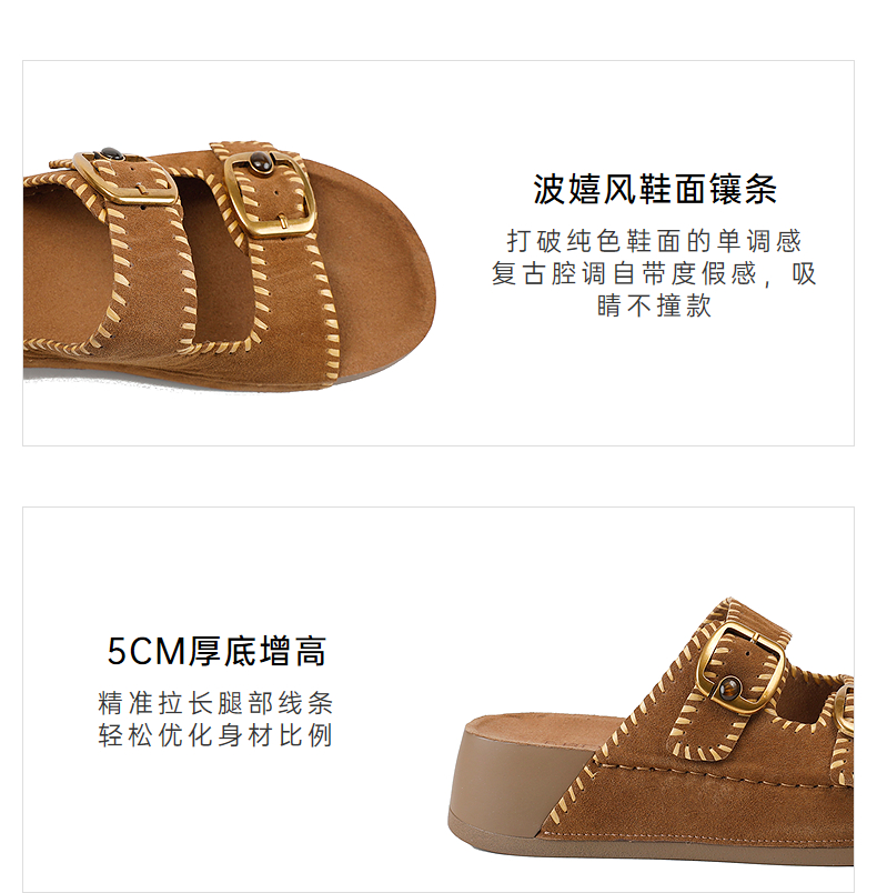 【上新】伊伴2026夏季松弛感波嬉风复古美拉德增高勃肯凉拖鞋B26315803