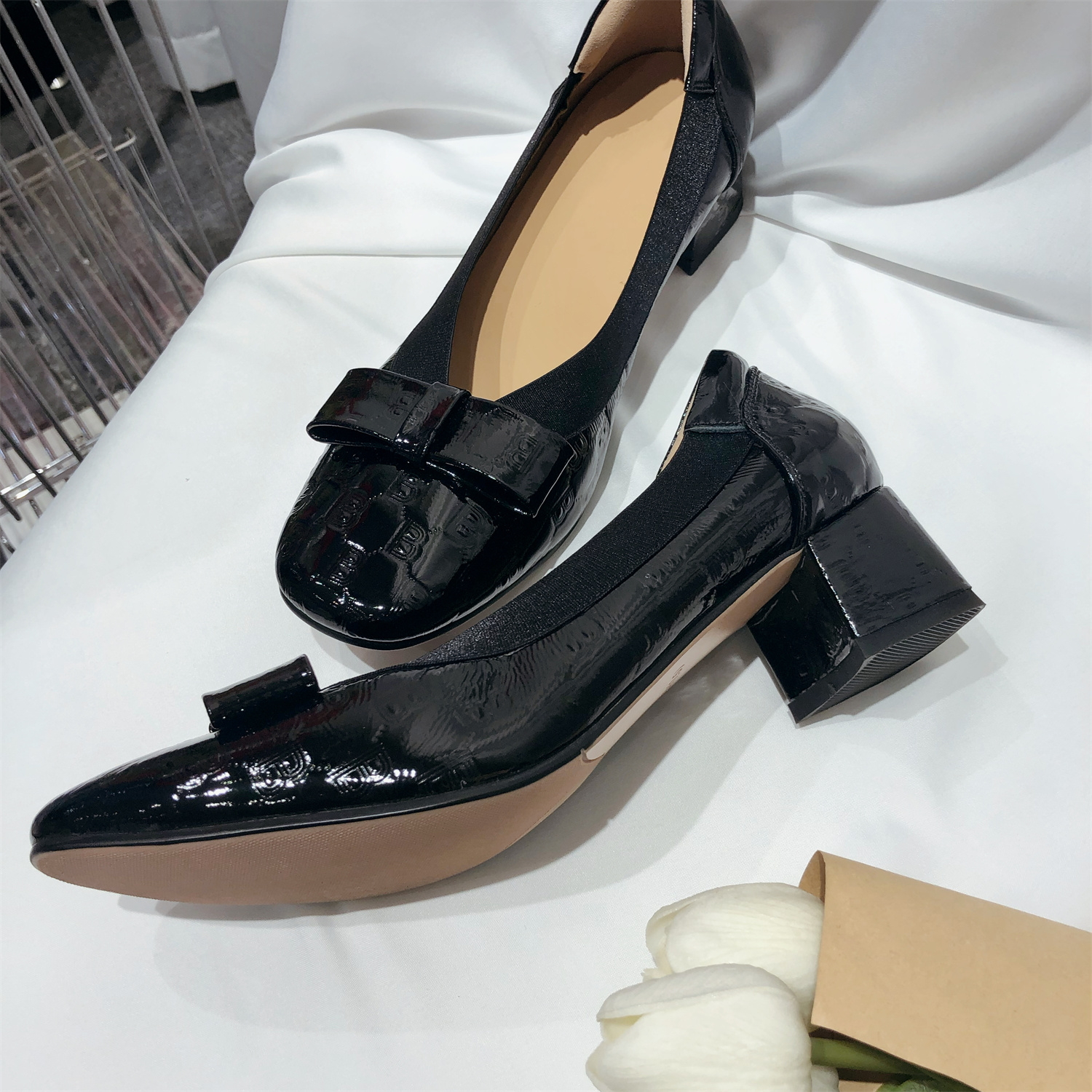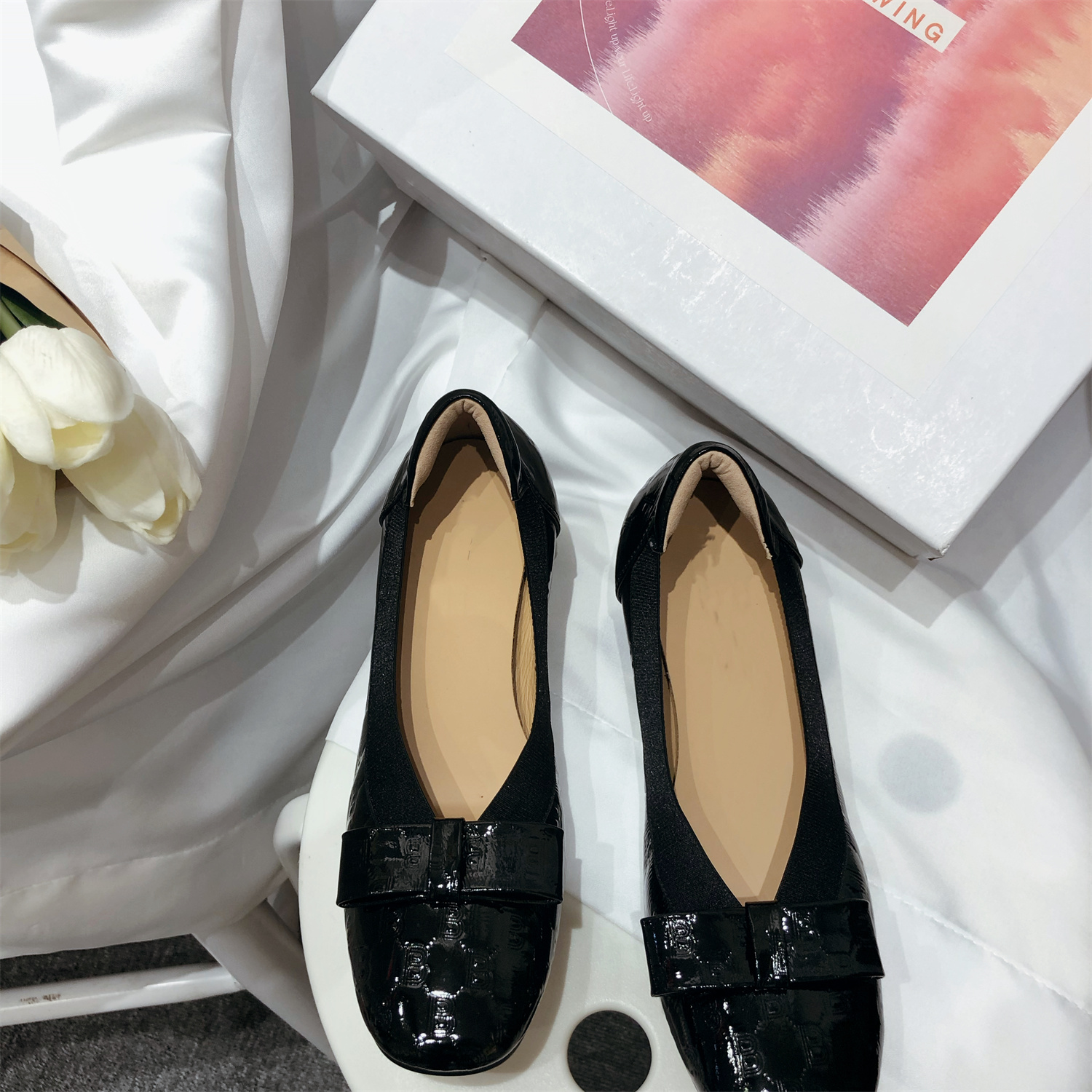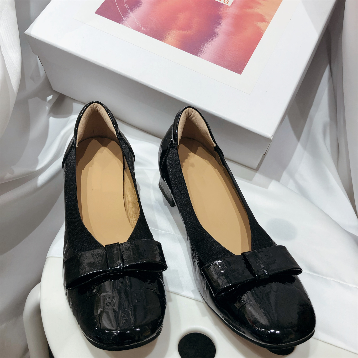 产品卖点:经典百搭款式.鞋口松紧不管胖瘦脚都可以很服帖秀气.后跟处乳胶泡防止磨脚后跟.也可以避免掉跟.整双鞋子就是任何脚型穿上去都很秀气修长.舒适感非常好.