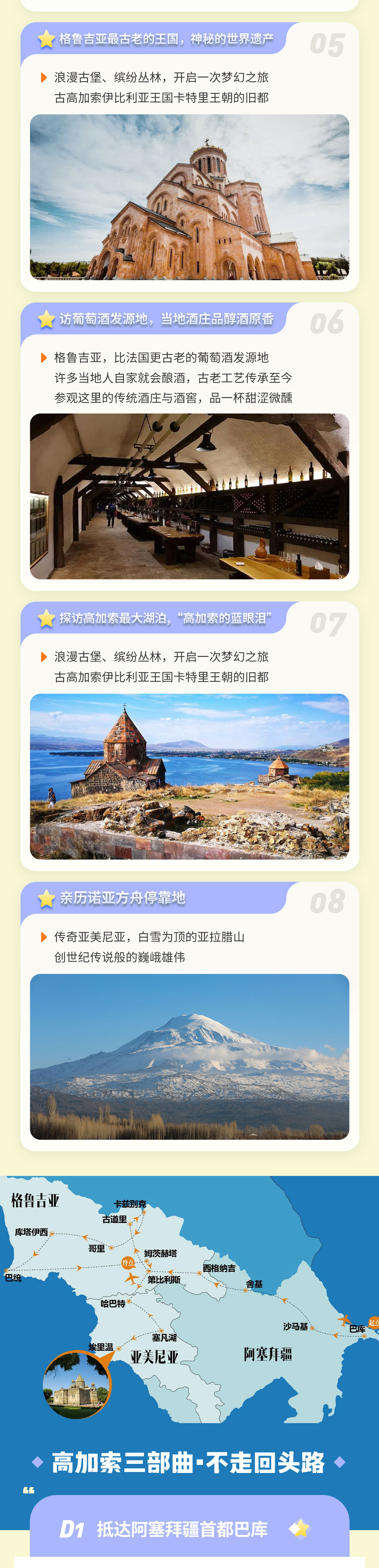 【清明/五一早规划 · 高加索】阿塞拜疆+格鲁吉亚+亚美尼亚10日8晚深度纯玩游·10人轻奢小团(全程4+5星住宿·希尔旺沙宫殿+斯大林博物馆+泡硫磺浴+品白兰地+诺亚方舟停靠地)