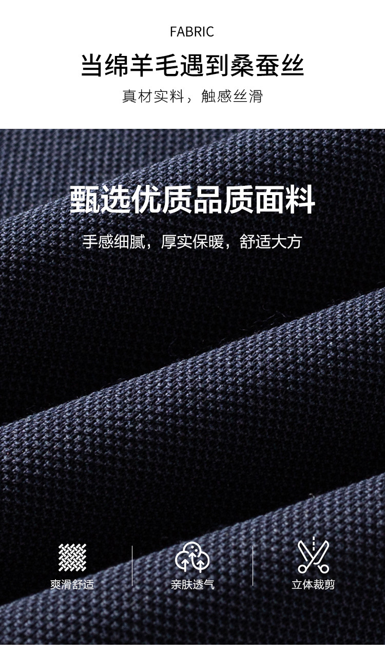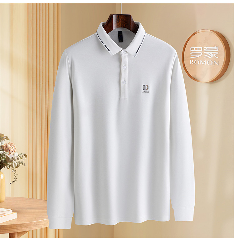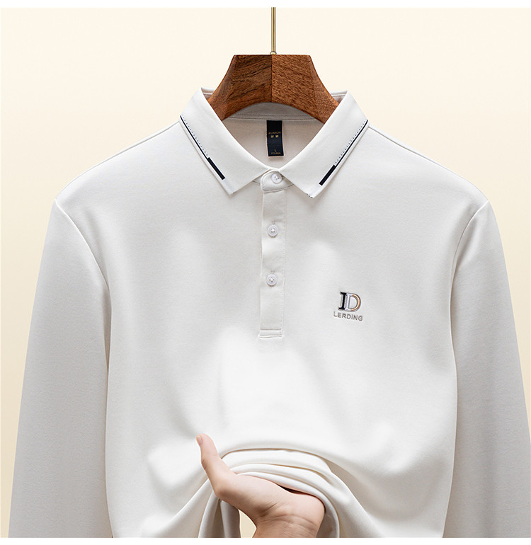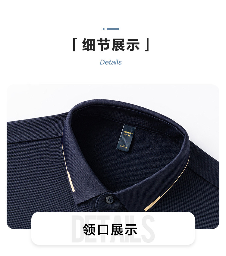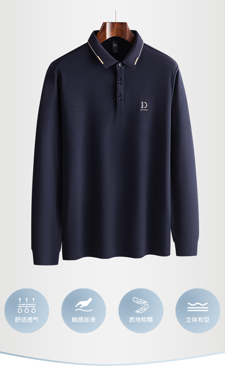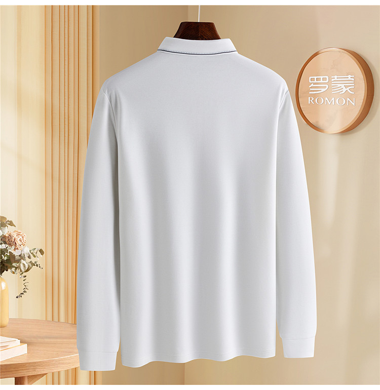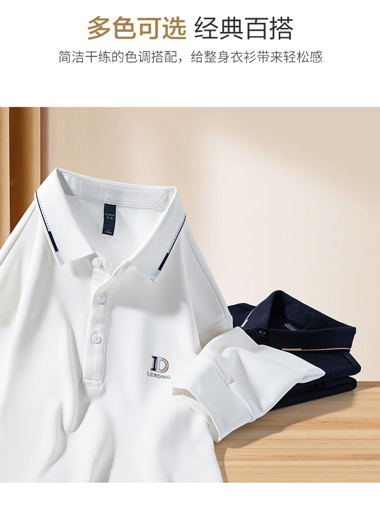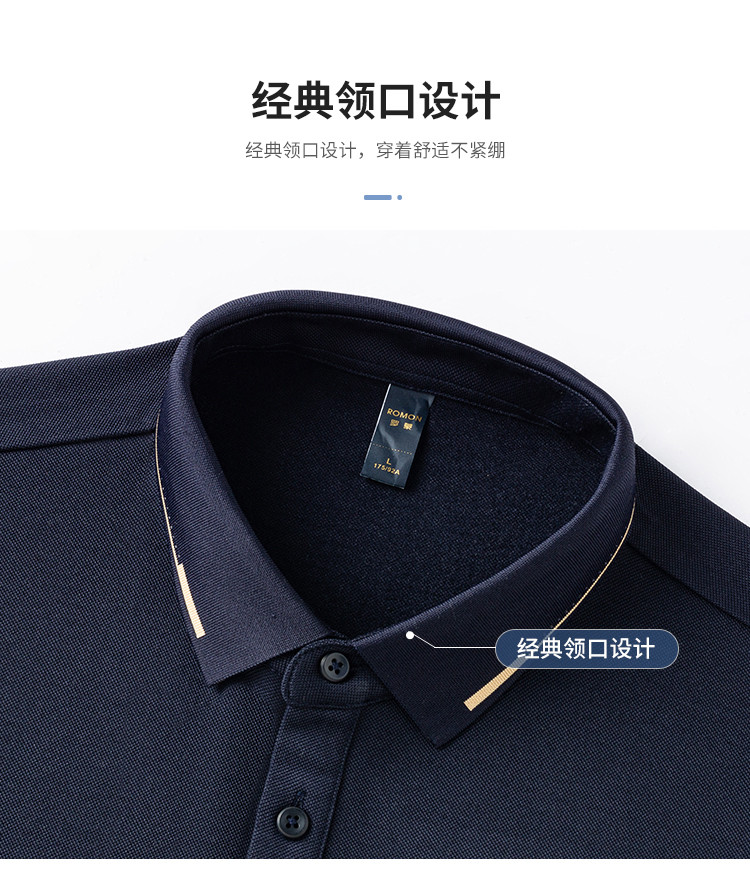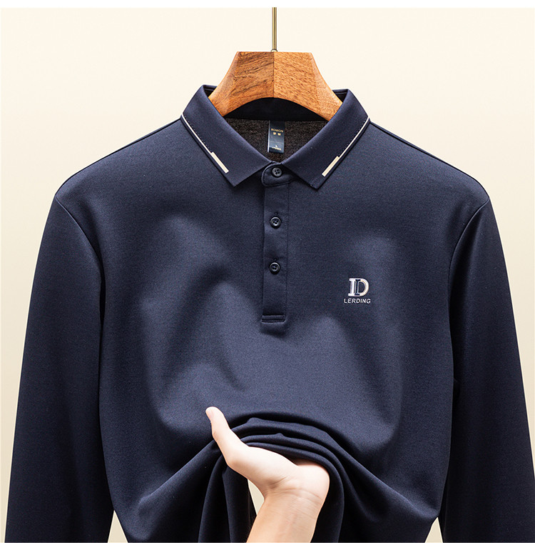 罗蒙男士秋冬保暖长袖Polo衫含羊毛蚕丝双面磨毛休闲通勤polo衫男长袖t恤男