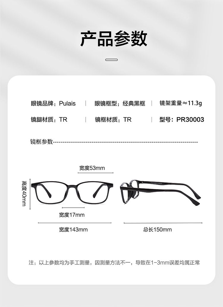 普莱斯光学镜架PR30003 质感黑框潮酷有型 那女同款 TR材质三色可选