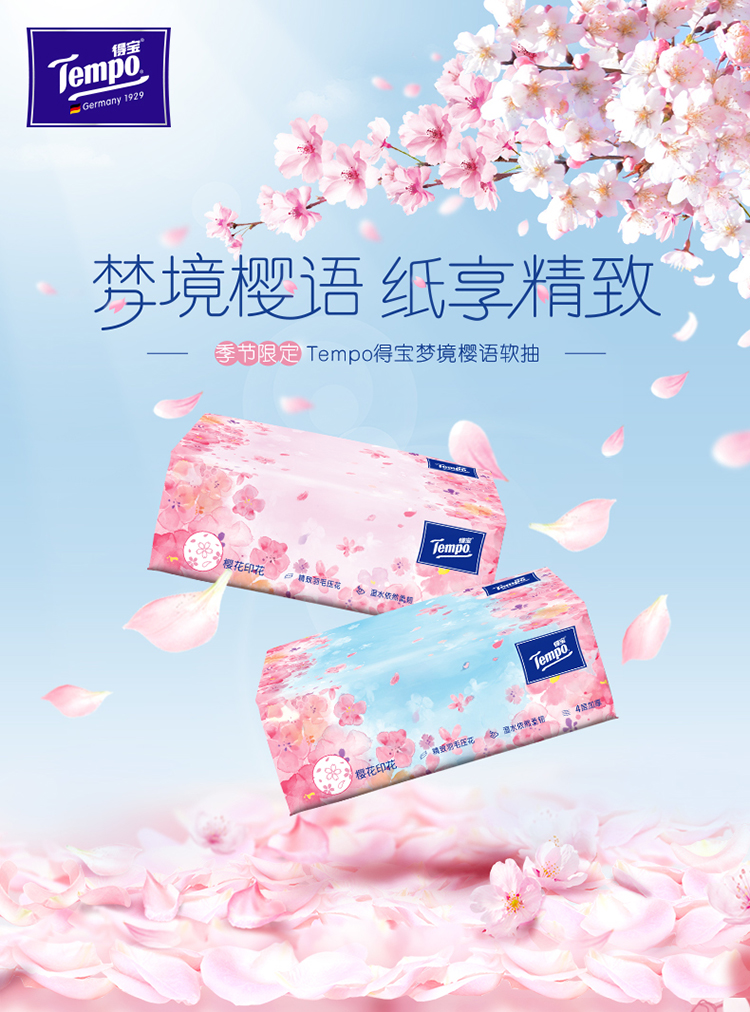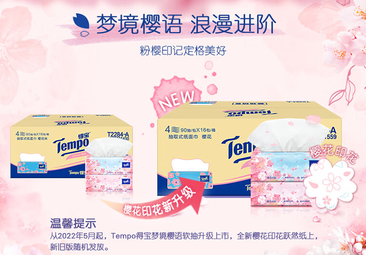 德国 T2284-A 得宝90抽四层(樱花味)抽纸(1×16)装/整箱