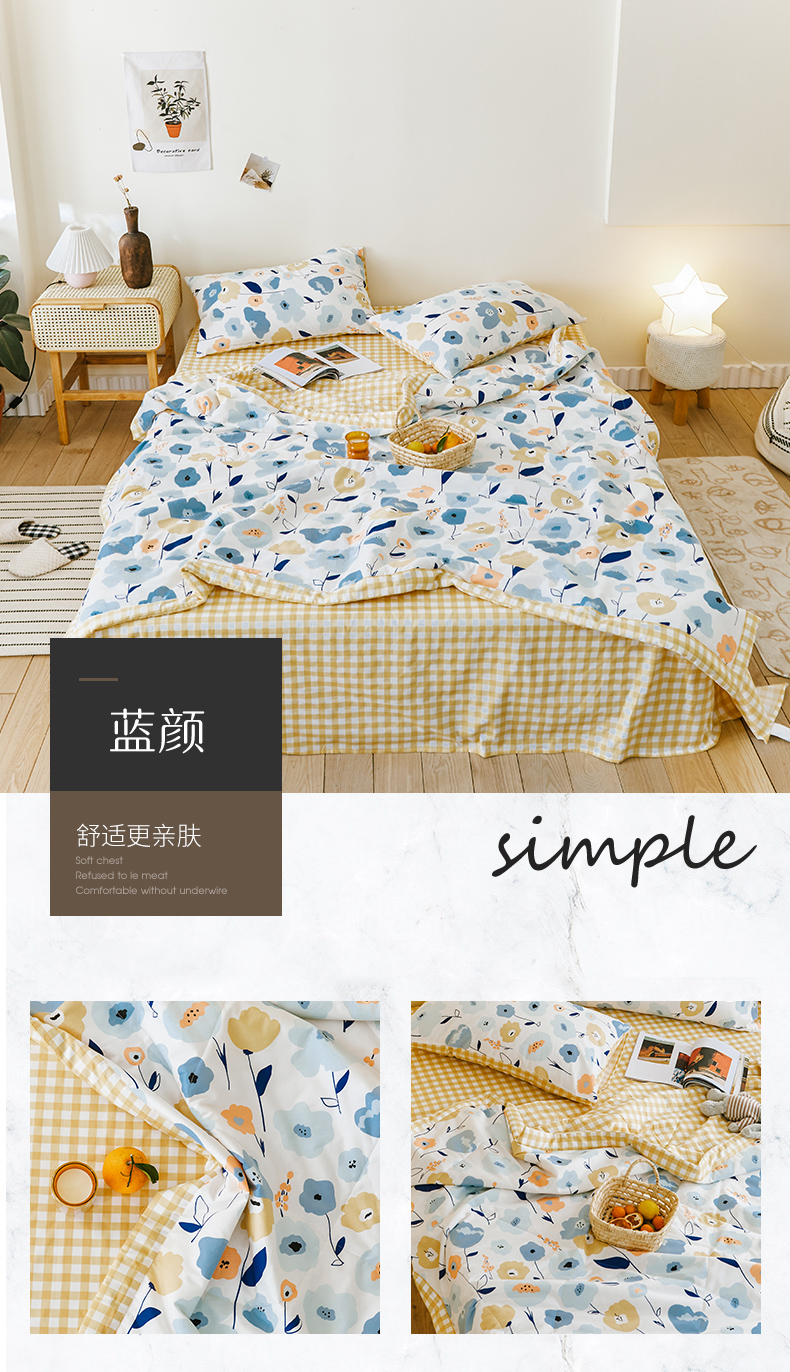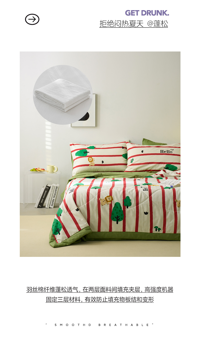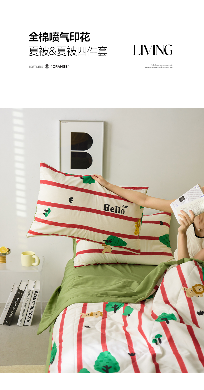 自然醒全棉喷气印花夏被单双人空调被可水洗夏凉被学生宿舍被子LFS