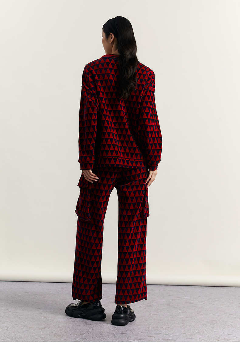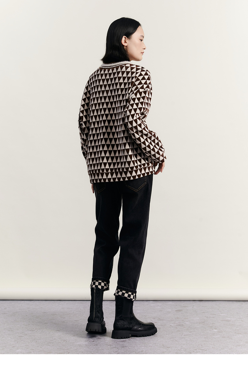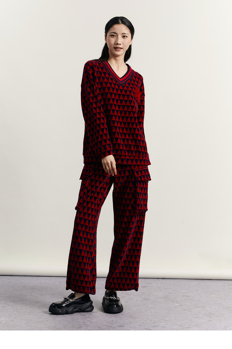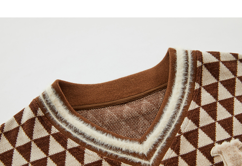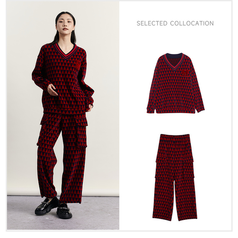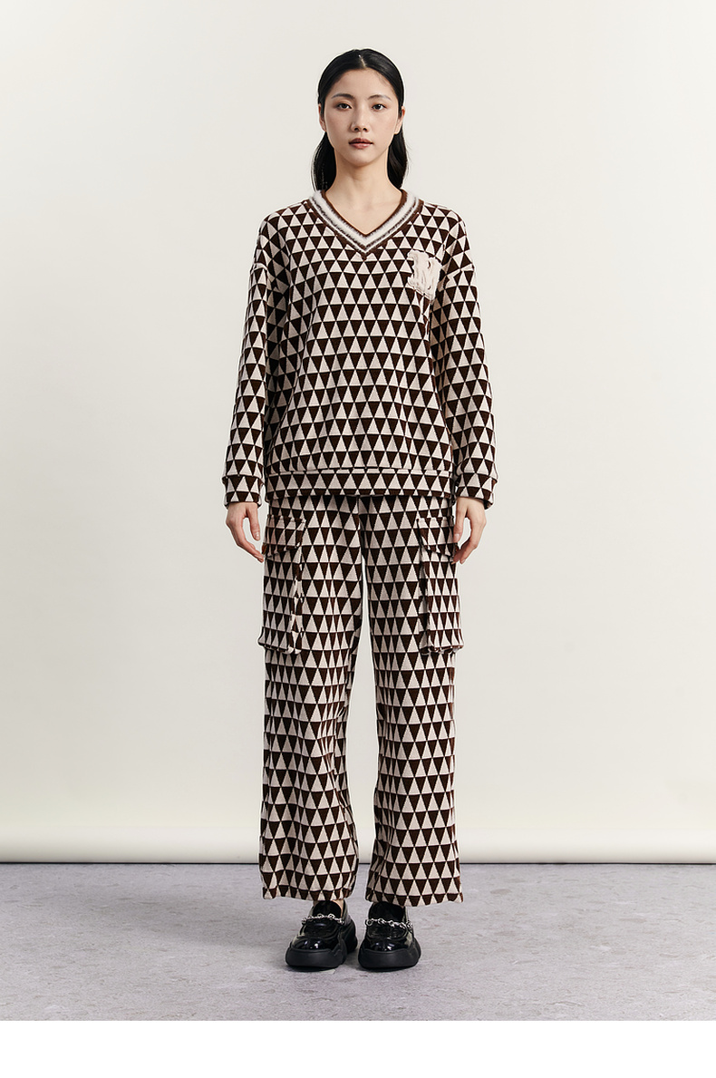 谜底V领套头卫衣女2023冬季新品复古学院风宽松绣花上衣234MV1546