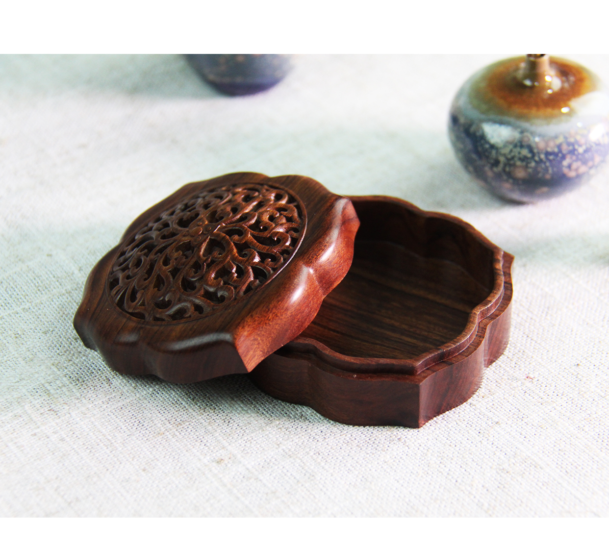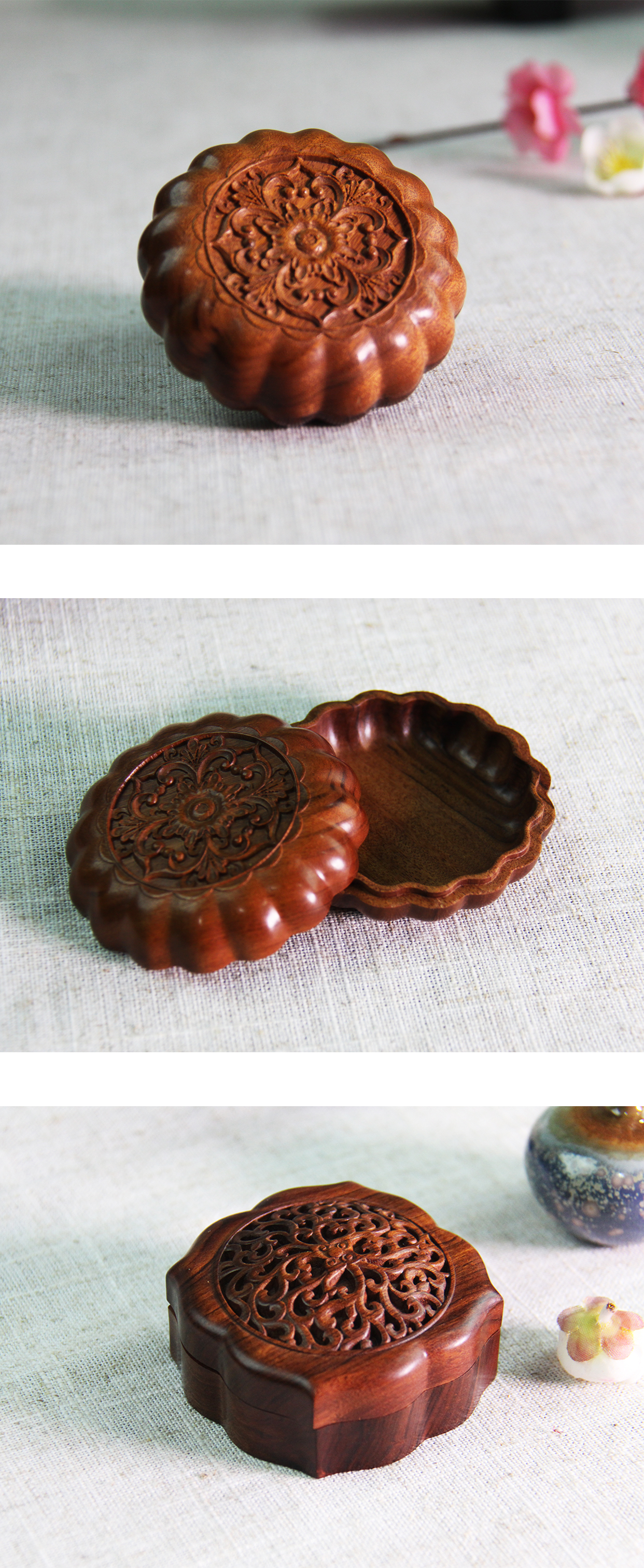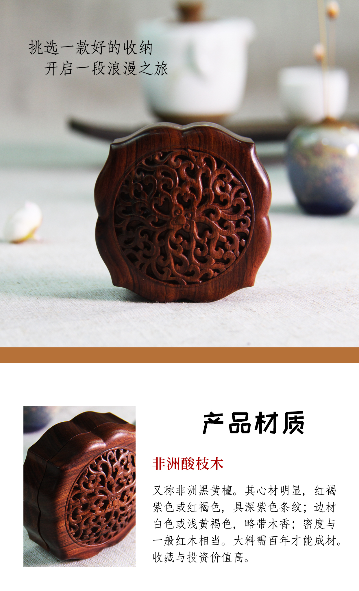 °-《勾莲纹》首饰收纳盒 酸枝 古典寓意