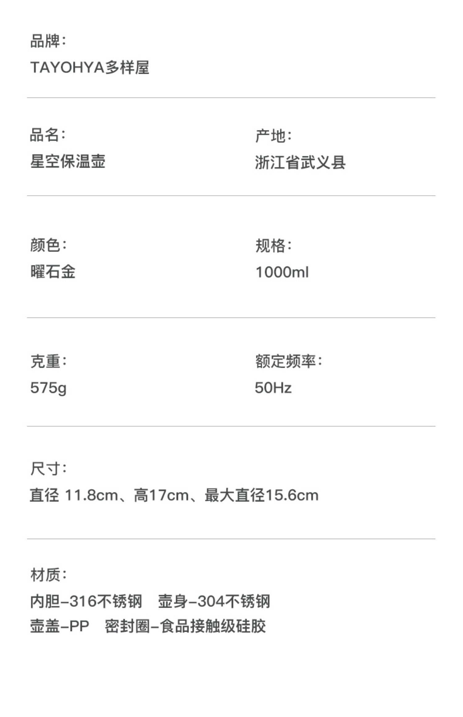 【多样屋专柜】多样屋星空保温壶家用不锈钢内胆真空大容量热水瓶水壶800ml