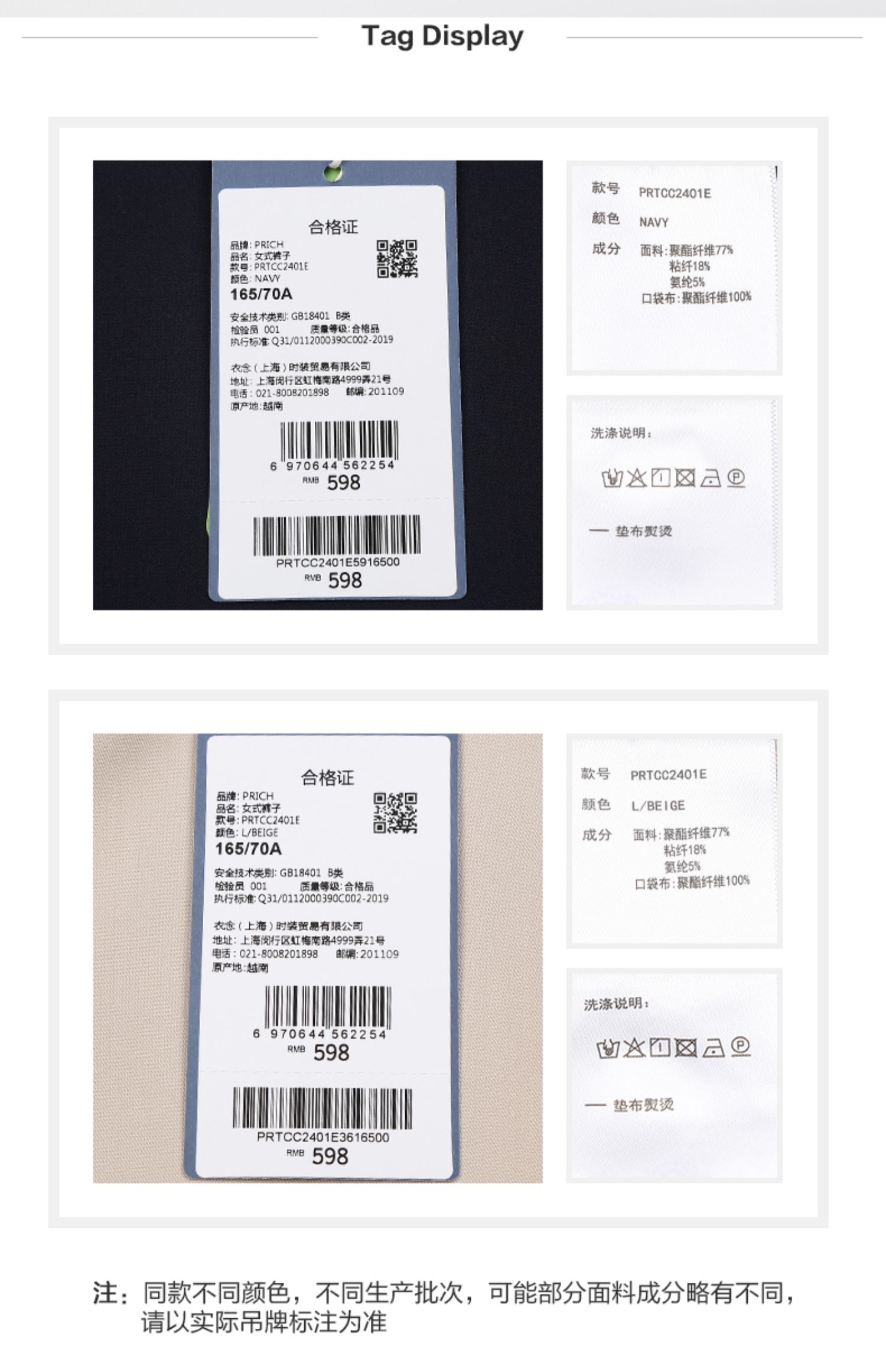 PRICH22年夏季新款气质高腰显瘦直筒休闲职场西装裤PRTCC2401E