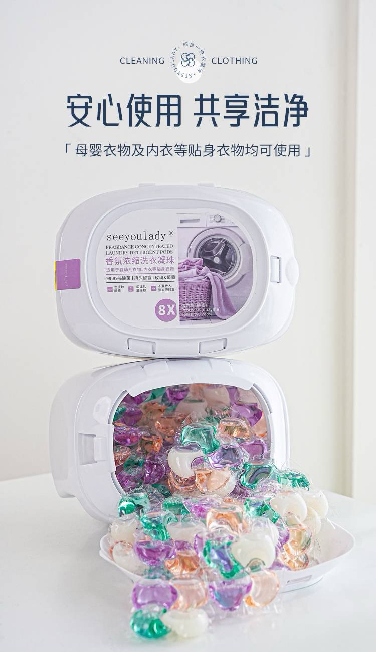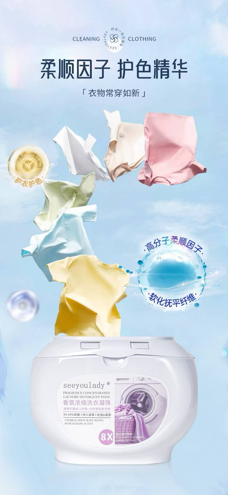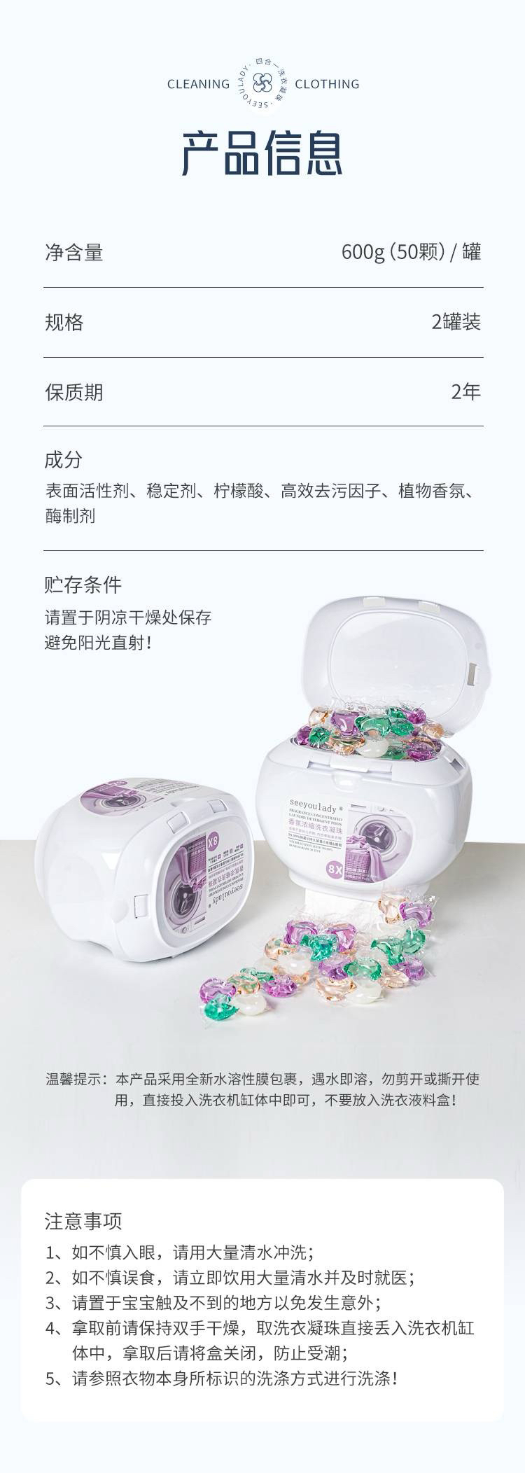 Seeyoulady深层清洁浓缩酵素四合一柔顺洗衣凝珠8X洁净除菌(2罐一组共100颗)