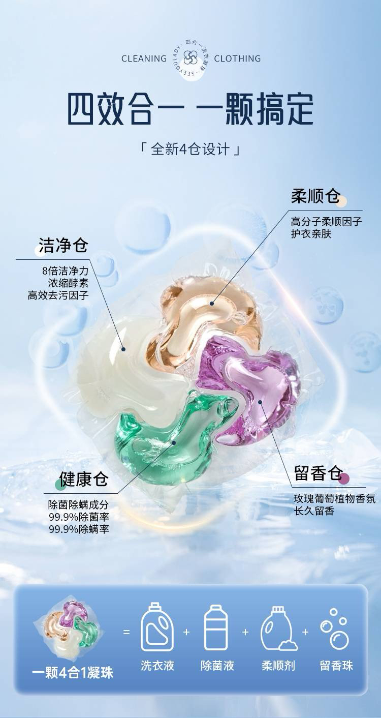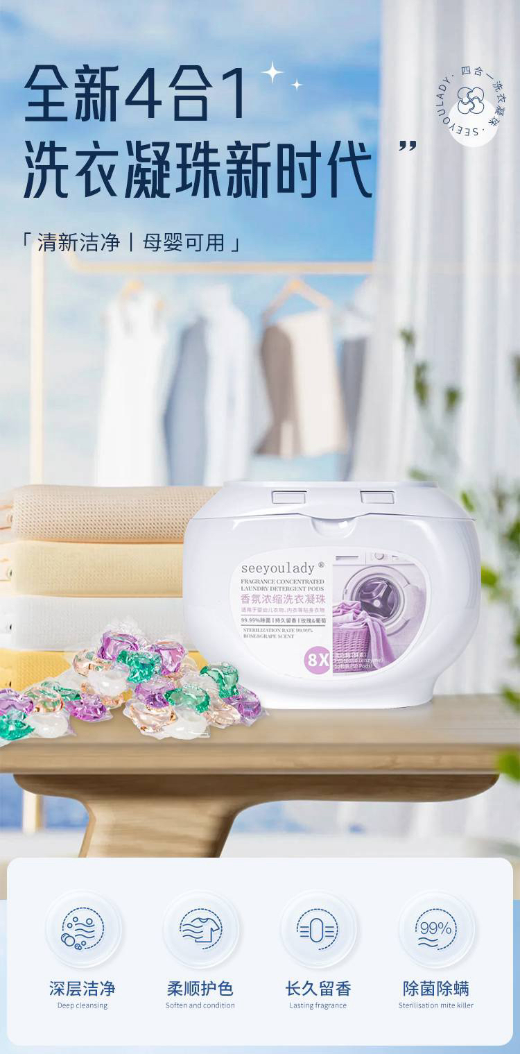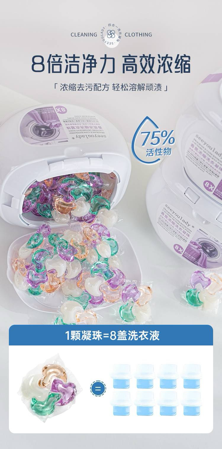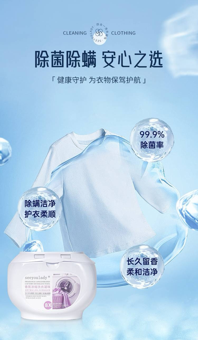 Seeyoulady深层清洁浓缩酵素四合一柔顺洗衣凝珠8X洁净除菌(2罐一组共100颗)