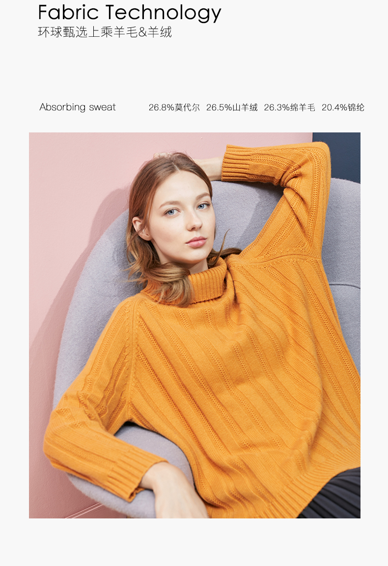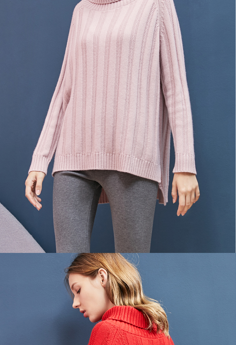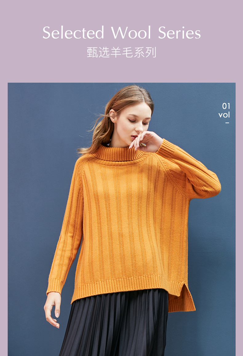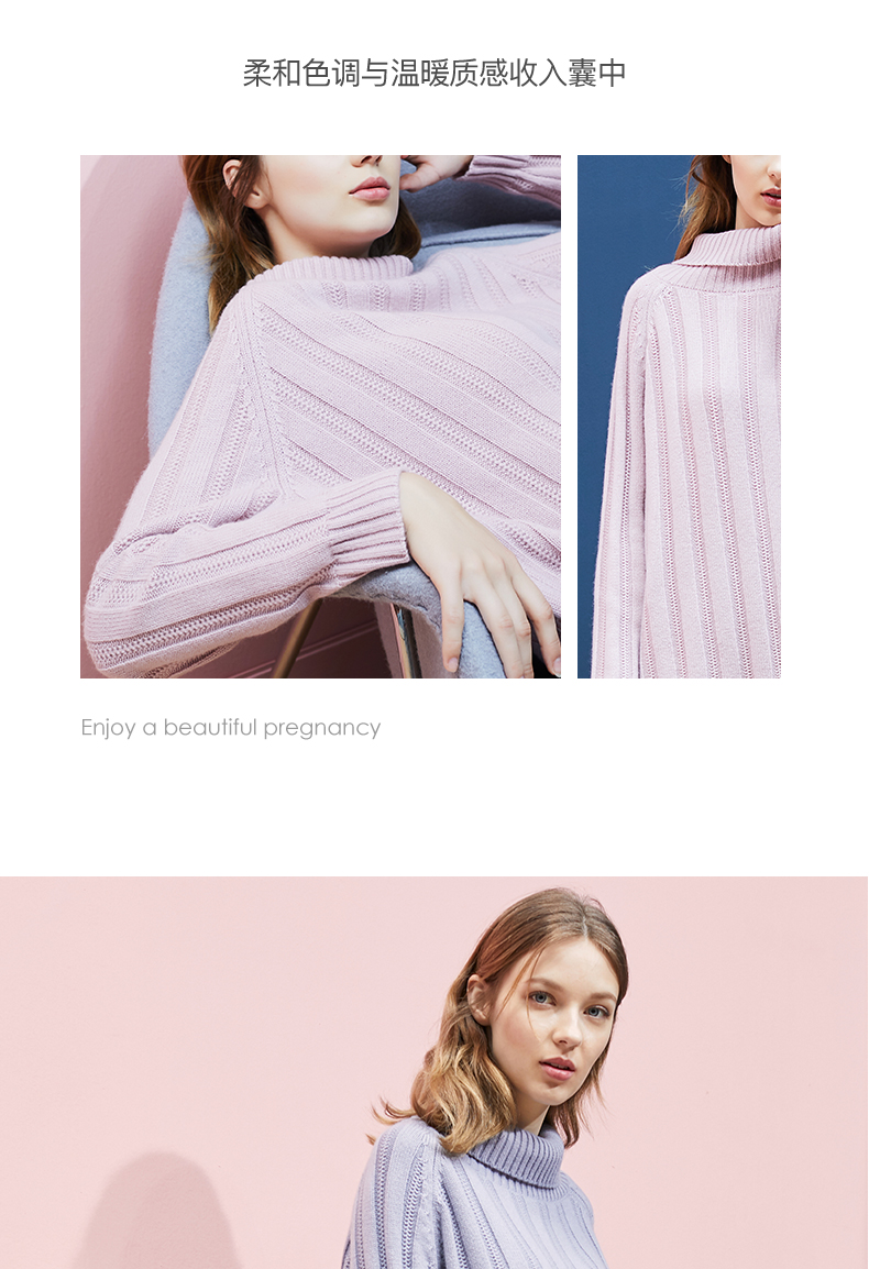 嫚熙高领宽松针织毛衣-特价商品不支持退换-a