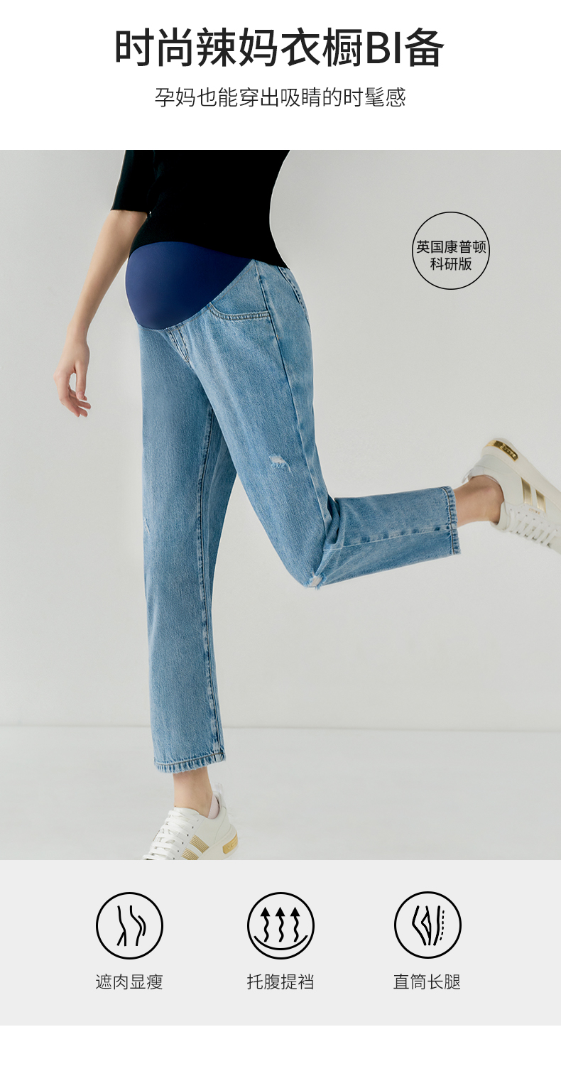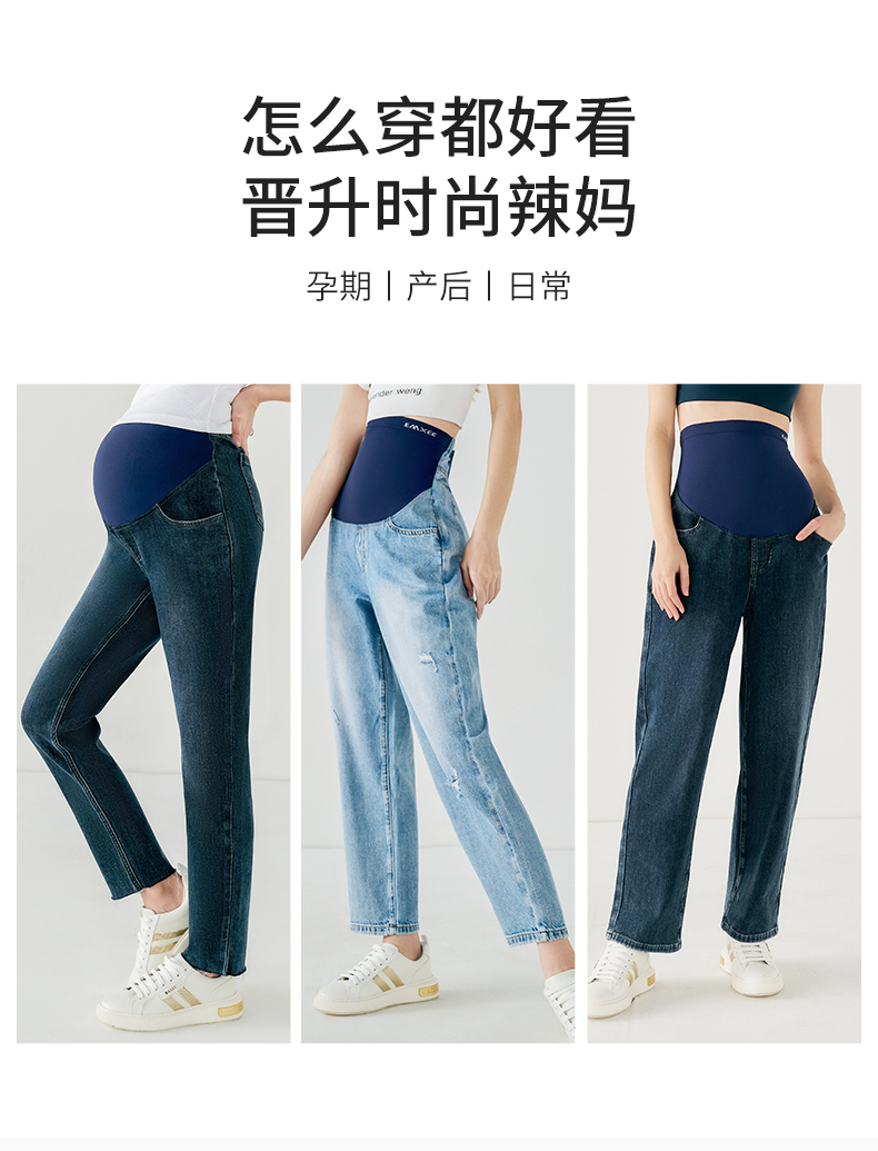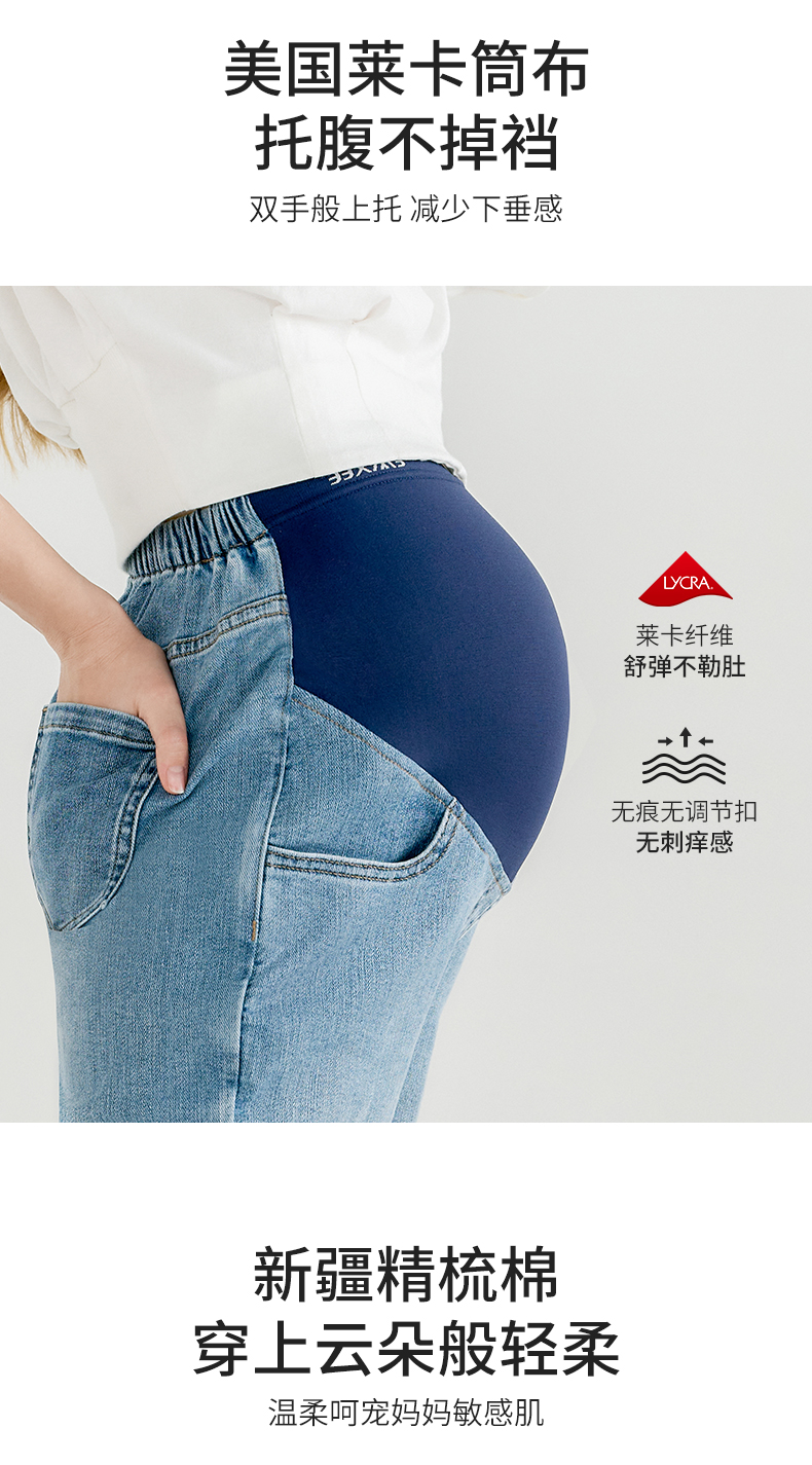 【孕妈服饰】嫚熙孕妇裤夏季薄款牛仔裤宽松休闲外穿九分托腹直筒夏装阔腿长裤