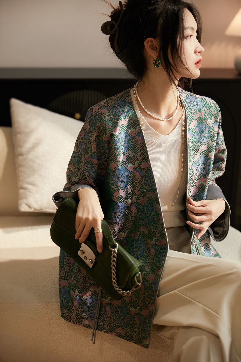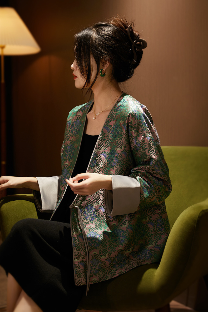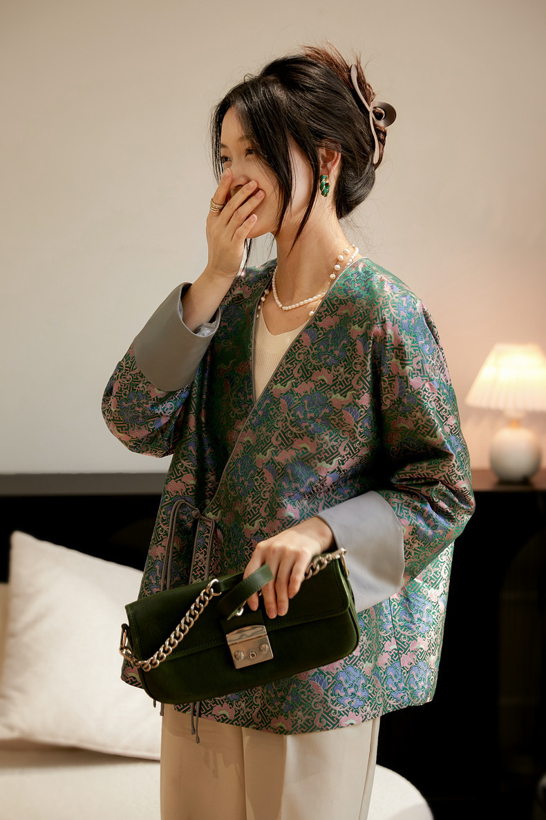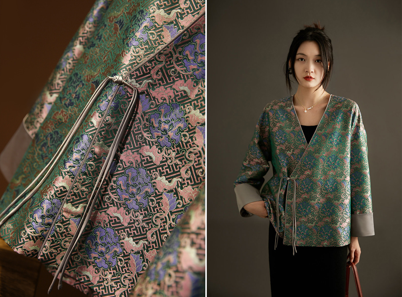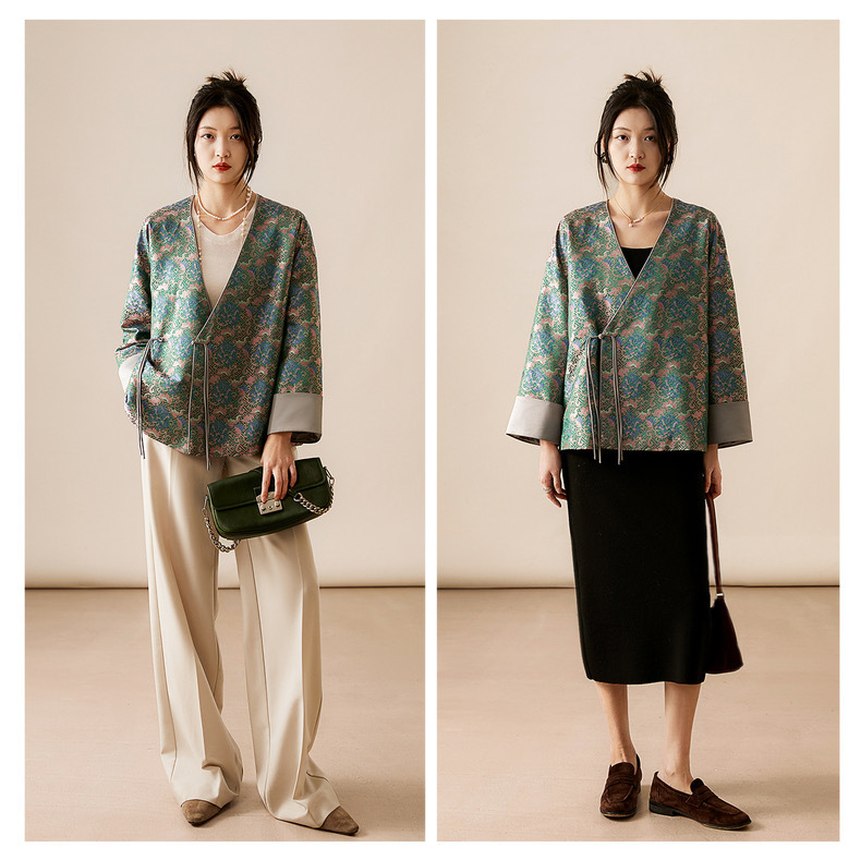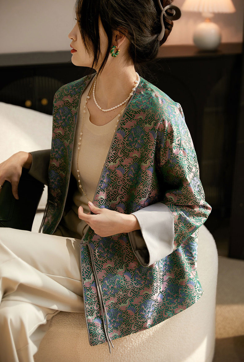这件秋季款宋锦新中式外套,不仅让你在初秋穿出春光明媚的优雅感,还将传统一身吉祥如意之气穿上身。