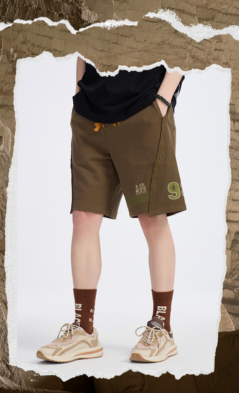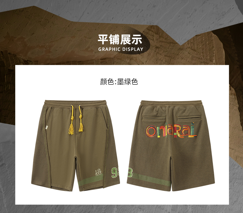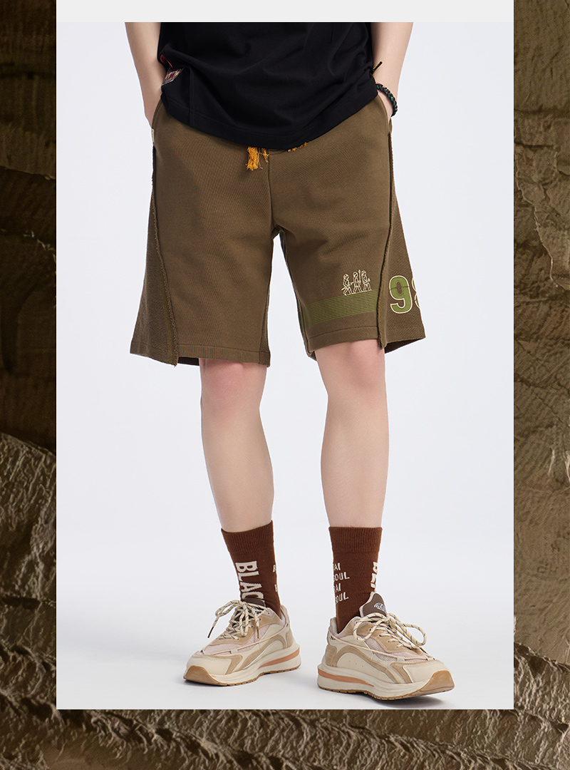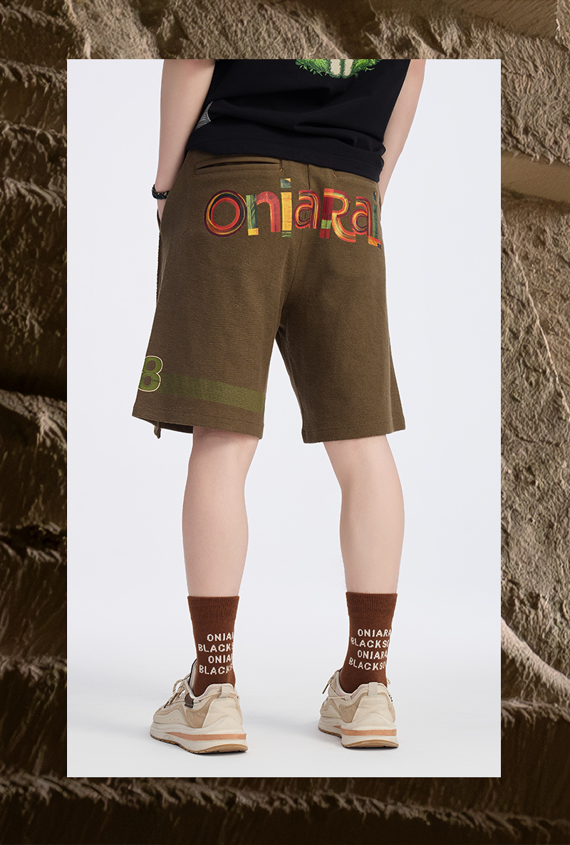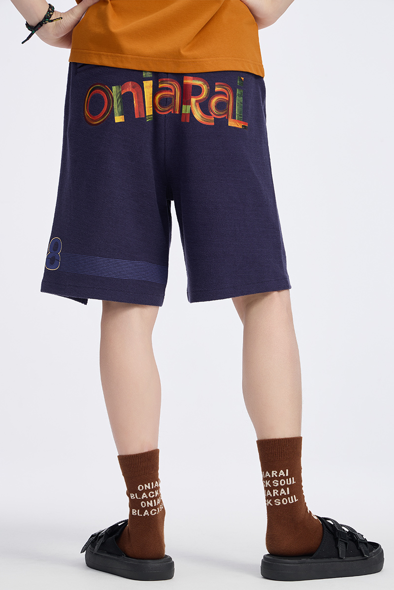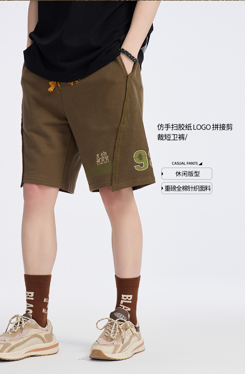 ONIARAI/鬼洗 仿手扫胶纸 logo 拼接剪裁短卫裤 A540004